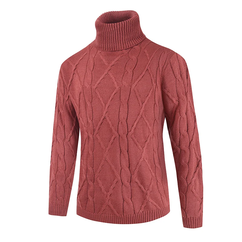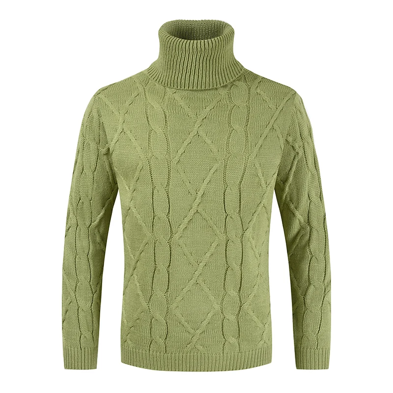 Autumn Winter Fashion Men Turtleneck Knitted Sweaters Mens Casual Solid Plaid Jumper Male Streetwear Warm Sweater