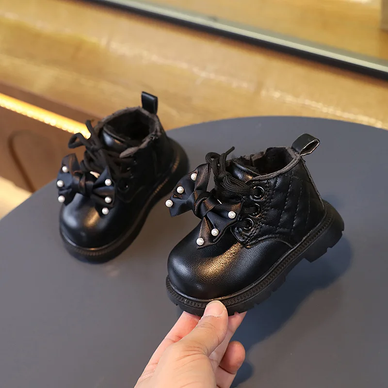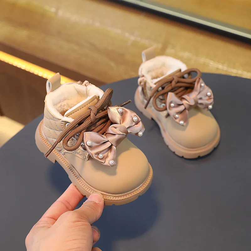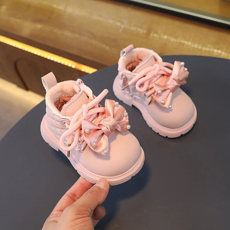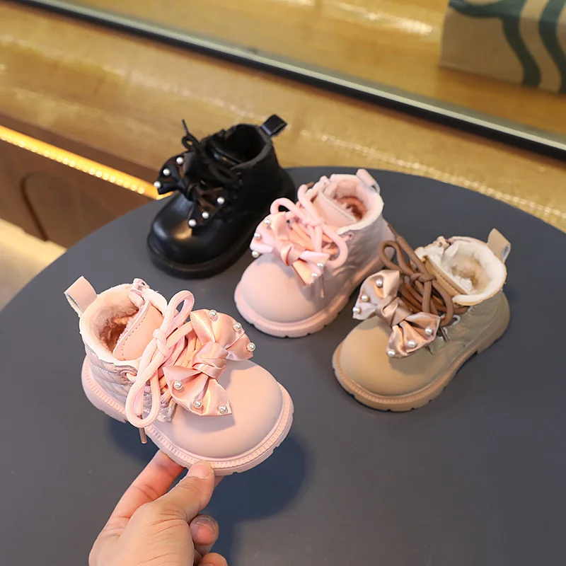 Autumn Winter Kids Boots Warm Plush bowknot Toddler Girls Boots Fashion Clith Children Casual Shoes Baby Girls Boots for Kids