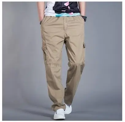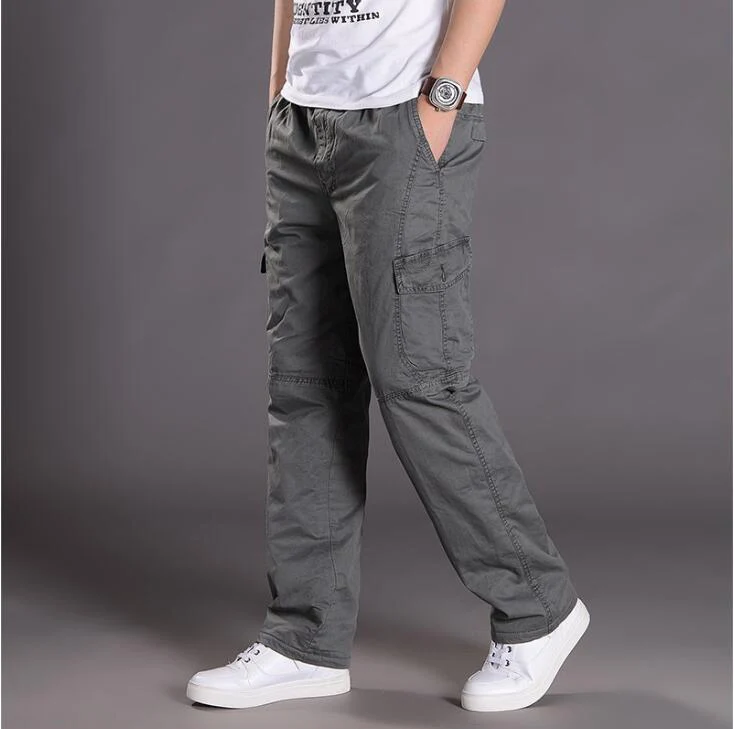 Autumn Winter Men cargo pants zipper pockets cotton large size 6XL 7XL 8XL khaki army green black gray pants cool 54 56 48 50 46