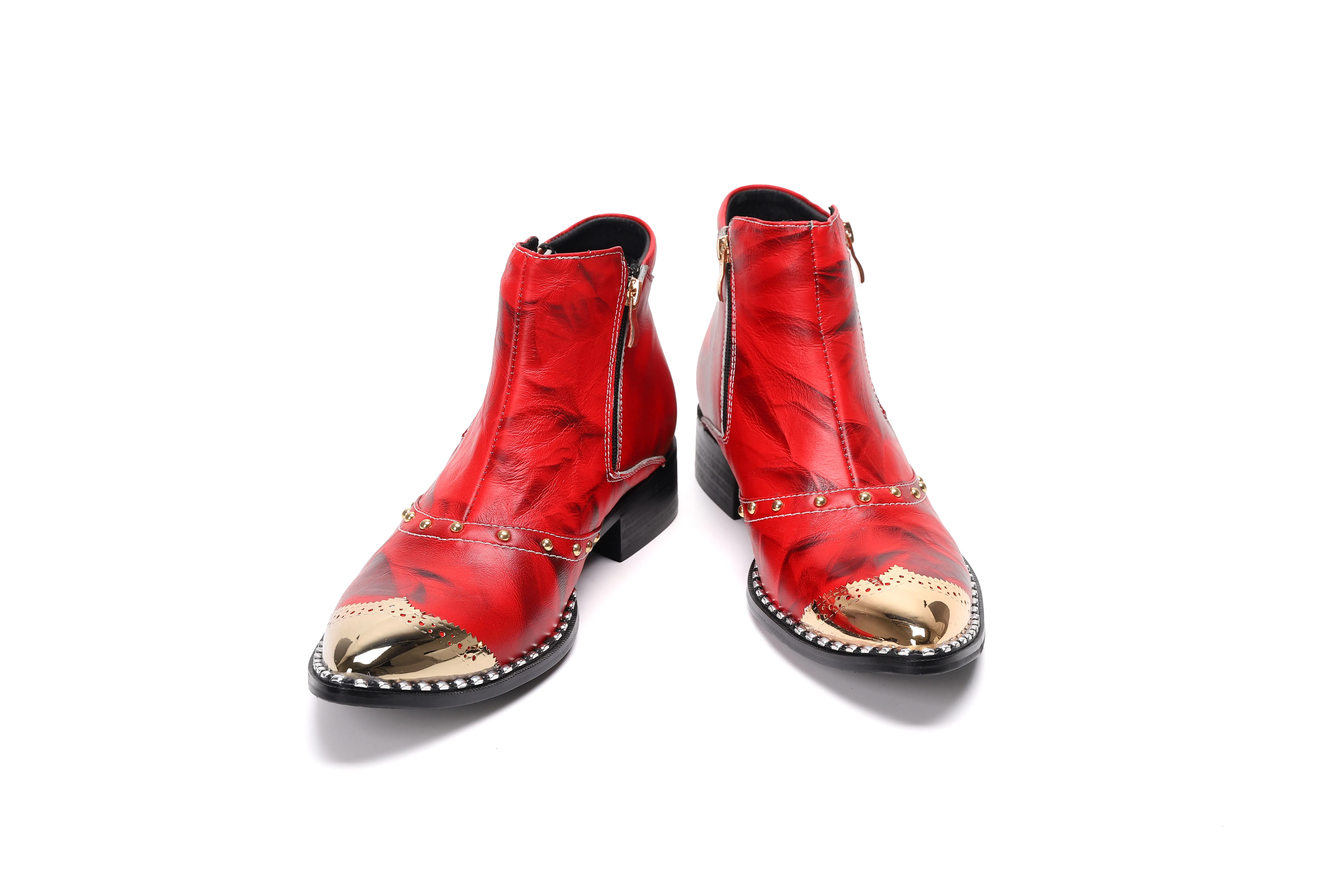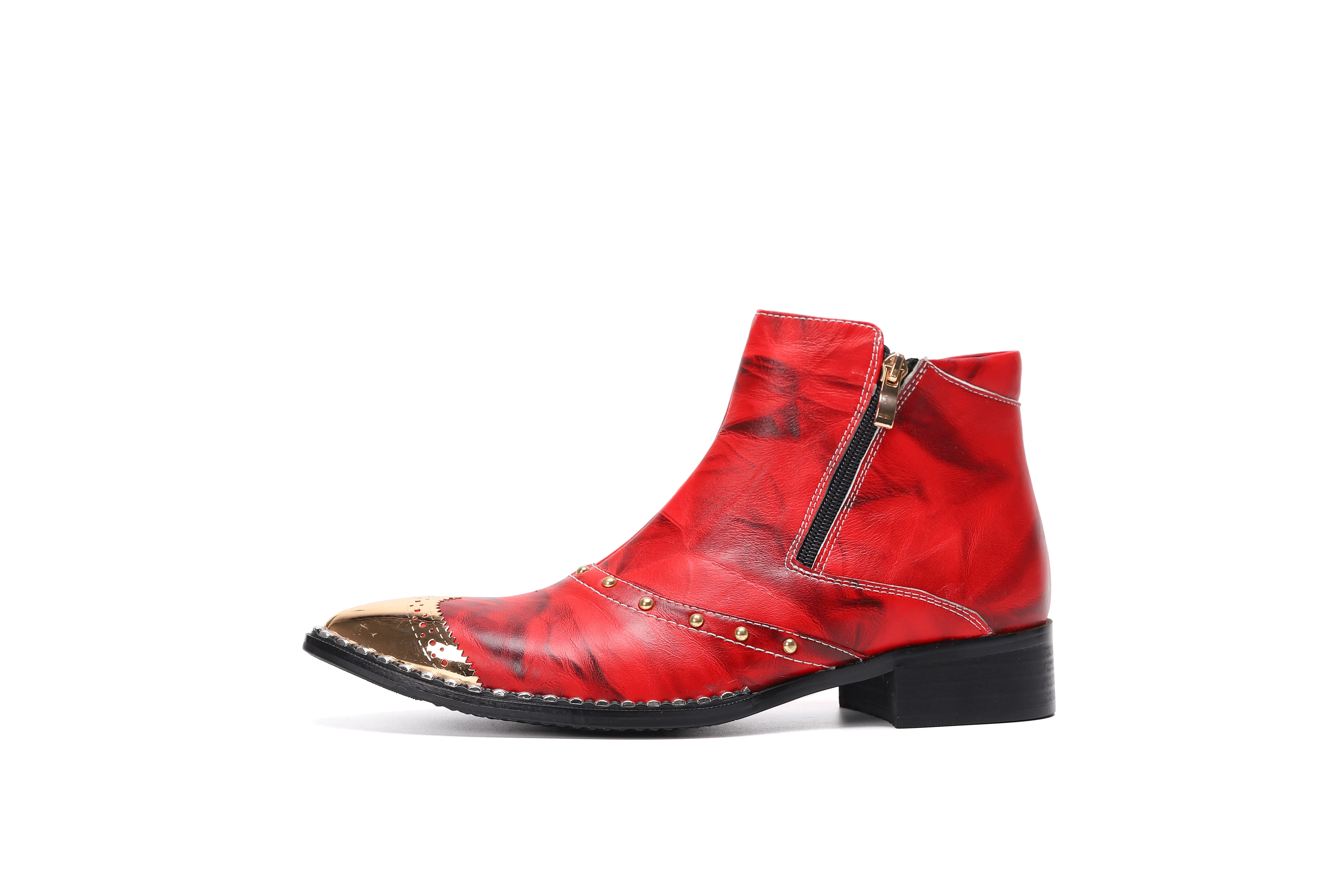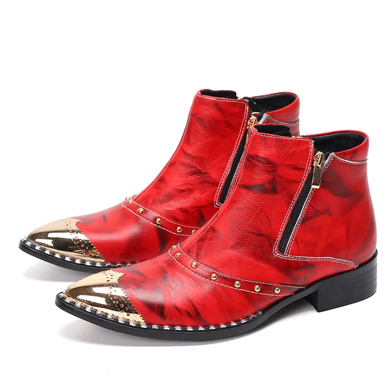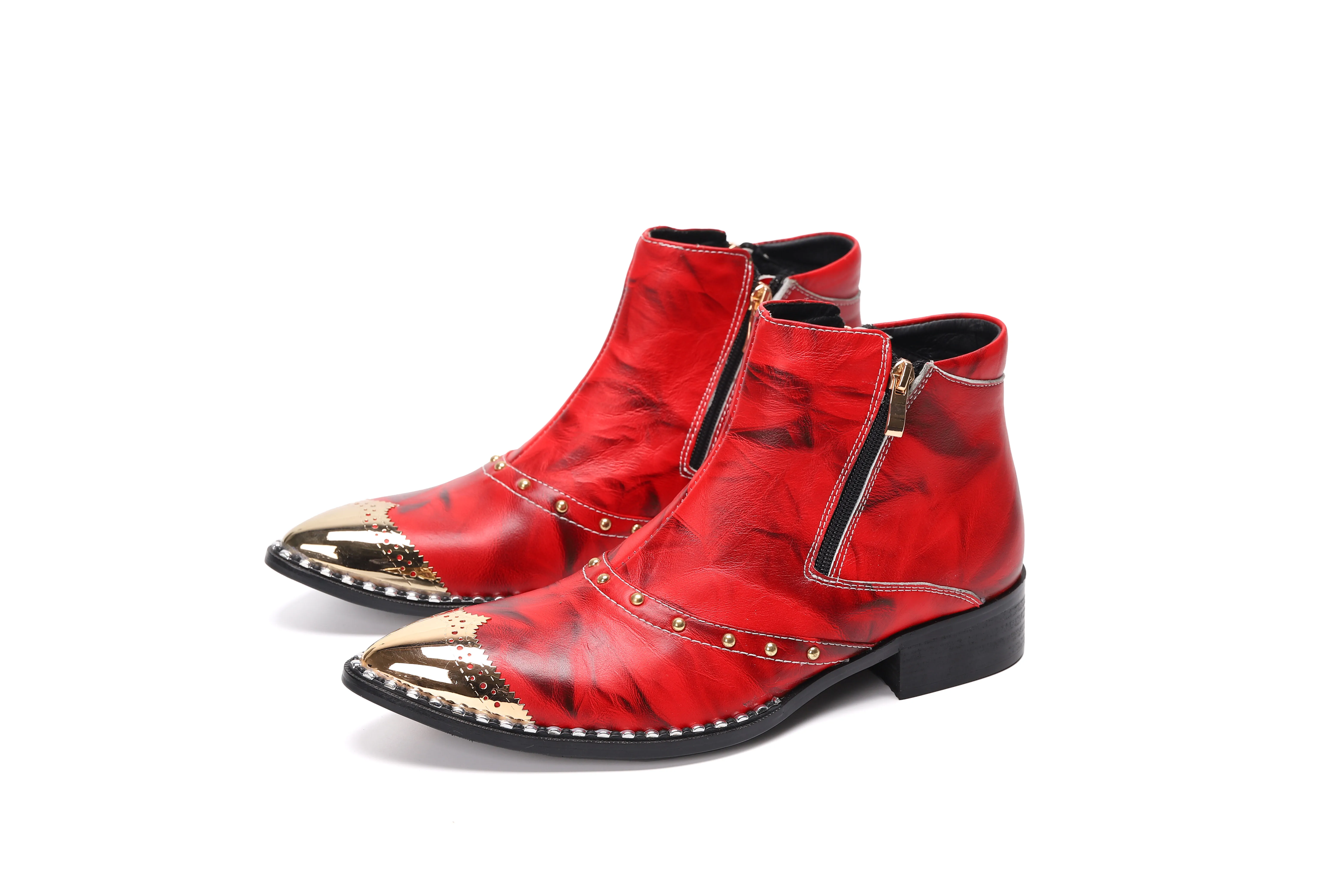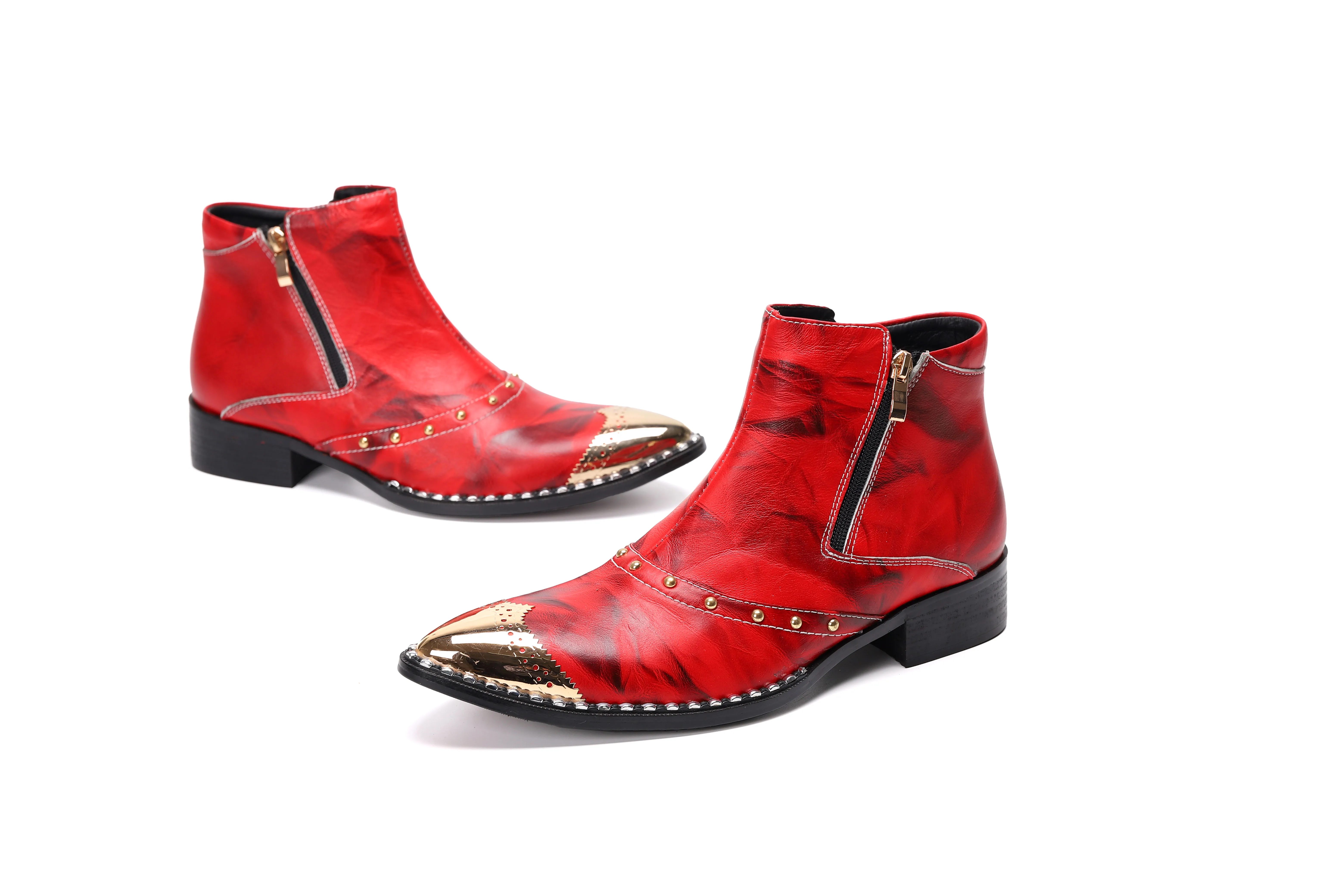 Autumn Winter Mens Ankle Military Boots Red Studded Genuine Leather Dress Party Formal Shoes Men Motorcycle Zapatos