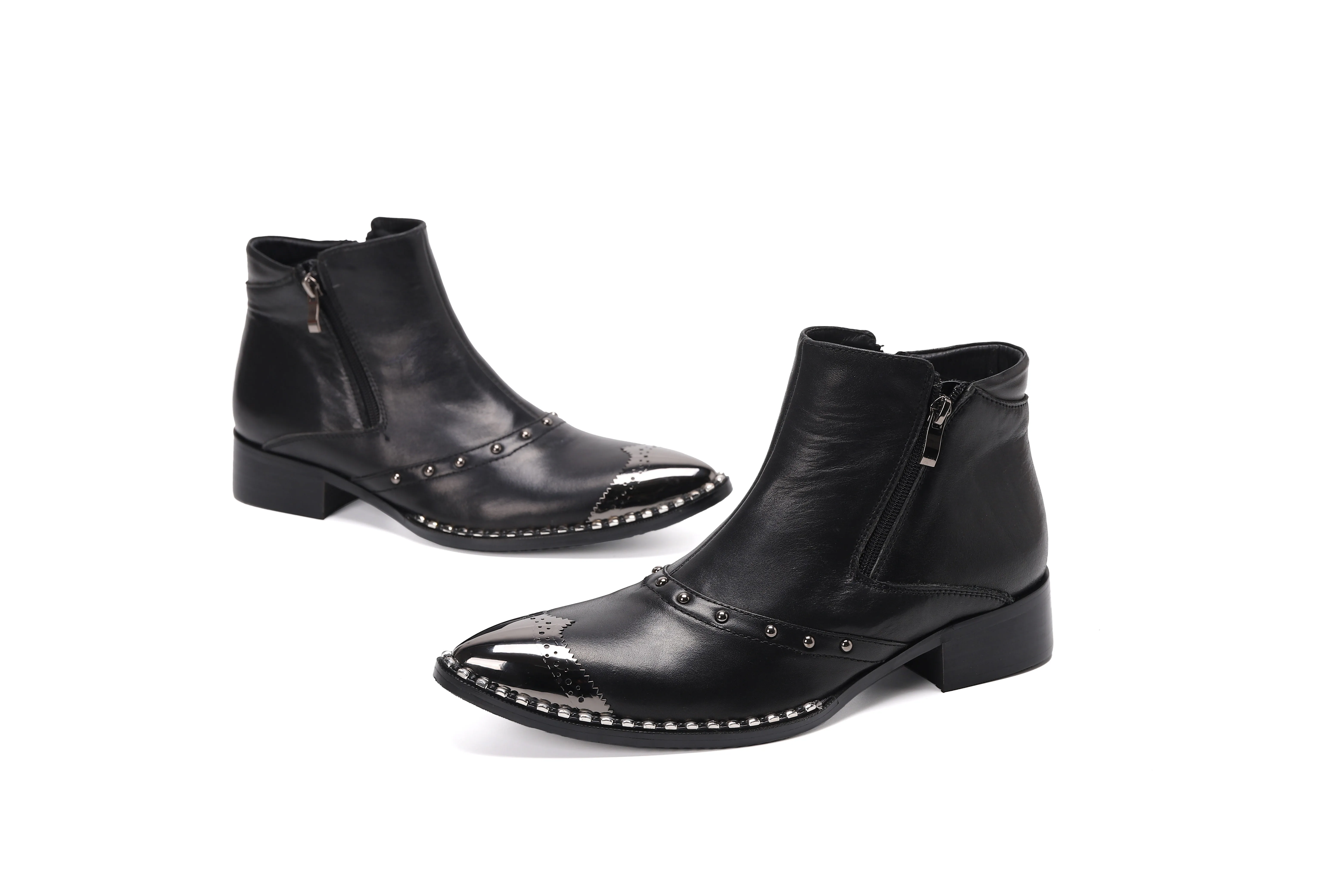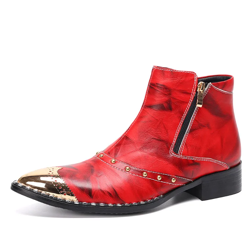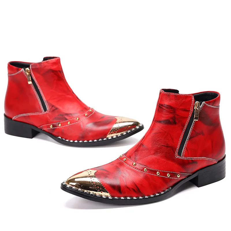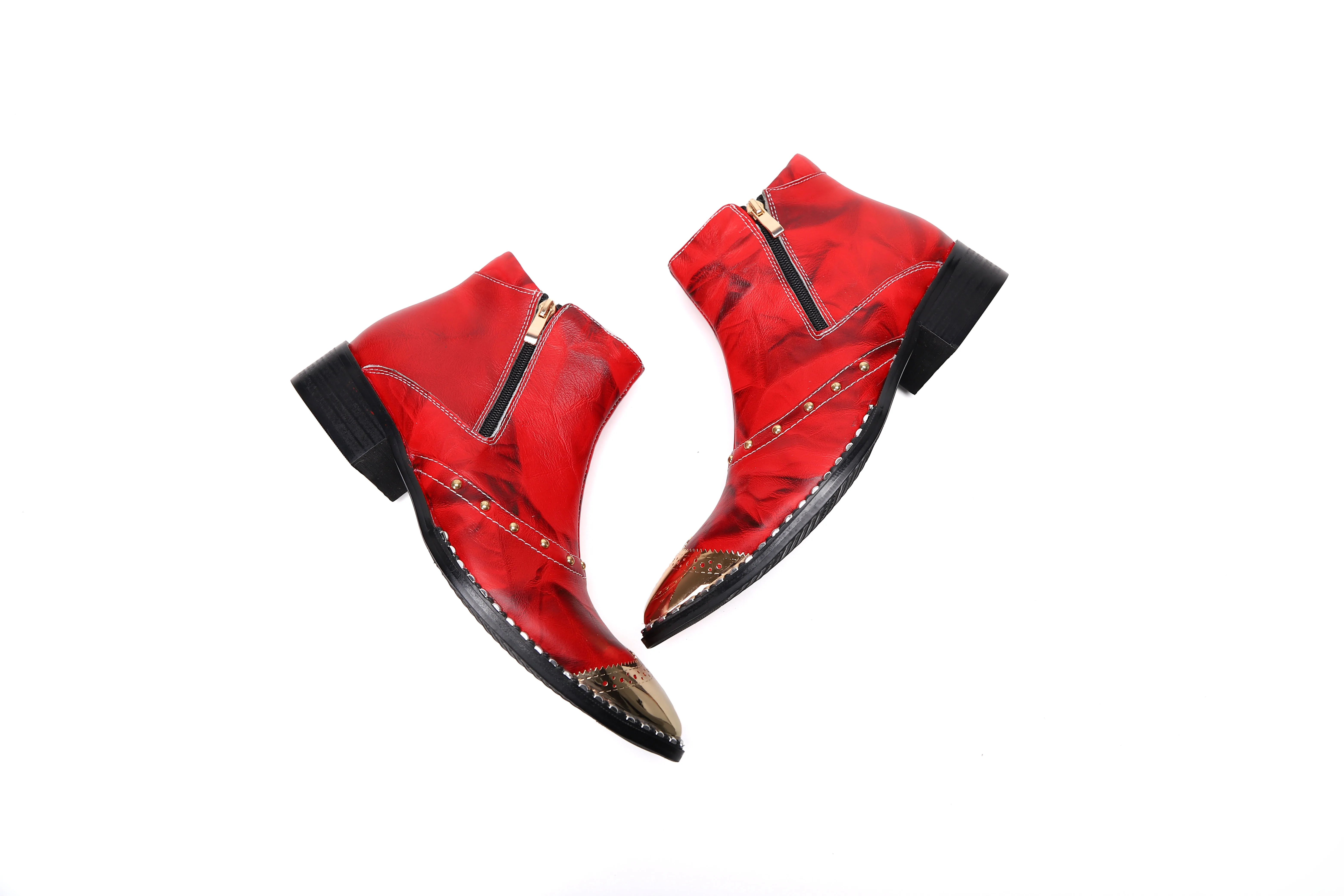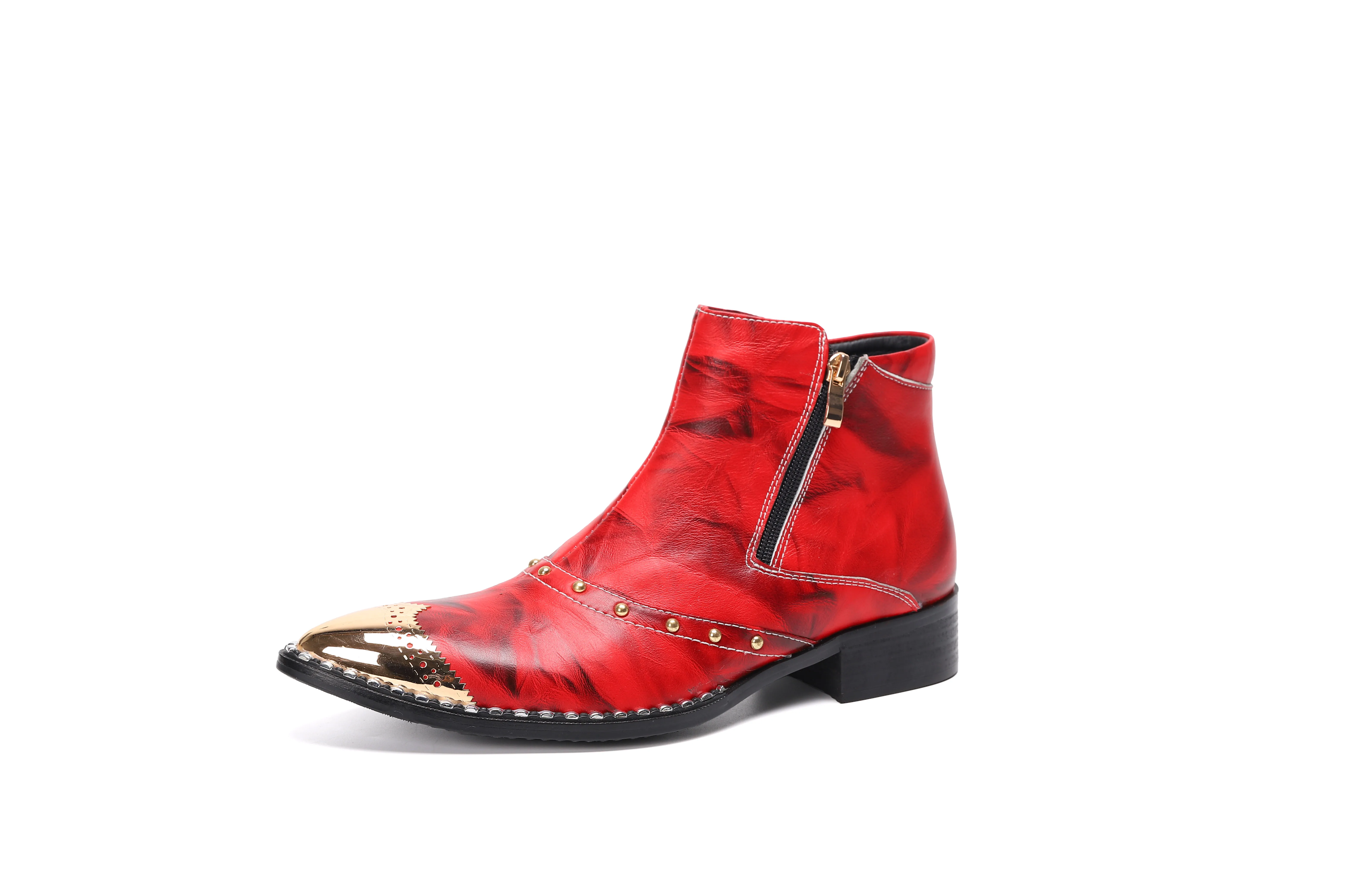 Autumn Winter Mens Ankle Military Boots Red Studded Genuine Leather Dress Party Formal Shoes Men Motorcycle Zapatos