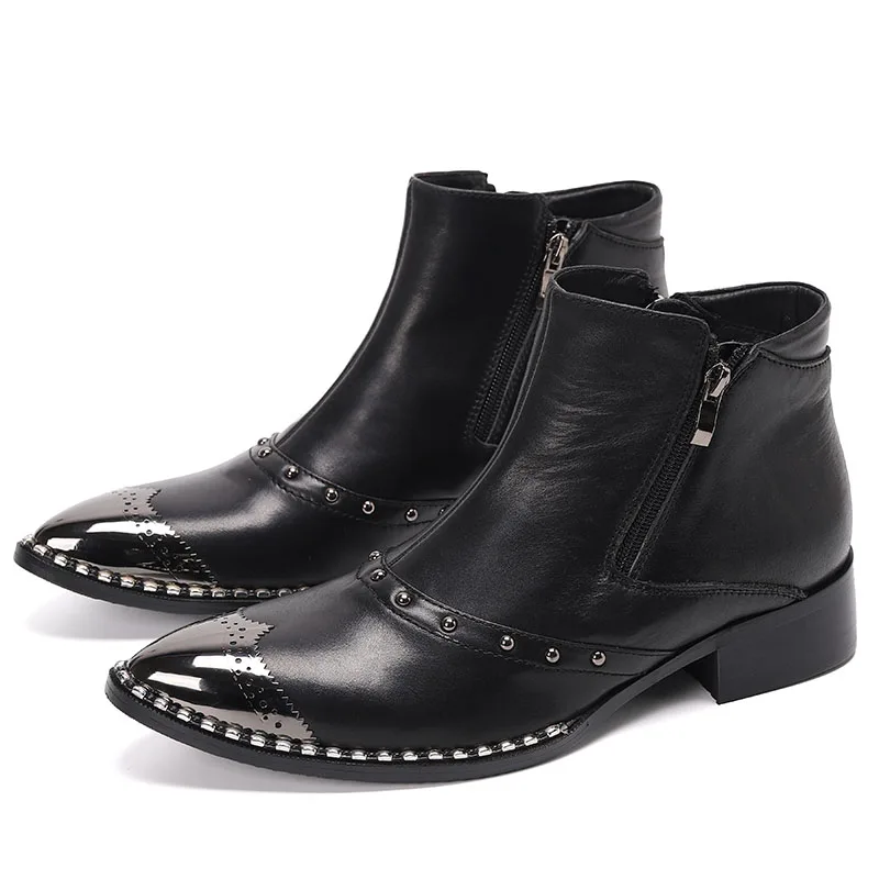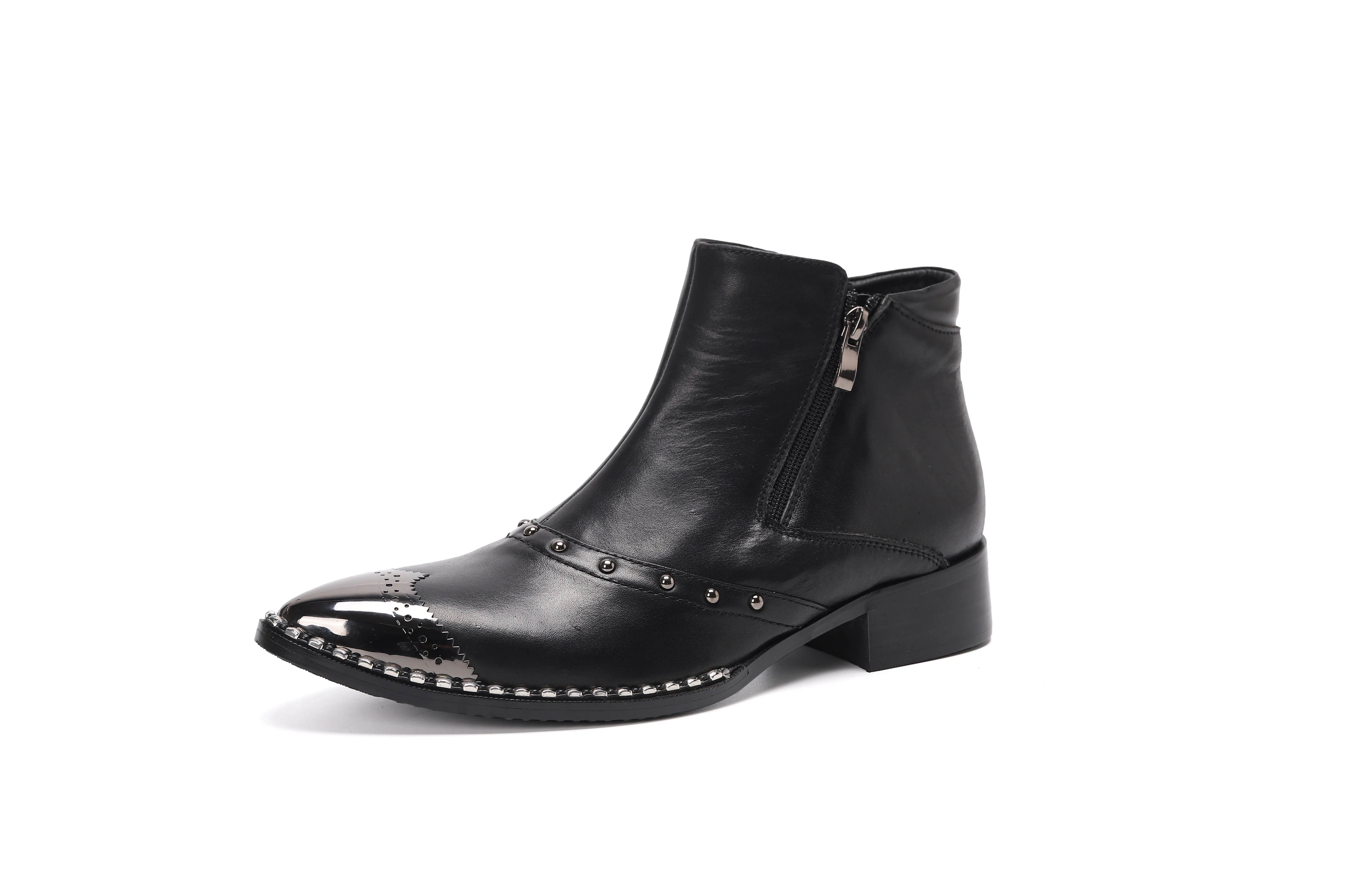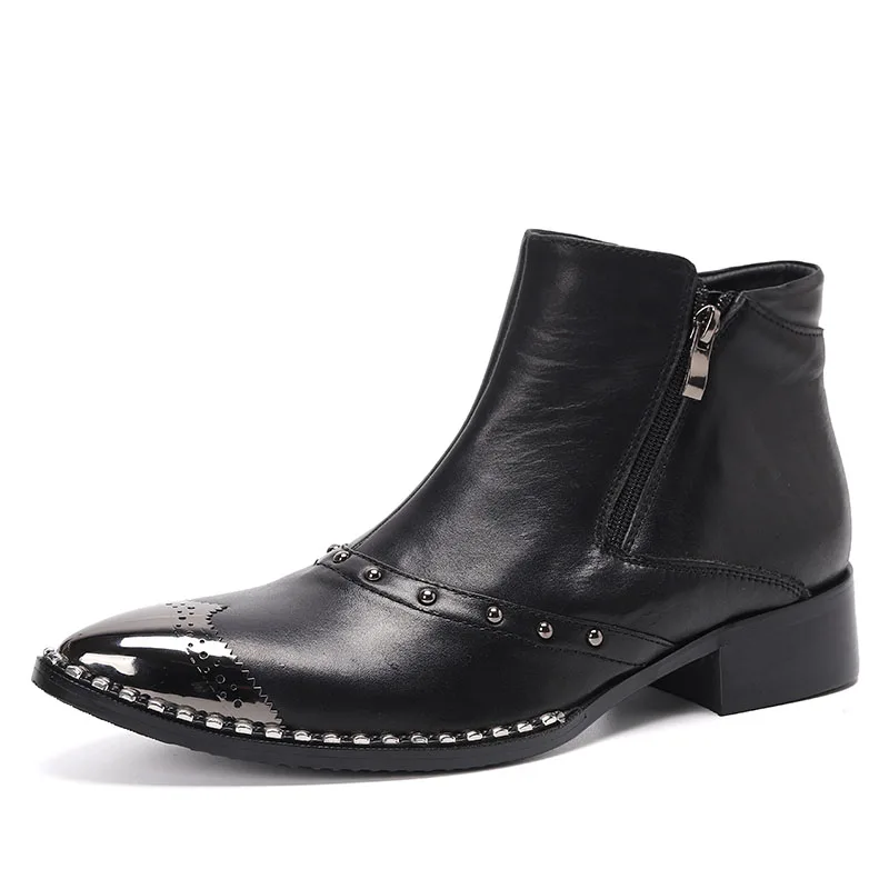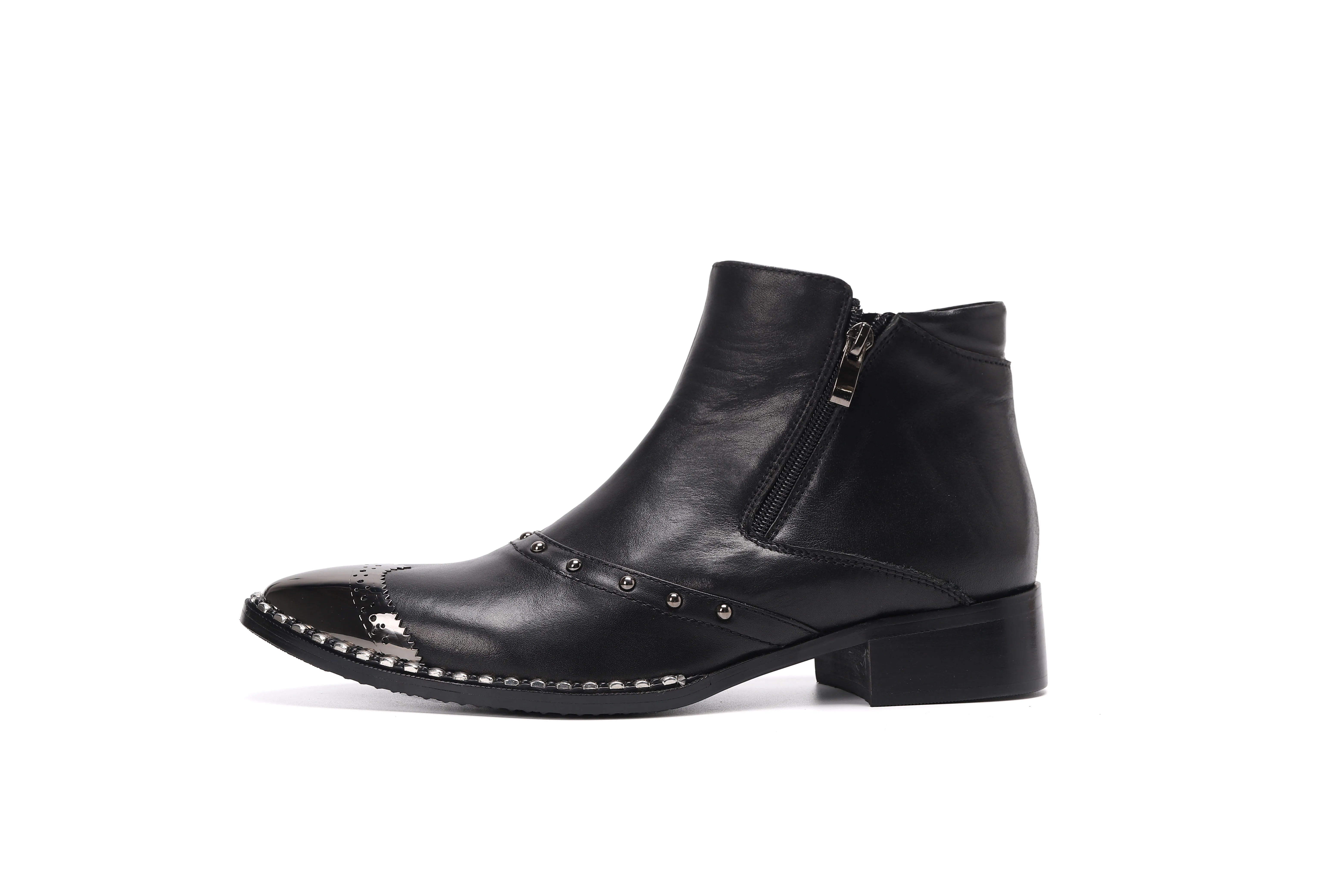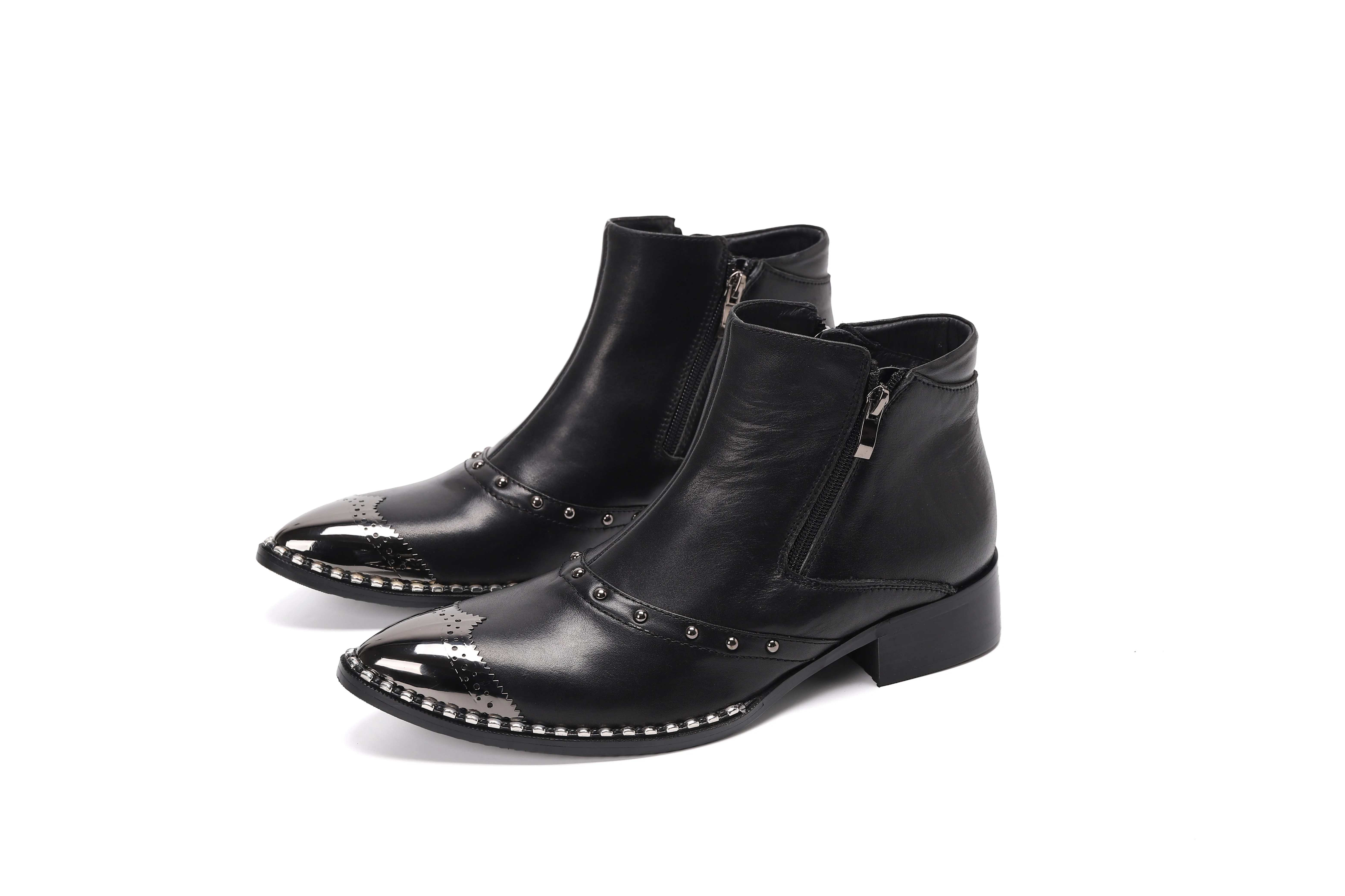 Autumn Winter Mens Ankle Military Boots Red Studded Genuine Leather Dress Party Formal Shoes Men Motorcycle Zapatos