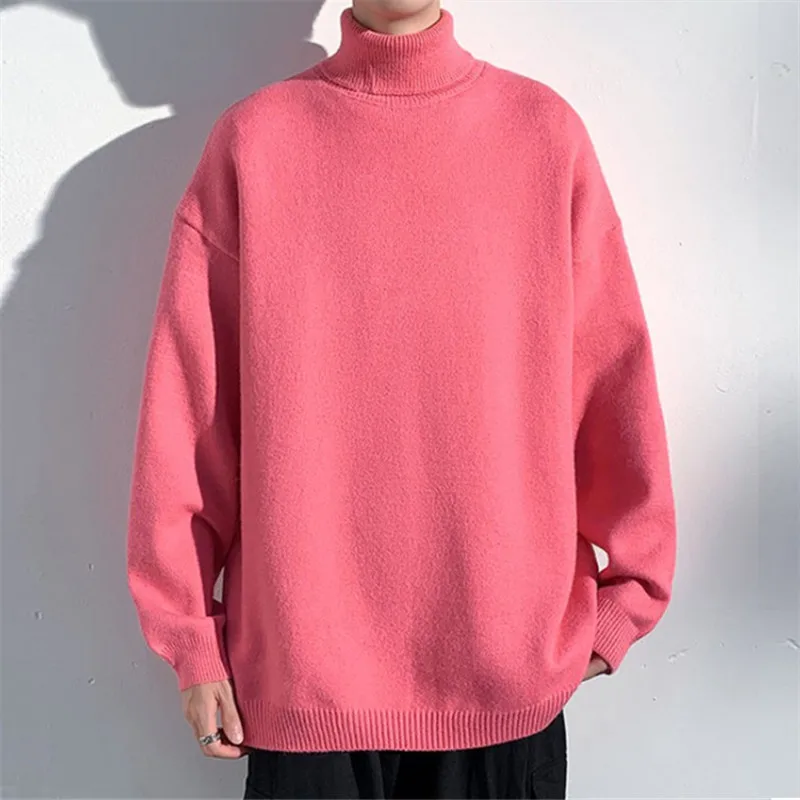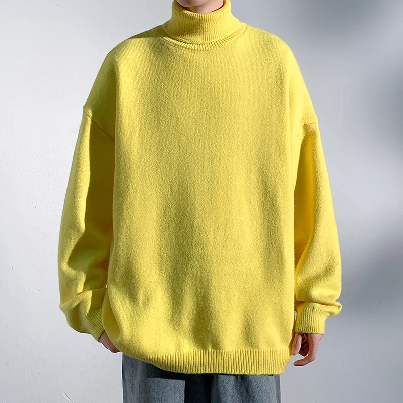 Autumn Winter Youthful Vitality Pullovers Men Knitted Turtleneck Sweater Solid Color Loose Casual Mens Turtleneck Pullover 5XL