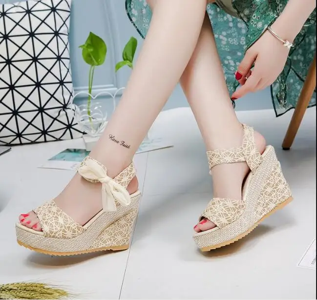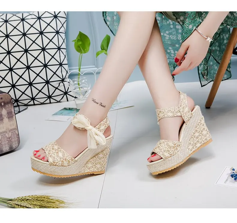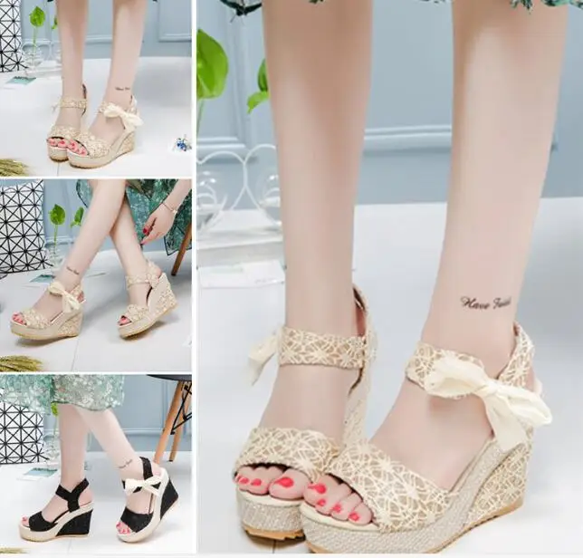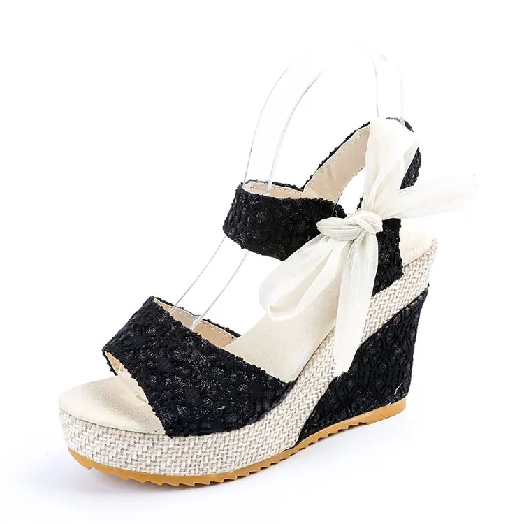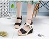 Autumn Women High Heels Wedges Platform shorha Sandals classic black Silver Pu Female Satin Bohemian fashion Heels Summer Shoes