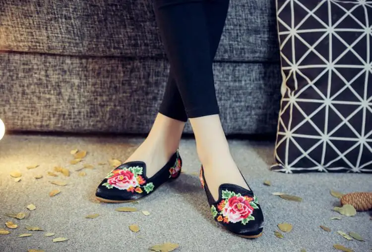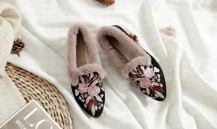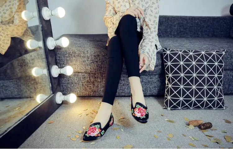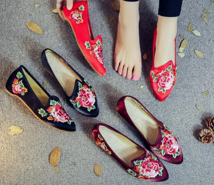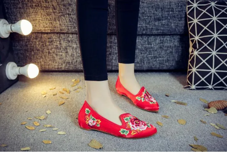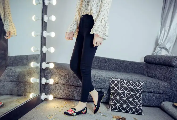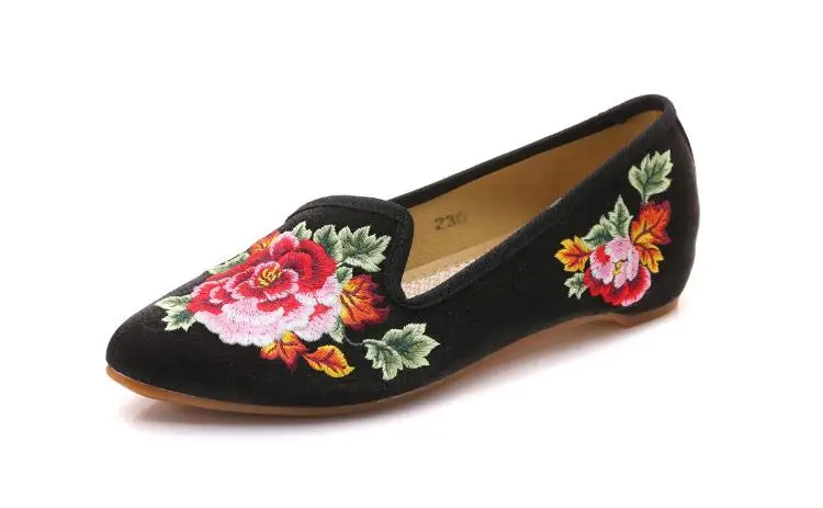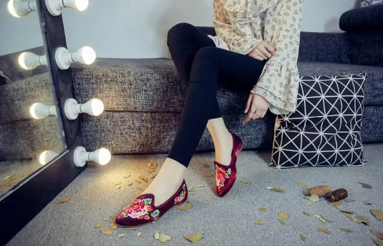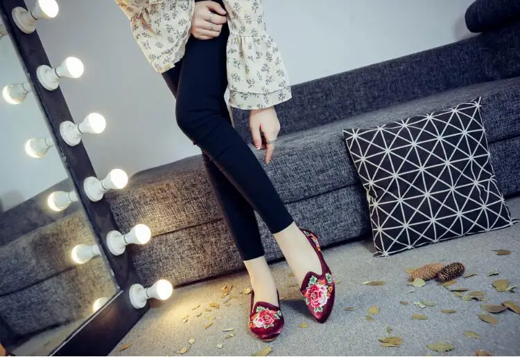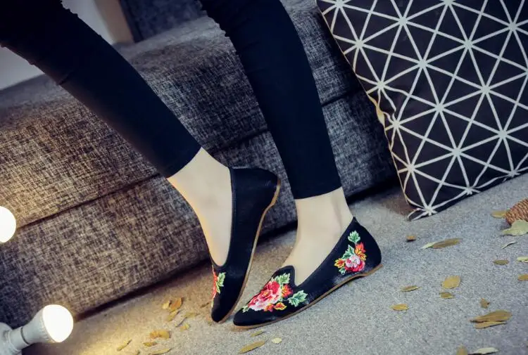 Autumn Women Pointed Toe Loafers Floral Embroider Ladies Flats Slip-On Ethnic Walking Shoes Canvas Woman Moccasins Dress Shoe