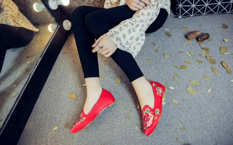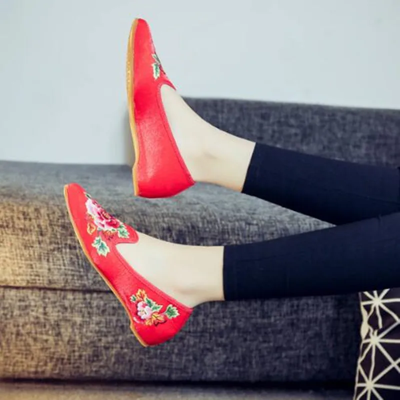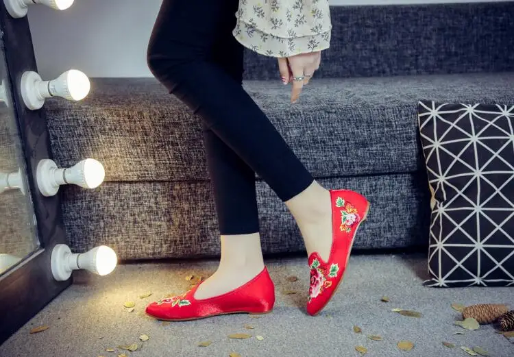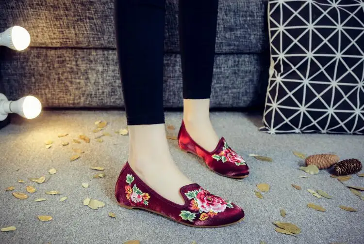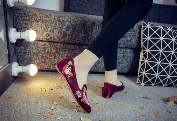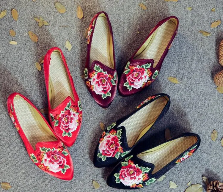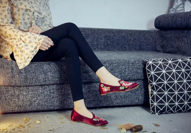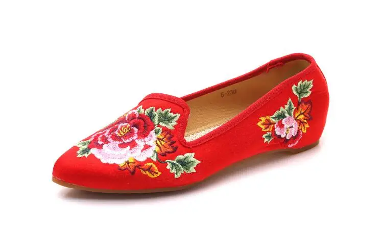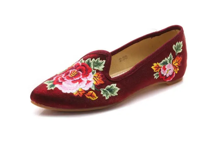 Autumn Women Pointed Toe Loafers Floral Embroider Ladies Flats Slip-On Ethnic Walking Shoes Canvas Woman Moccasins Dress Shoe