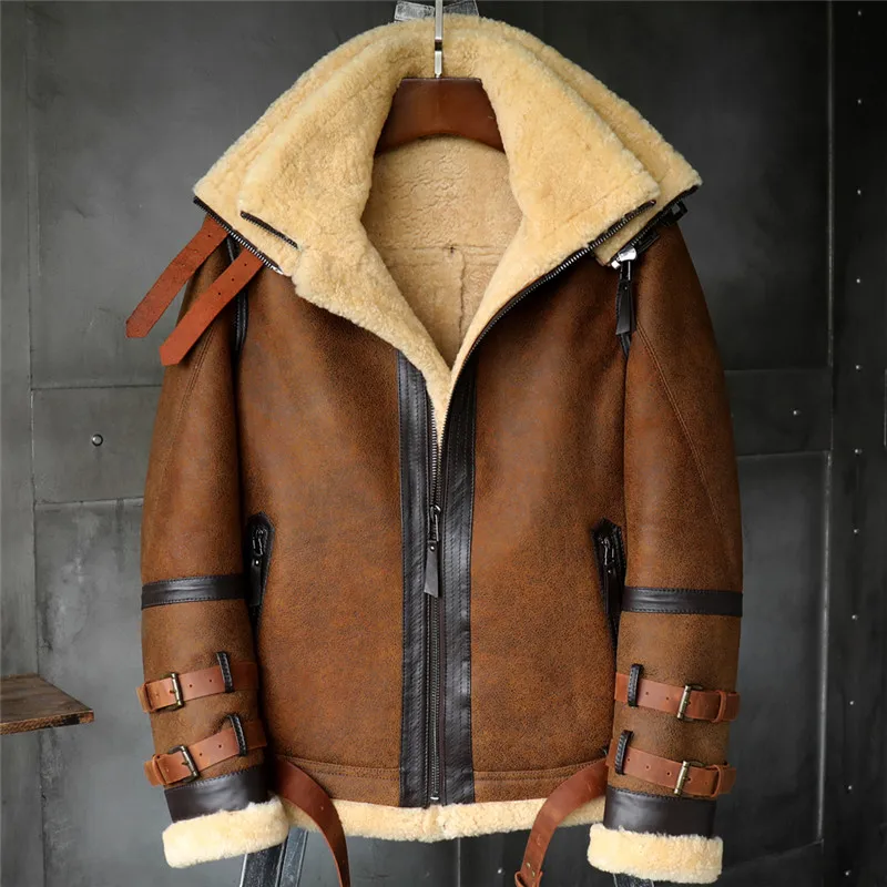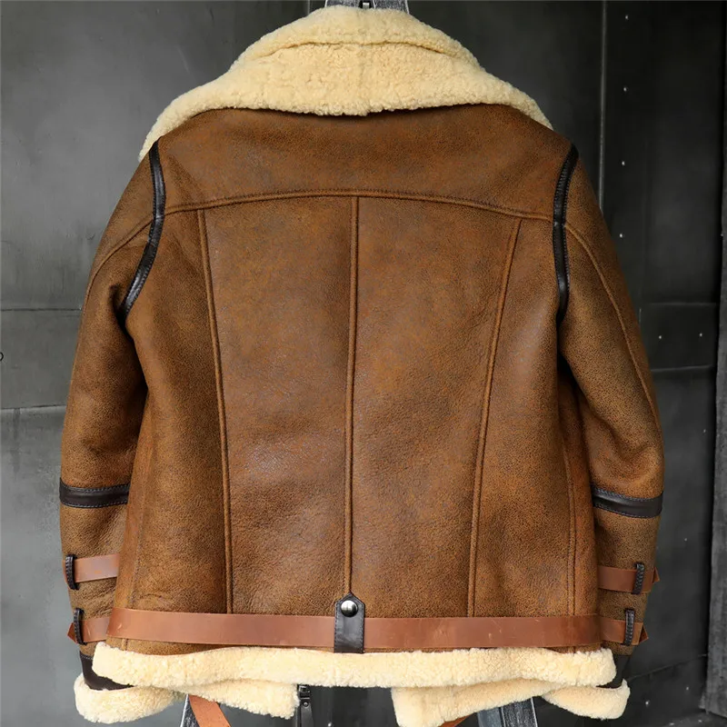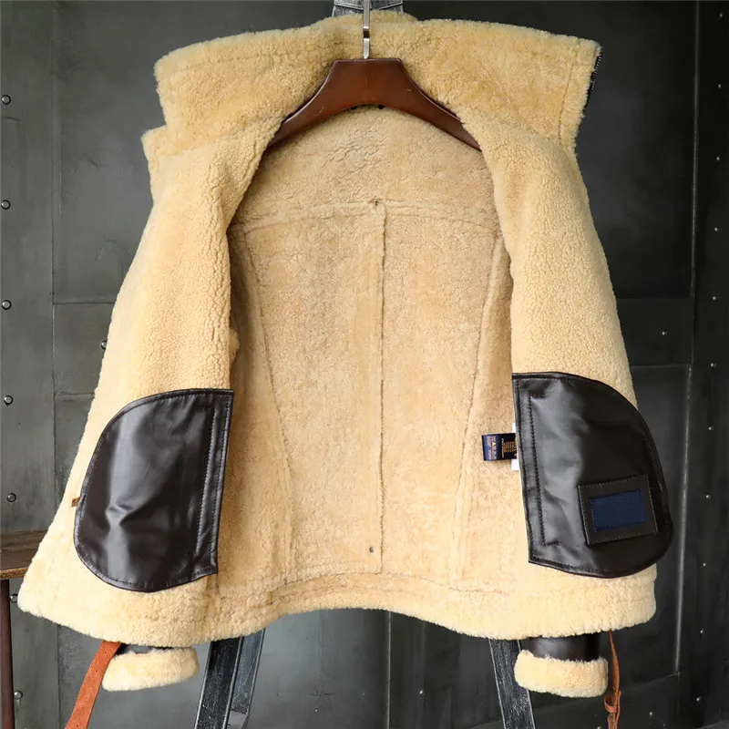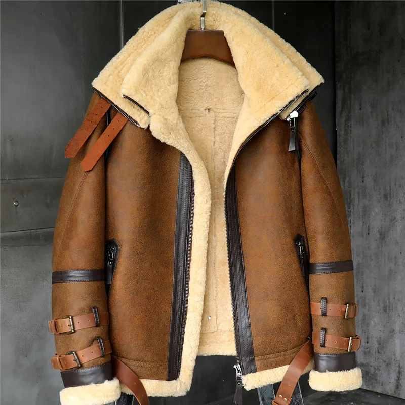 B3 Men’s Shearling Jacket Flight Jacket Imported Wool From Australia Short Leather Jacket Mans Sheepskin Aviator Fur Coat