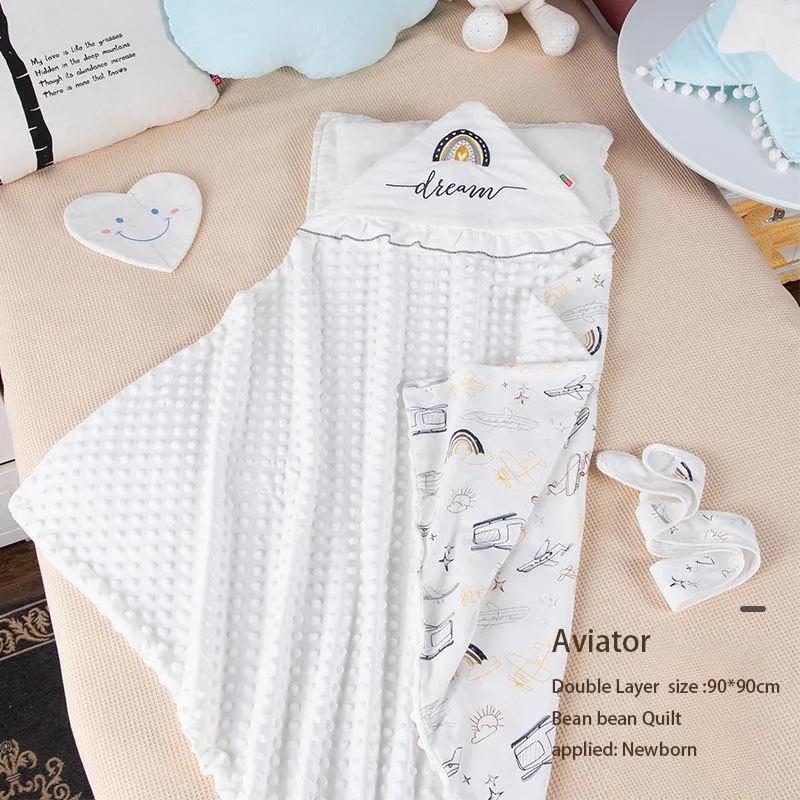 Baby cotton hugging is covered with a newborn double bean velvet quilt