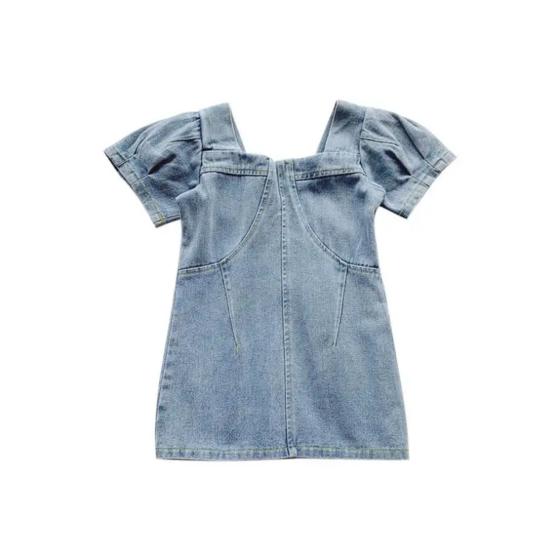 Baby Cute Dresses Denim Clothes For Kids Girl Toddler 4 5 6 years Birthday Princess Fashion Girls Dress Elegant 2021 Summer