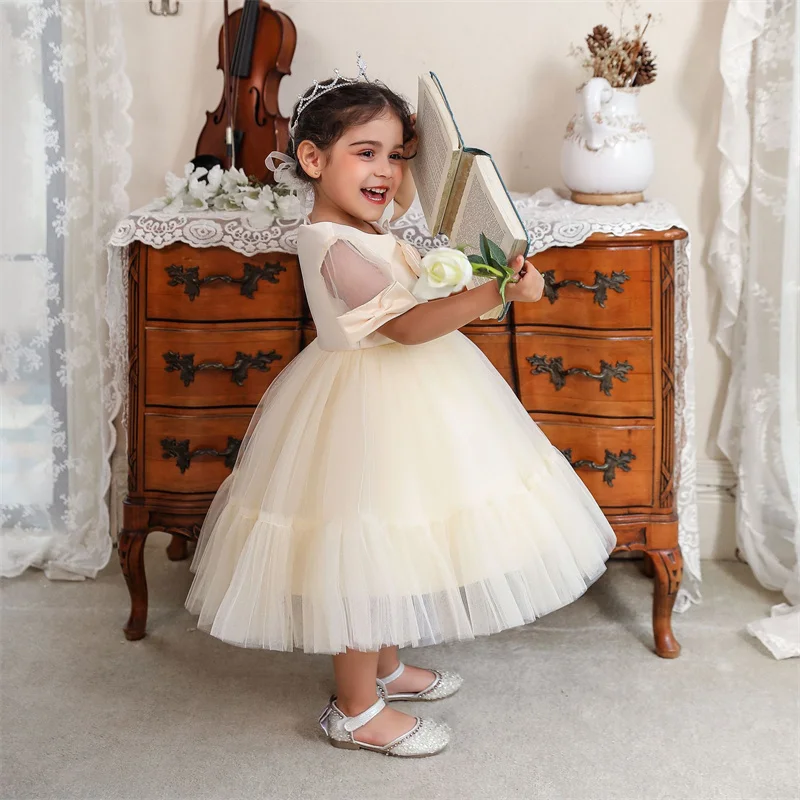Baby Girls Christmas Dress Baptism Toddler Newborn Lace Mesh Princess Dress 1st Year Old Birthday Party New Year Costume