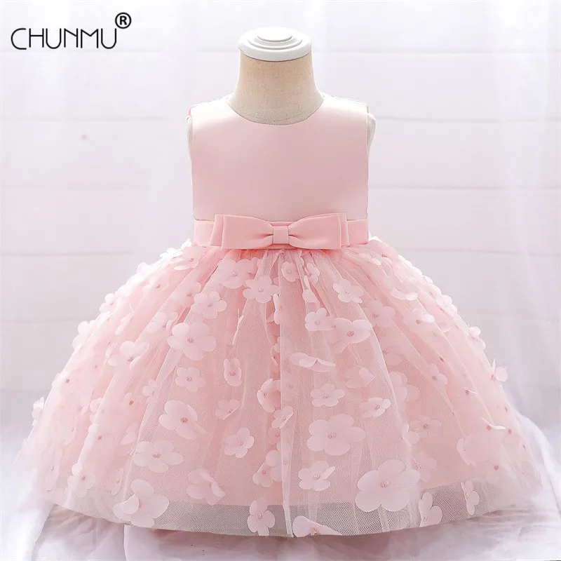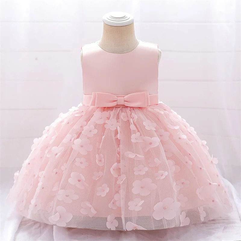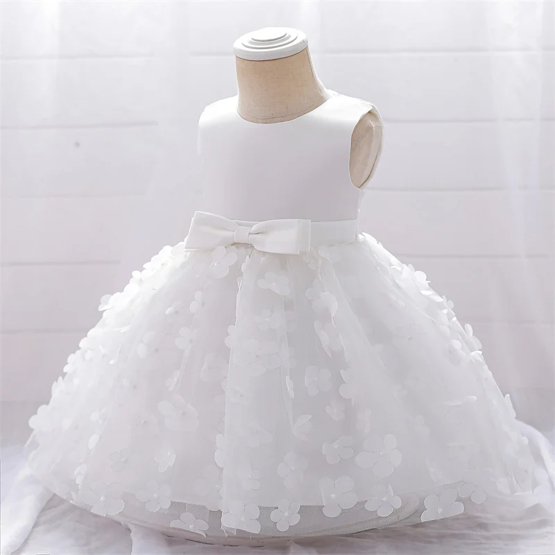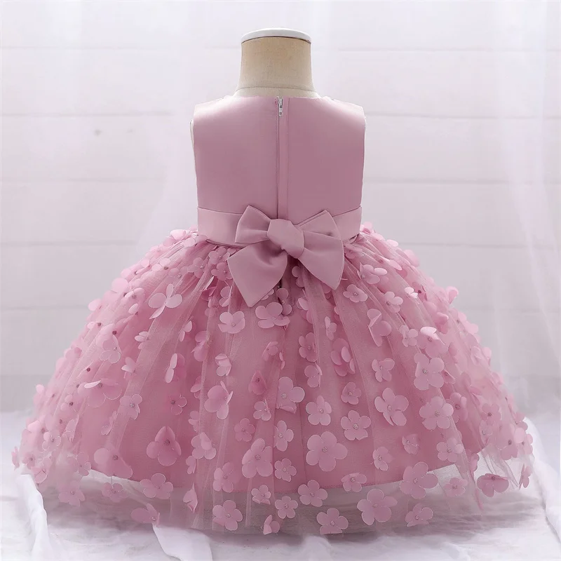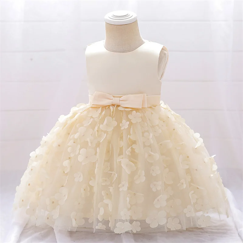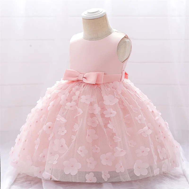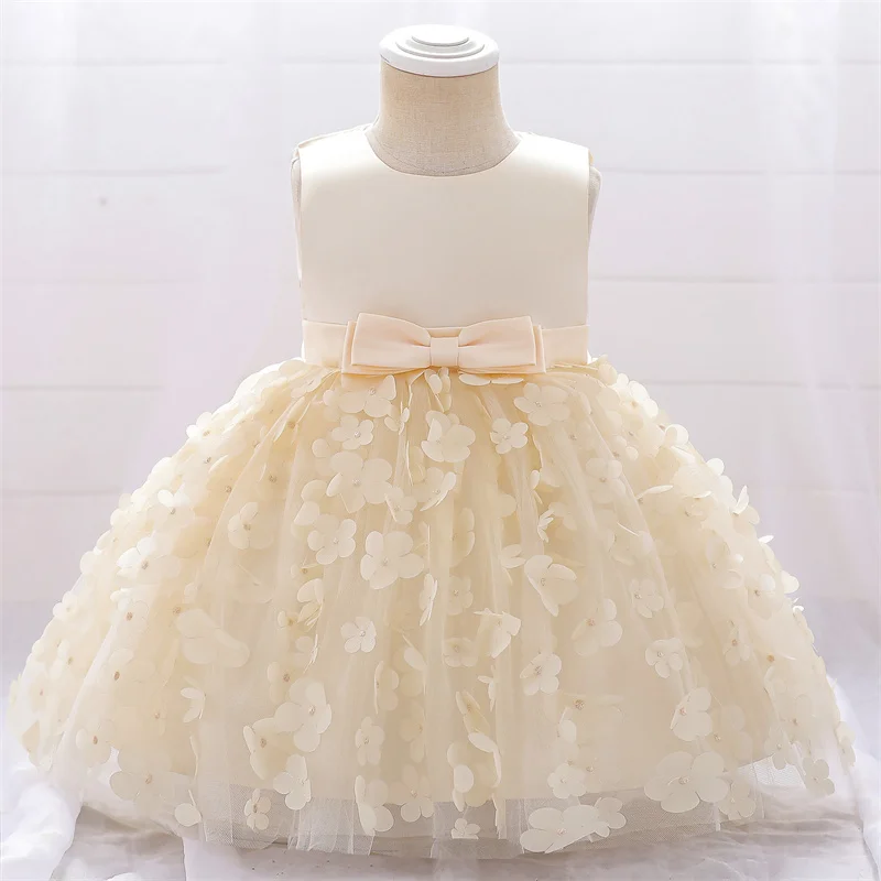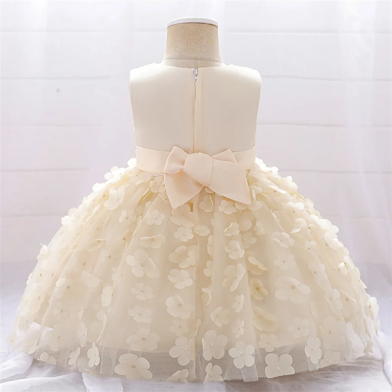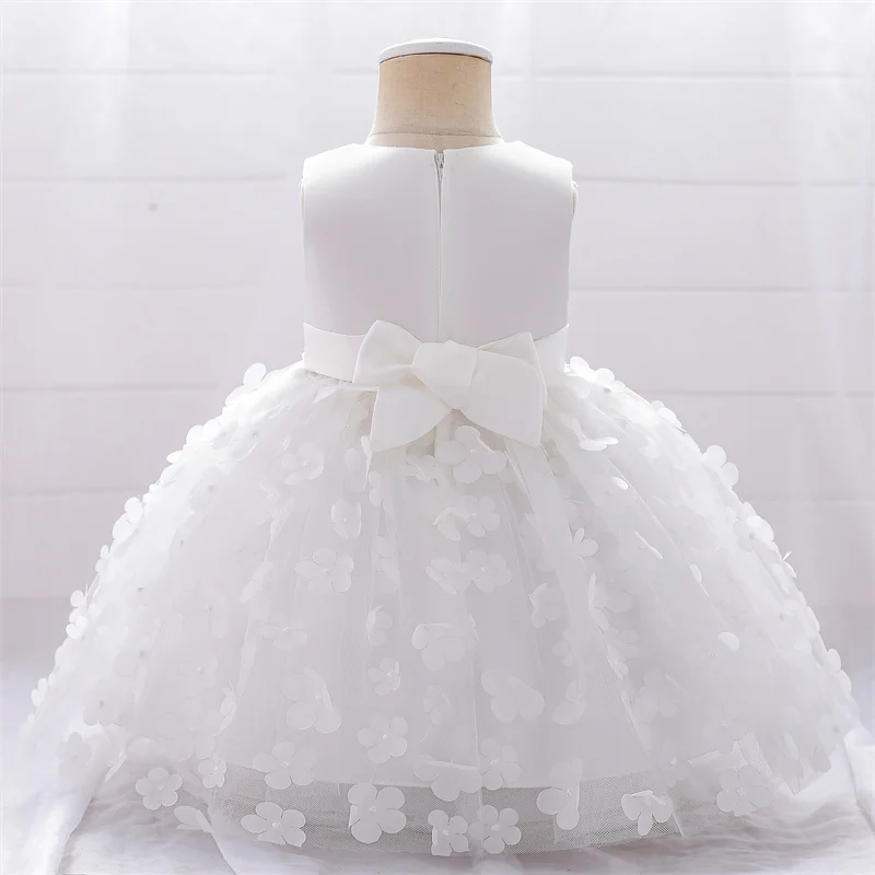 Baby Girls Dresses Long Sleeve Bow 1st Birthday Gown Infant Party Pearl Tutu Princess Newborn Baptism Toddler Gril Clothes