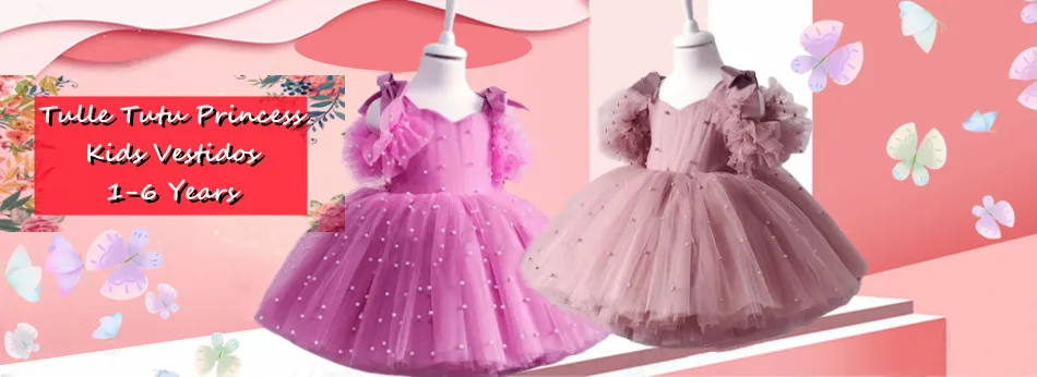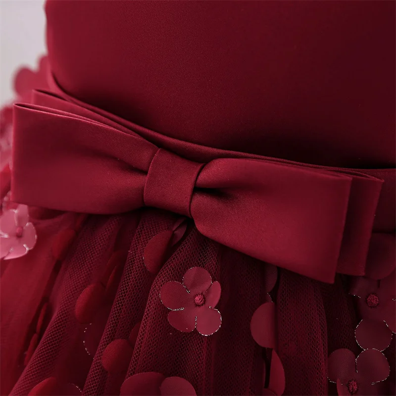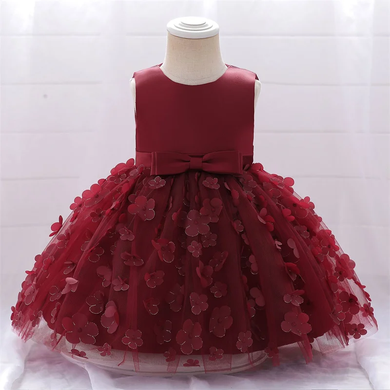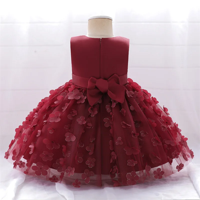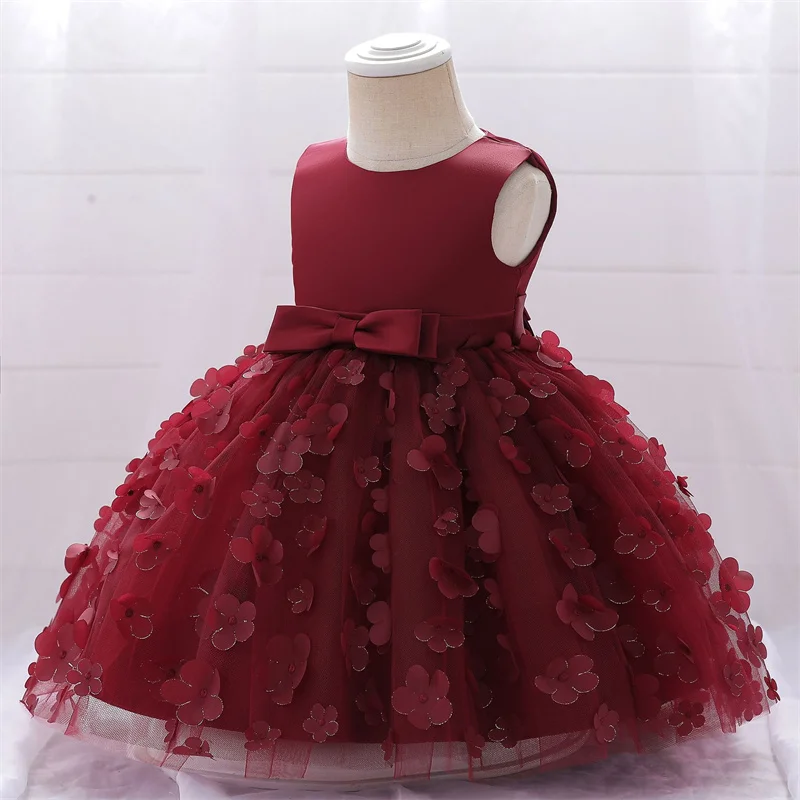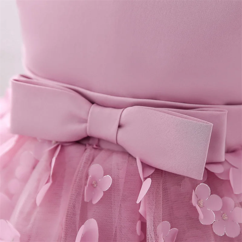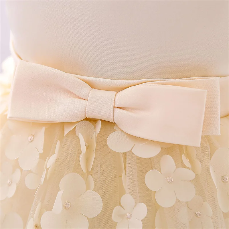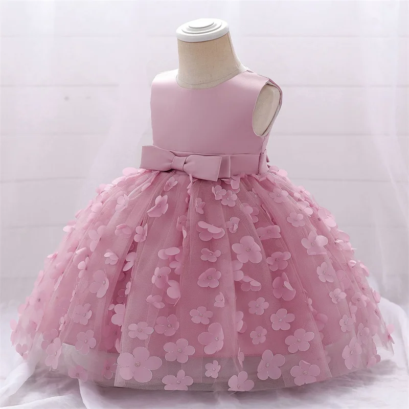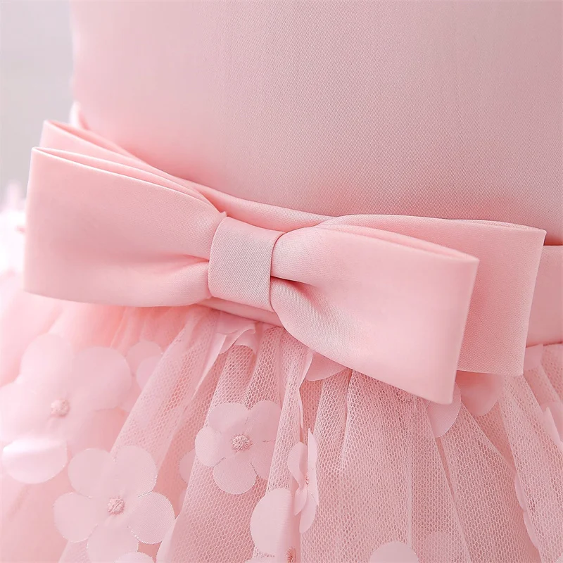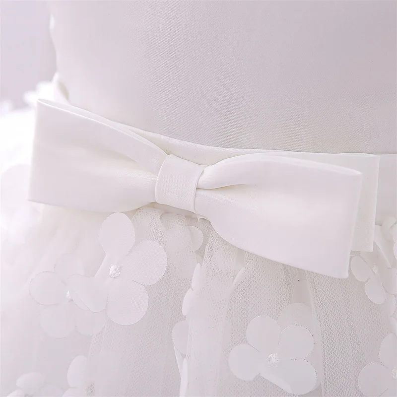Baby Girls Dresses Long Sleeve Bow 1st Birthday Gown Infant Party Pearl Tutu Princess Newborn Baptism Toddler Gril Clothes