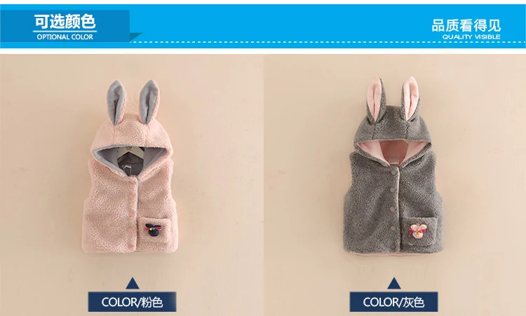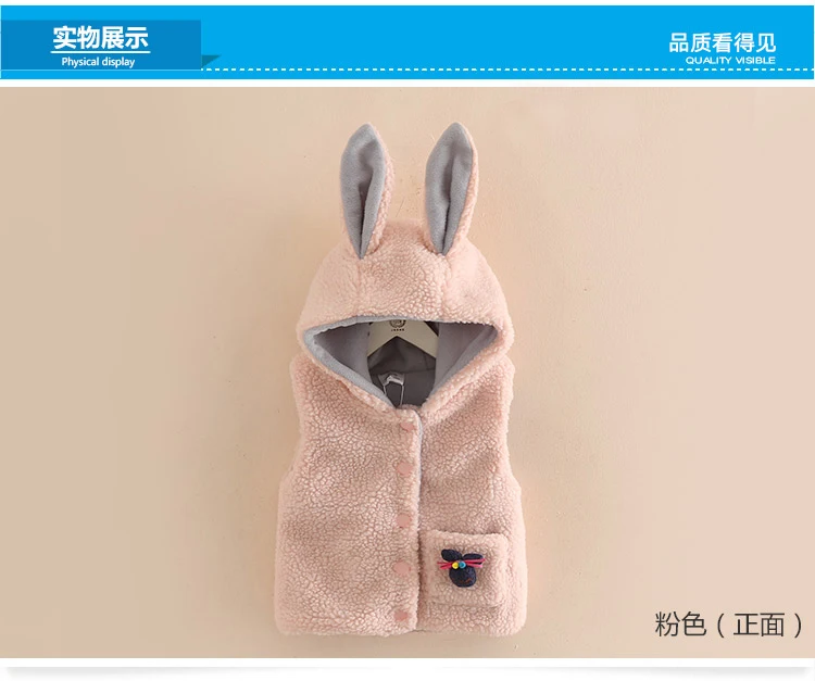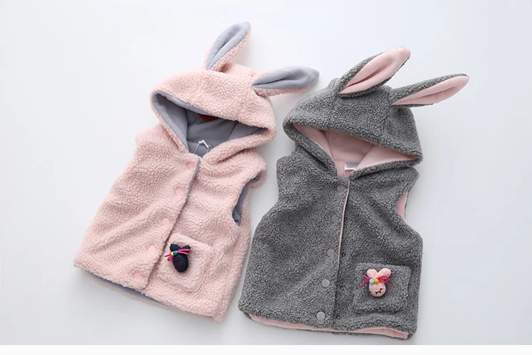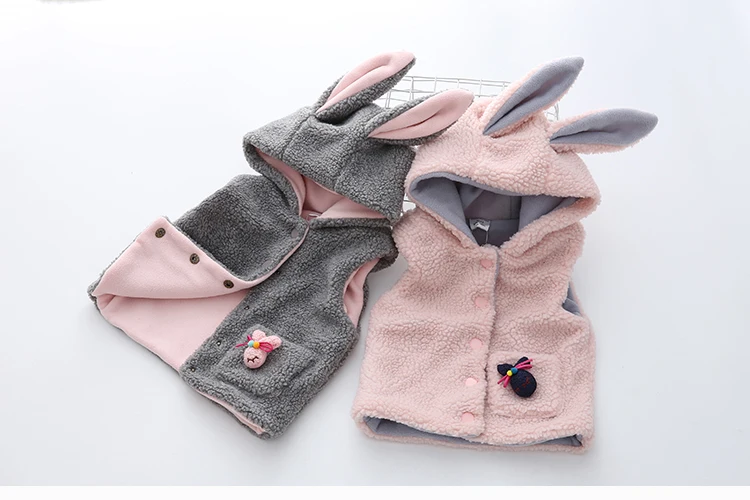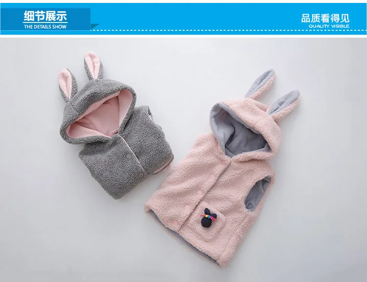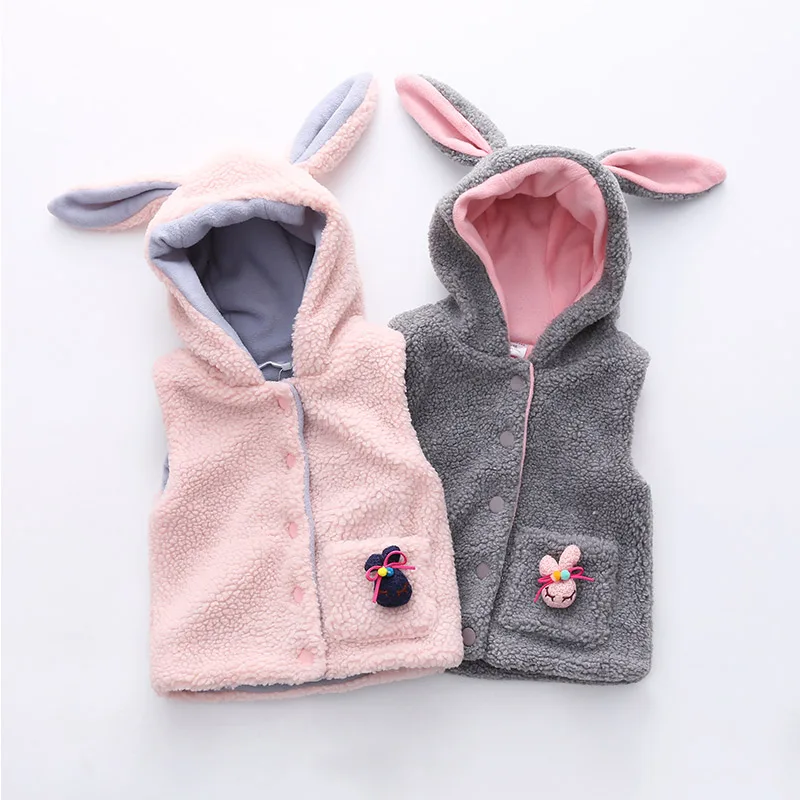 Baby Girls Vest Coat Winter Autumn Baby Girls Princess Coat Jacket Rabbit Ear Hooded Casual Waistcoats for Girl Infants Clothing
