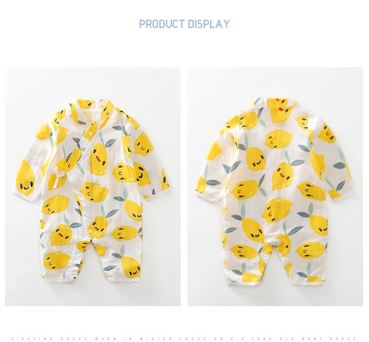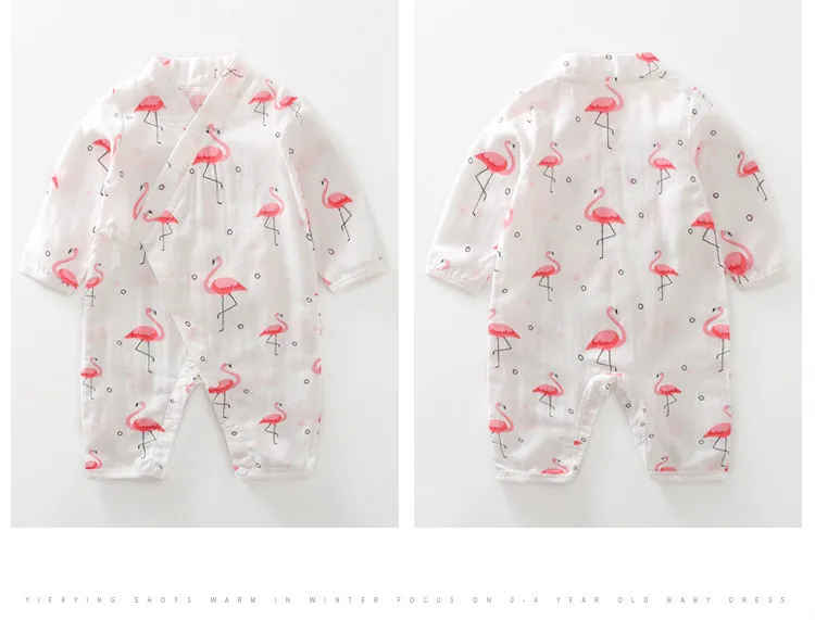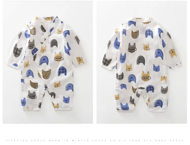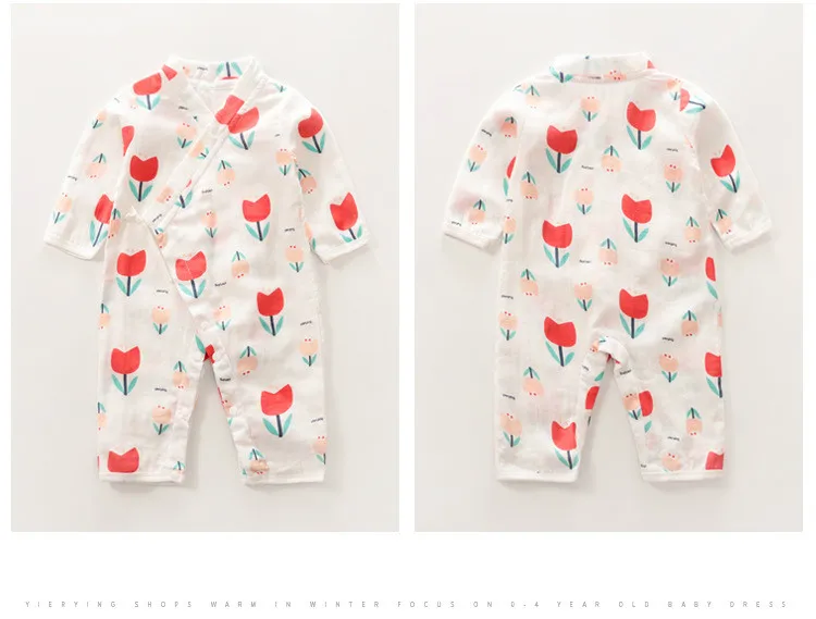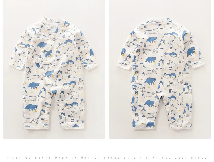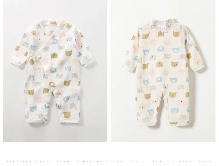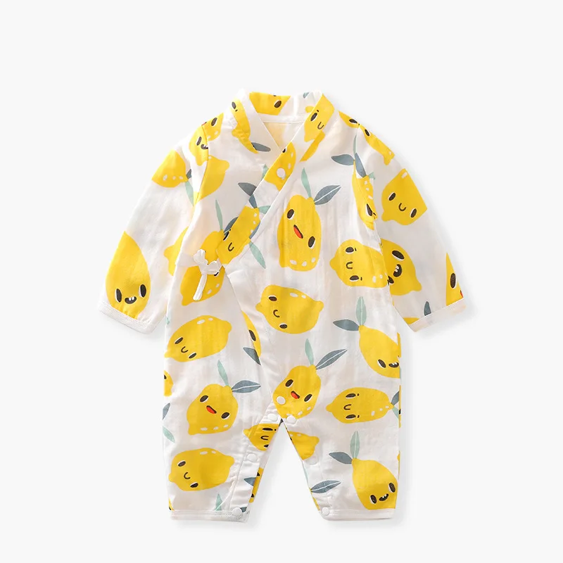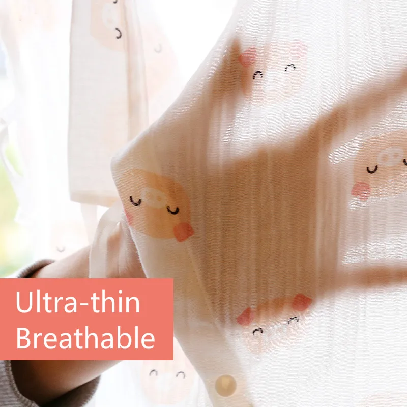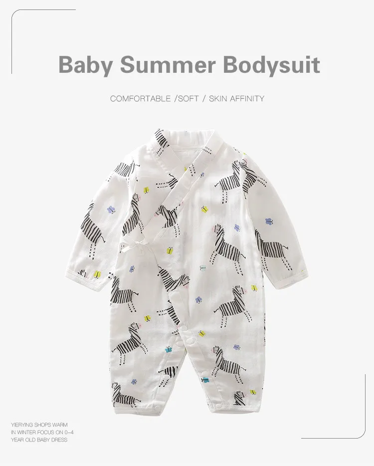 Baby Jumpsuit Summer Baby Air-conditioning Clothing Newborn Thin Gauze Breathable Long Sleeve Belt Diagonal Pajamas