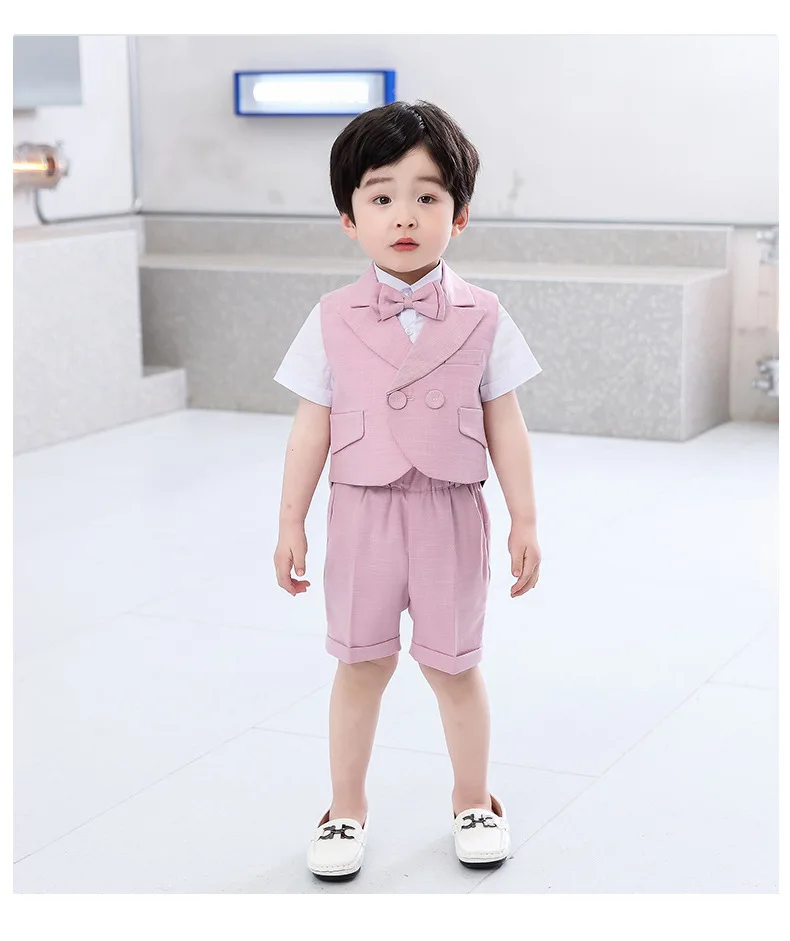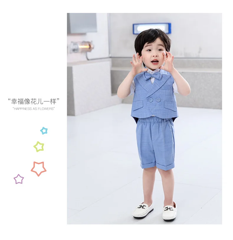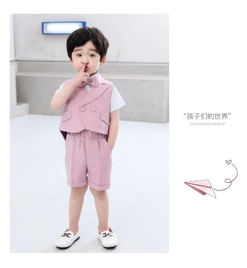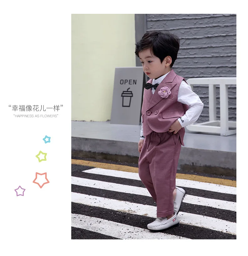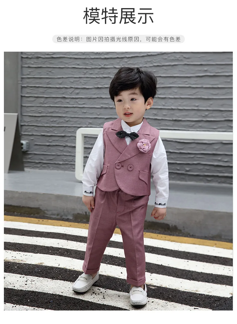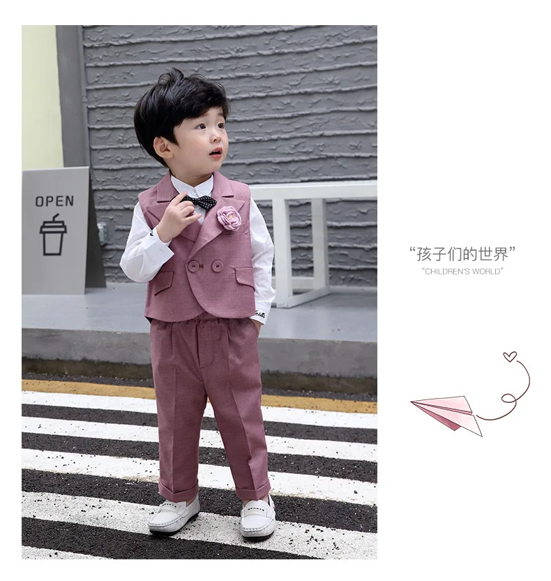 Baby One-year-old Dress Formal Vest Suit Set Little Boy Birthday Banquet Party Costume Kids Tuxedo Waistcoat Pants Clothing Set