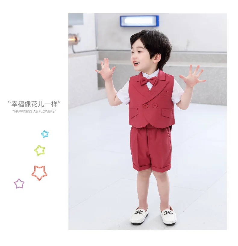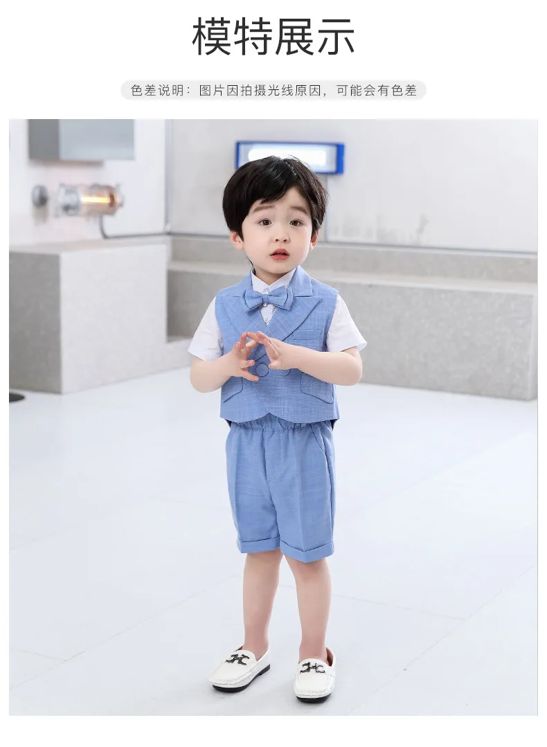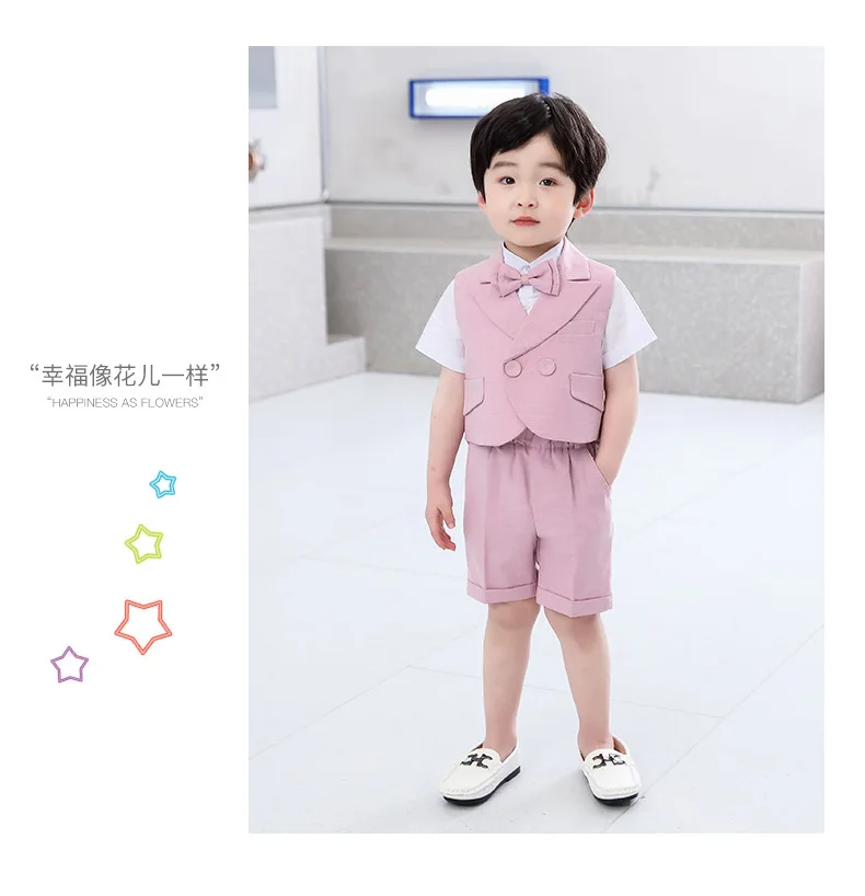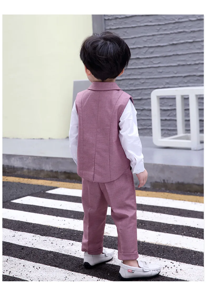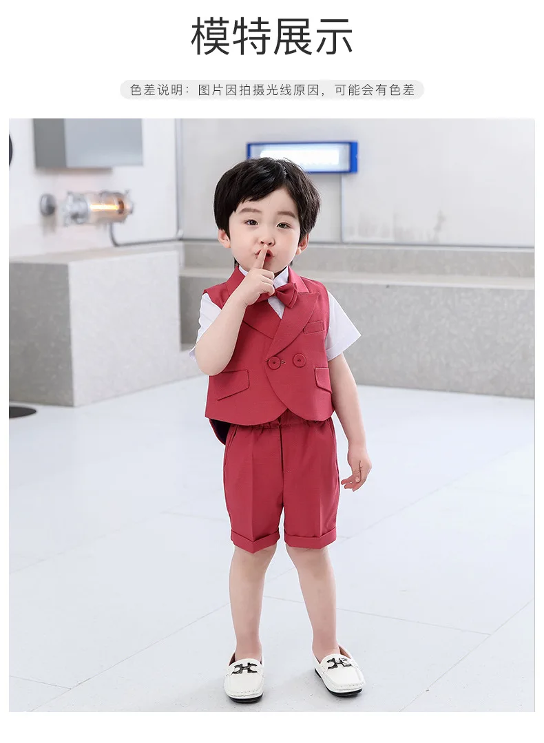 Baby One-year-old Dress Formal Vest Suit Set Little Boy Birthday Banquet Party Costume Kids Tuxedo Waistcoat Pants Clothing Set