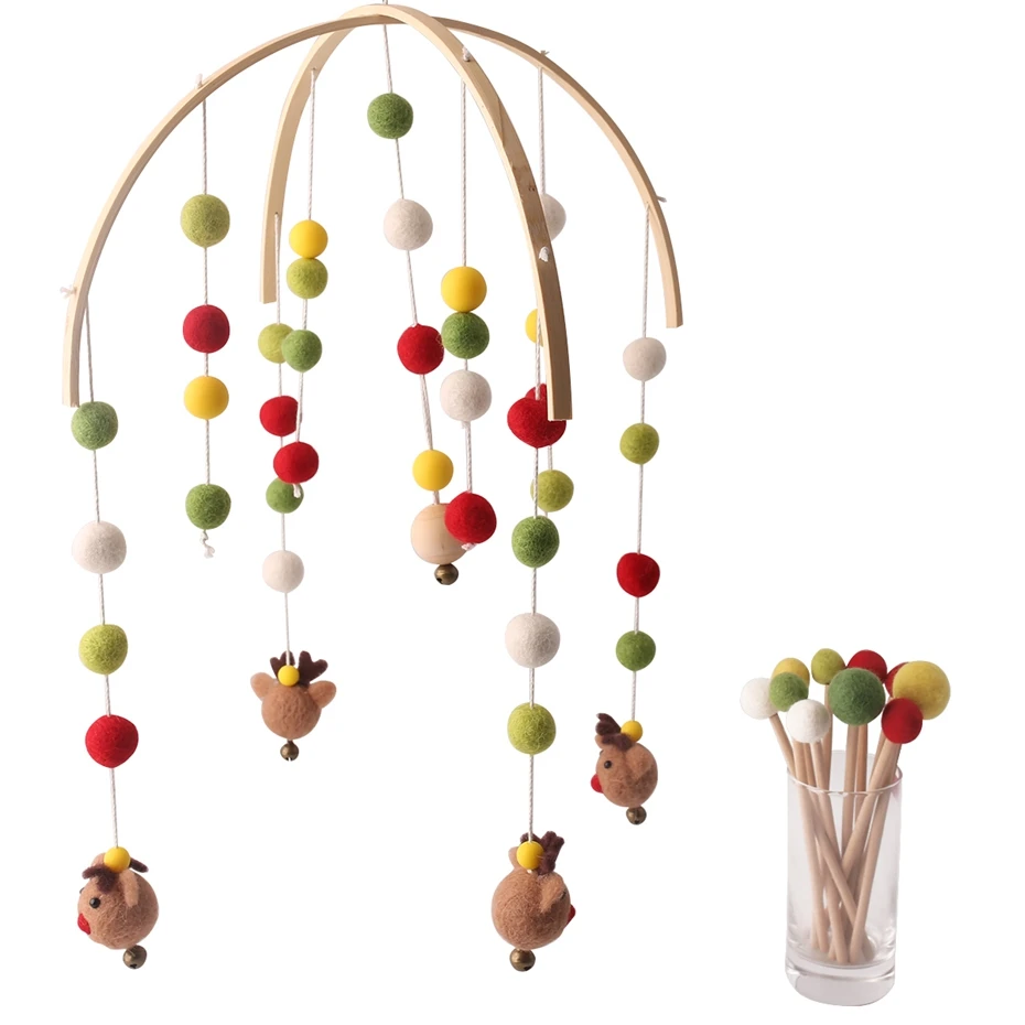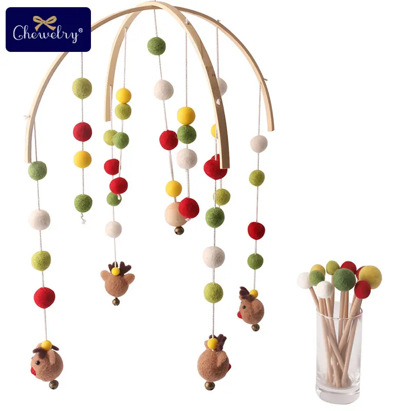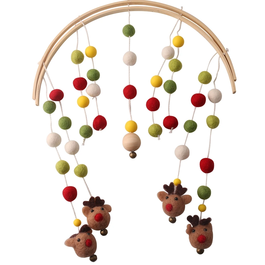 Baby Rattles Mobile Ball Deer Cartoon Wooden Stroller Hanging Baby Teether Rattle Baby Toys For Bed Infant Crib Wooden Toys