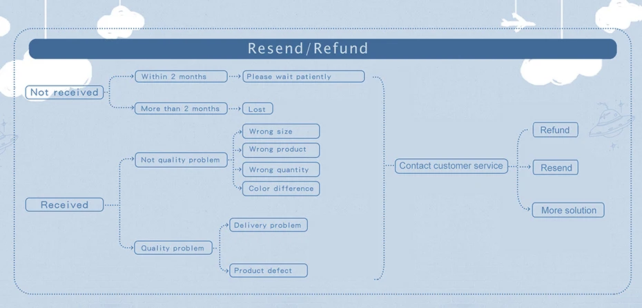 • If you did not receive the product within the guaranteed time( 45 days not including 2-5 day processing) you can request a refund or a reshipment.