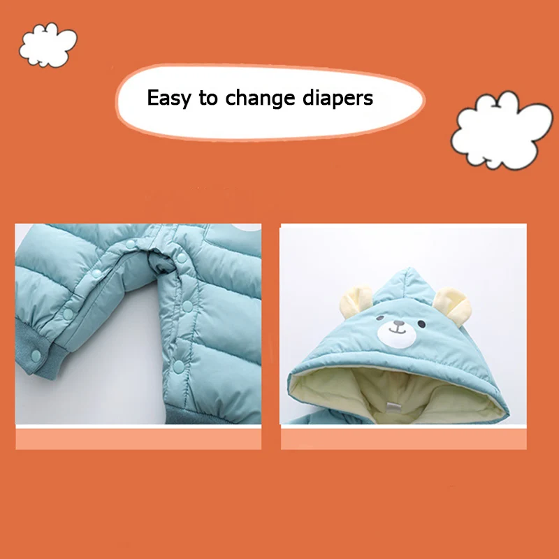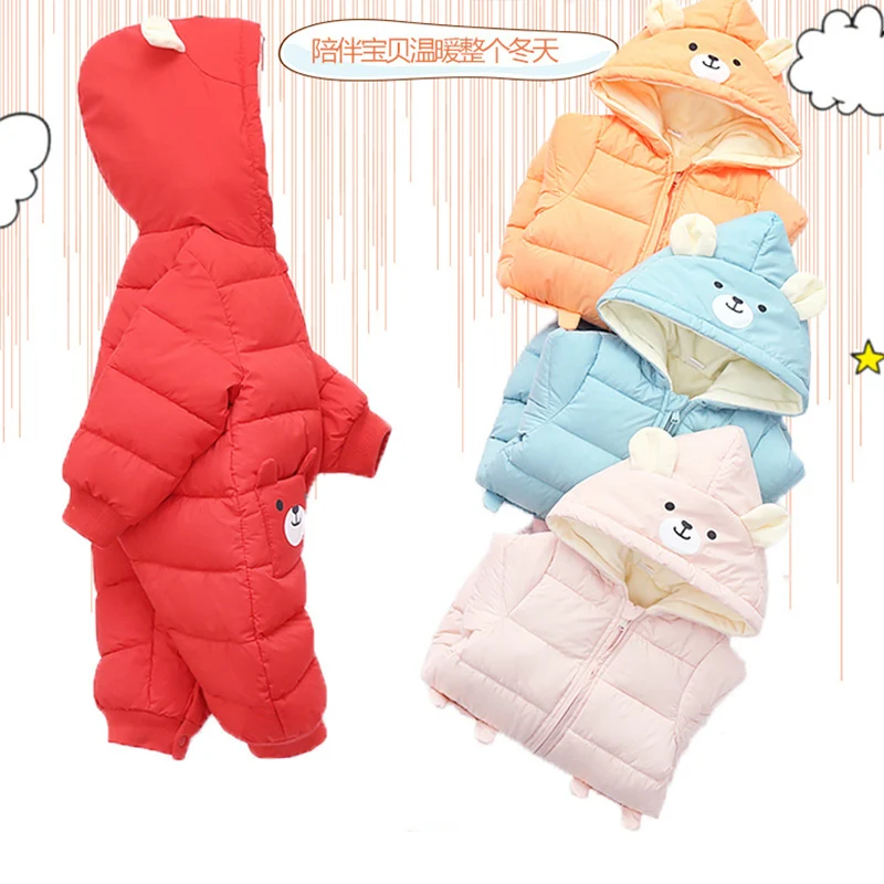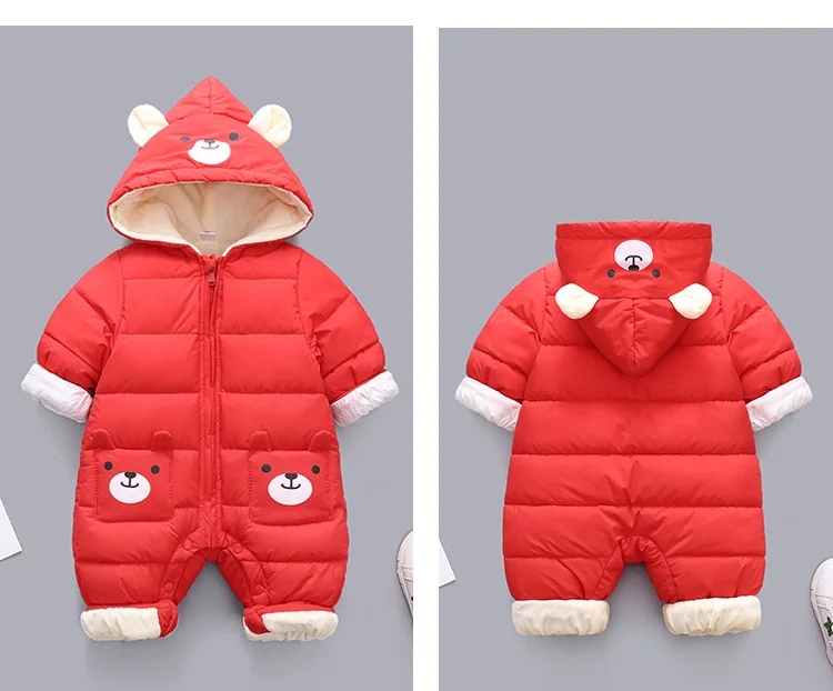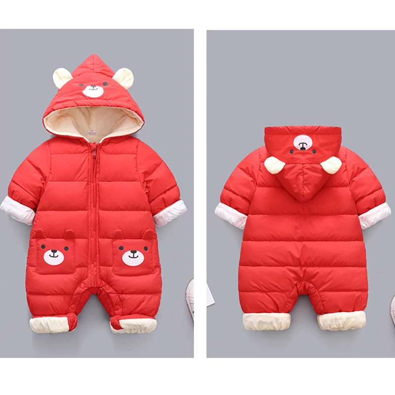 Baby Winter Snowsuit Plus Velvet Thick Baby Boys Jumpsuit 0-2 Years Newborn Romper Baby Girls Overalls Toddler Coat