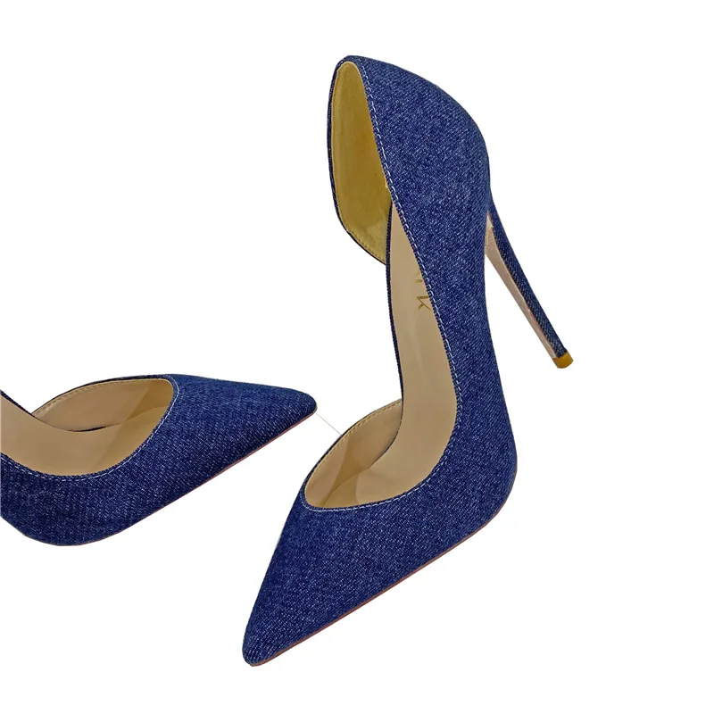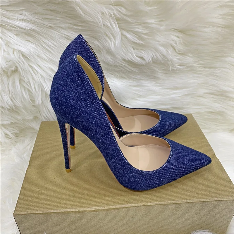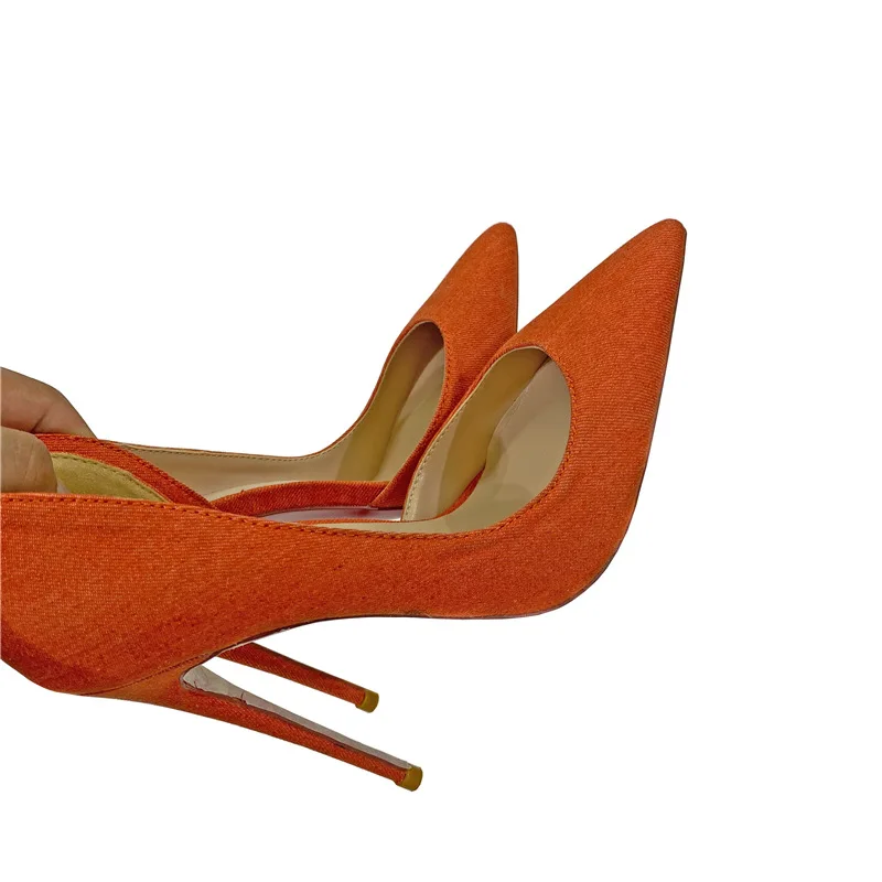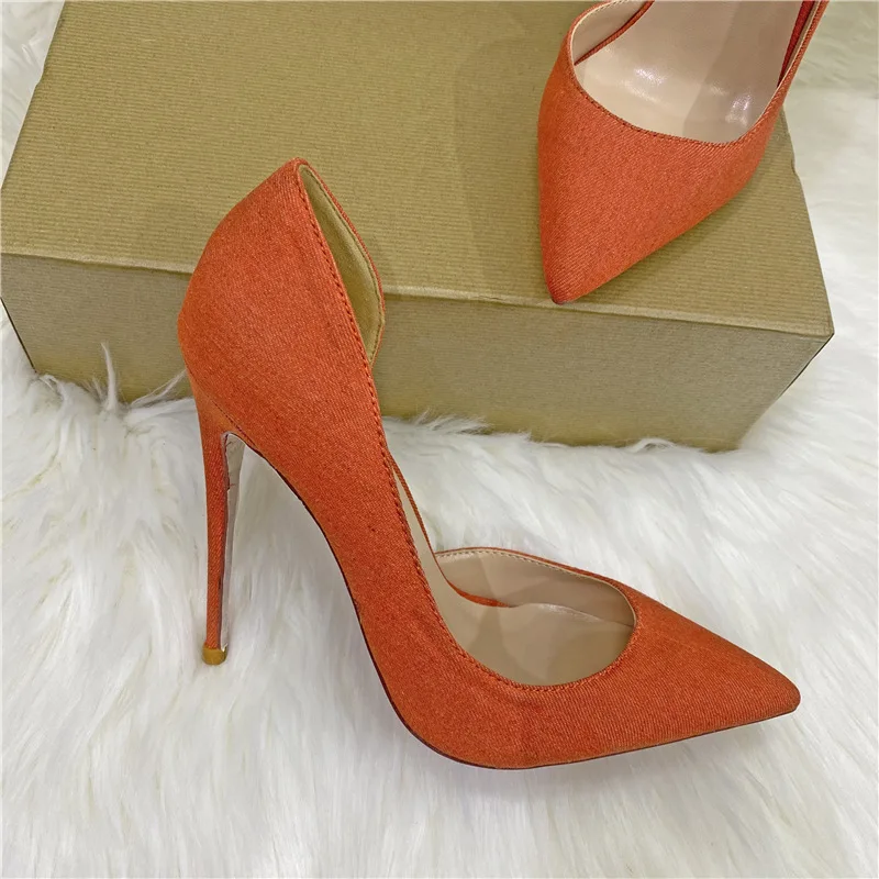 BALOUDEA Orange Denim Pointed Toe Stilettos Sexy Ladies Blue Denim Side Empty Party Slip-On High Heels 8cm 10cm 12cm Party Shoes