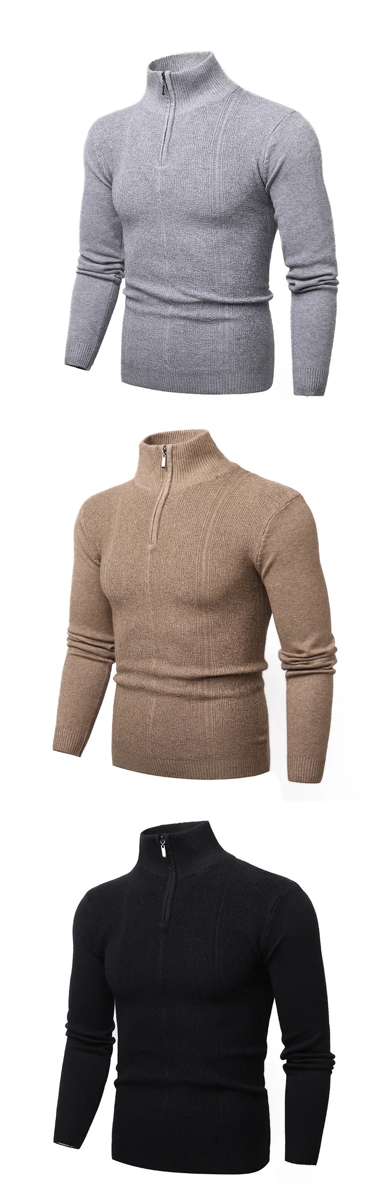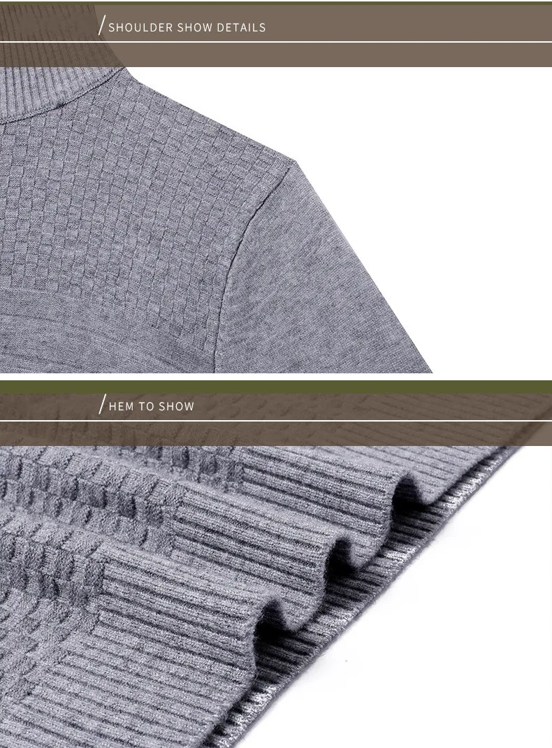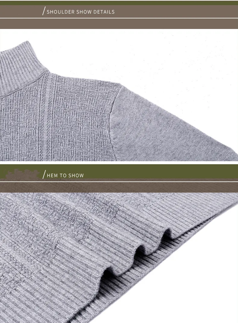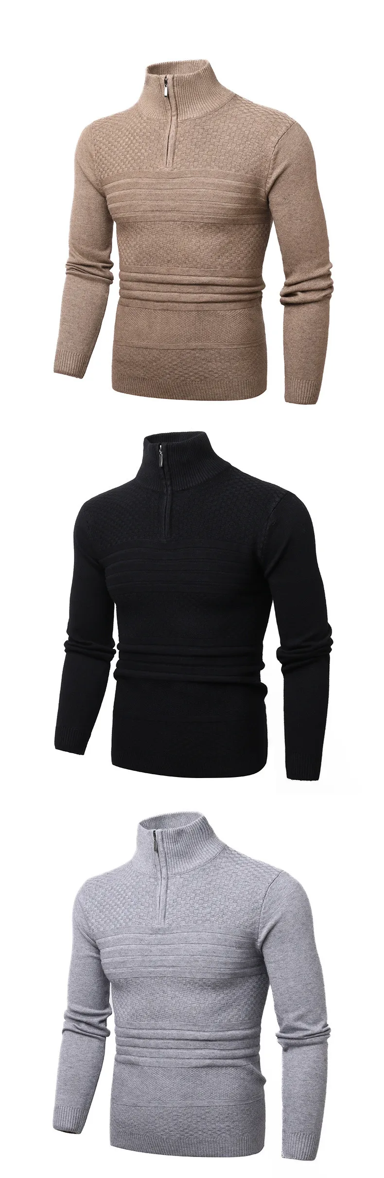 Basic Knitted Pullovers Sweater Men Casual Cotton Mock Neck Warm Sweaters Mens Fashion Solid Color Quality Stripe Sweaters Male