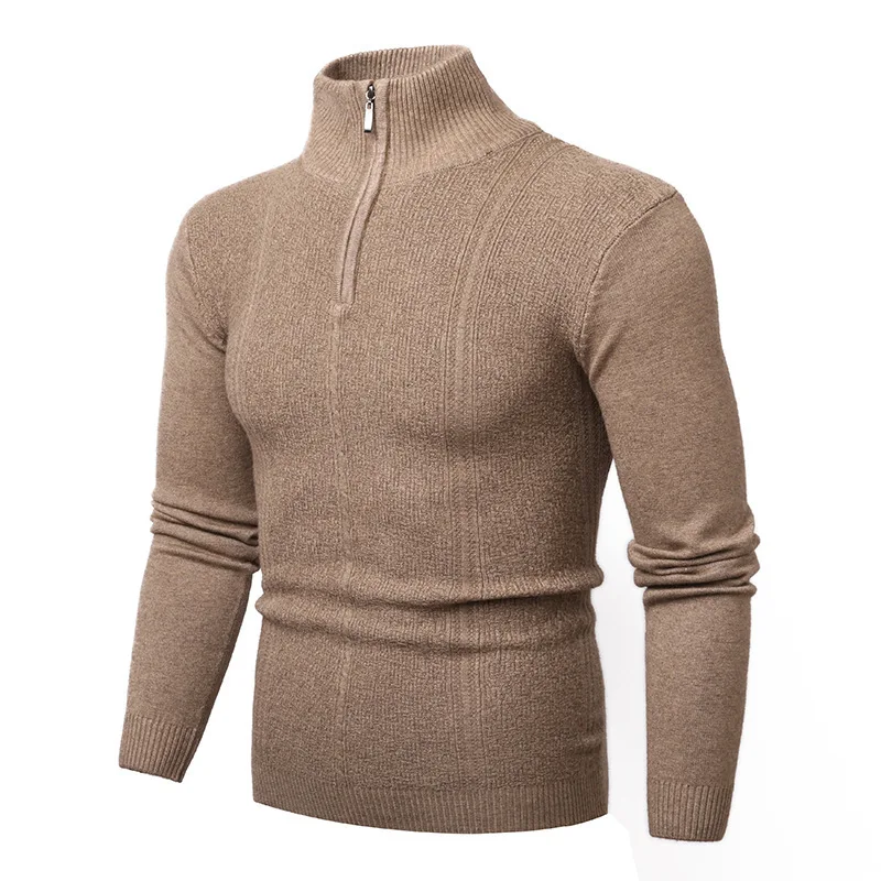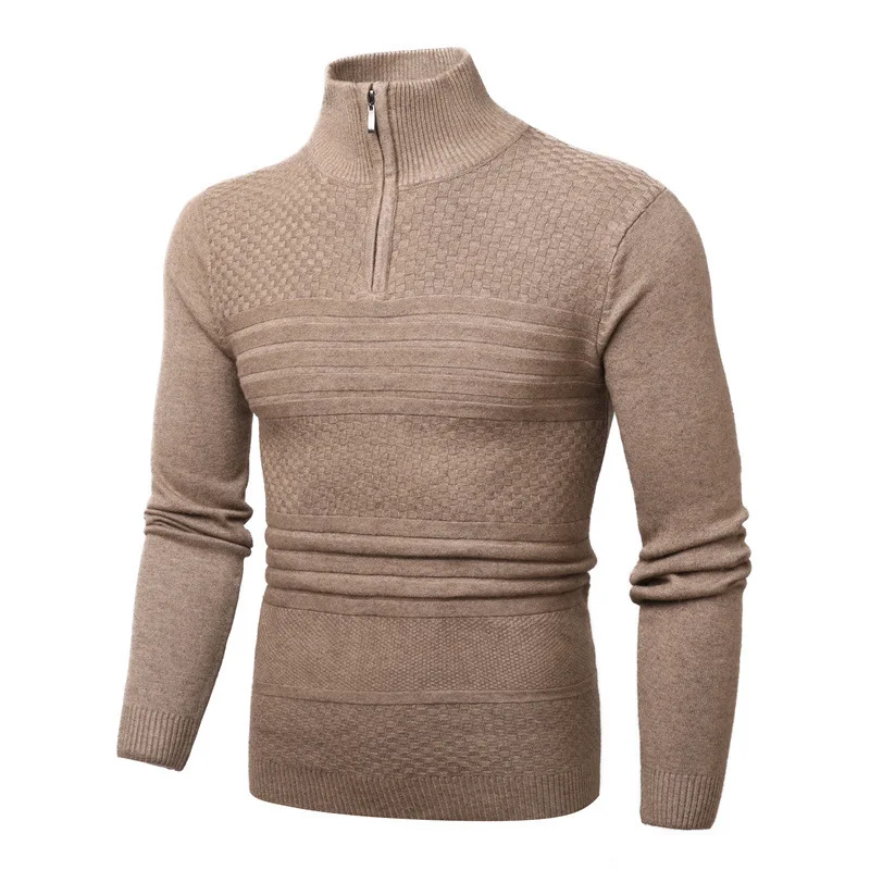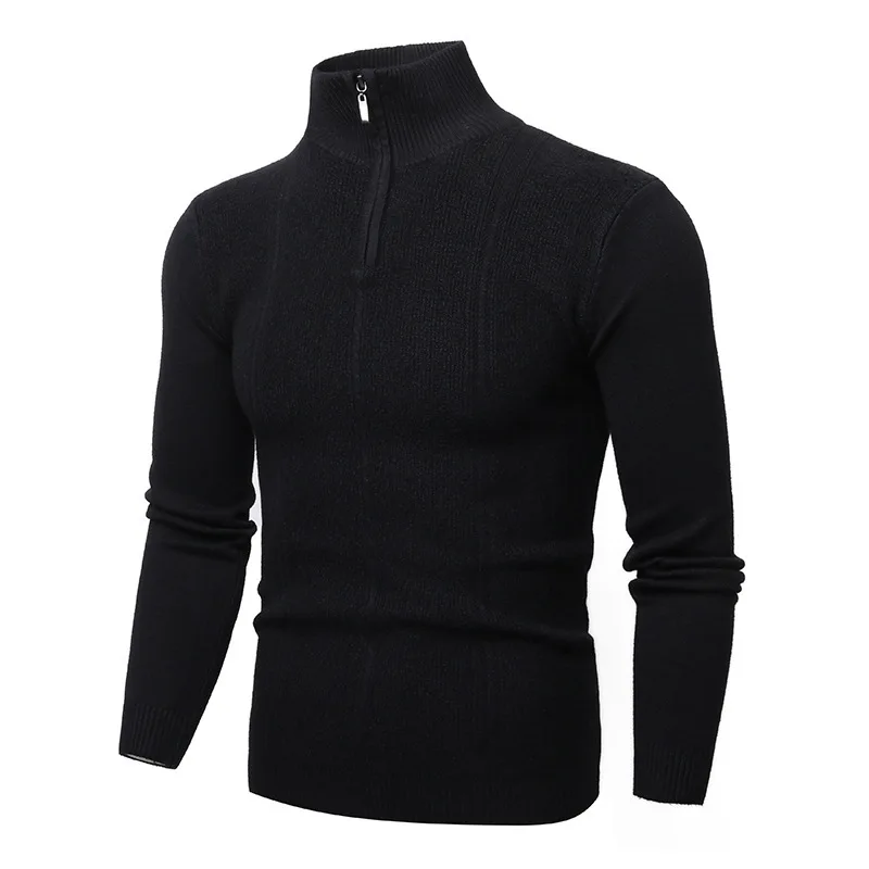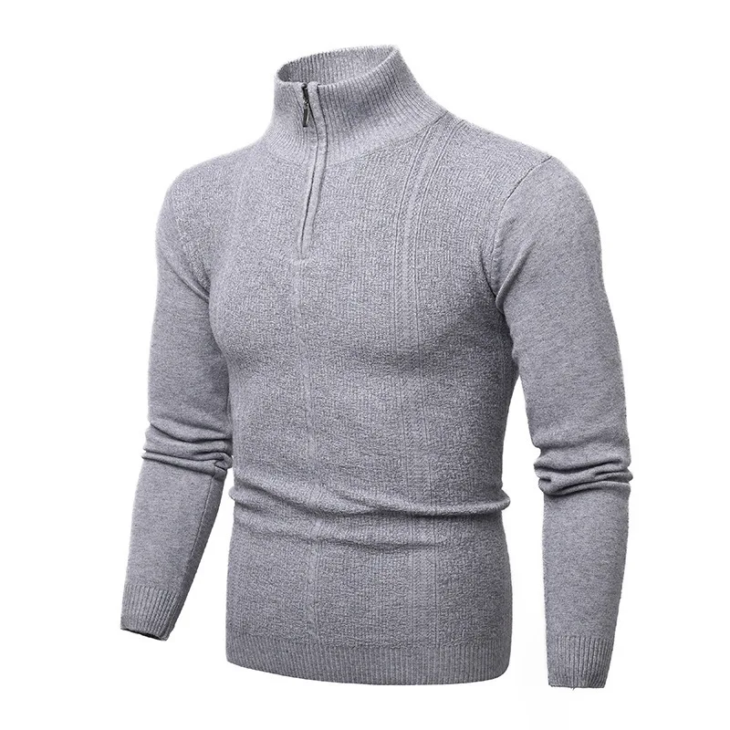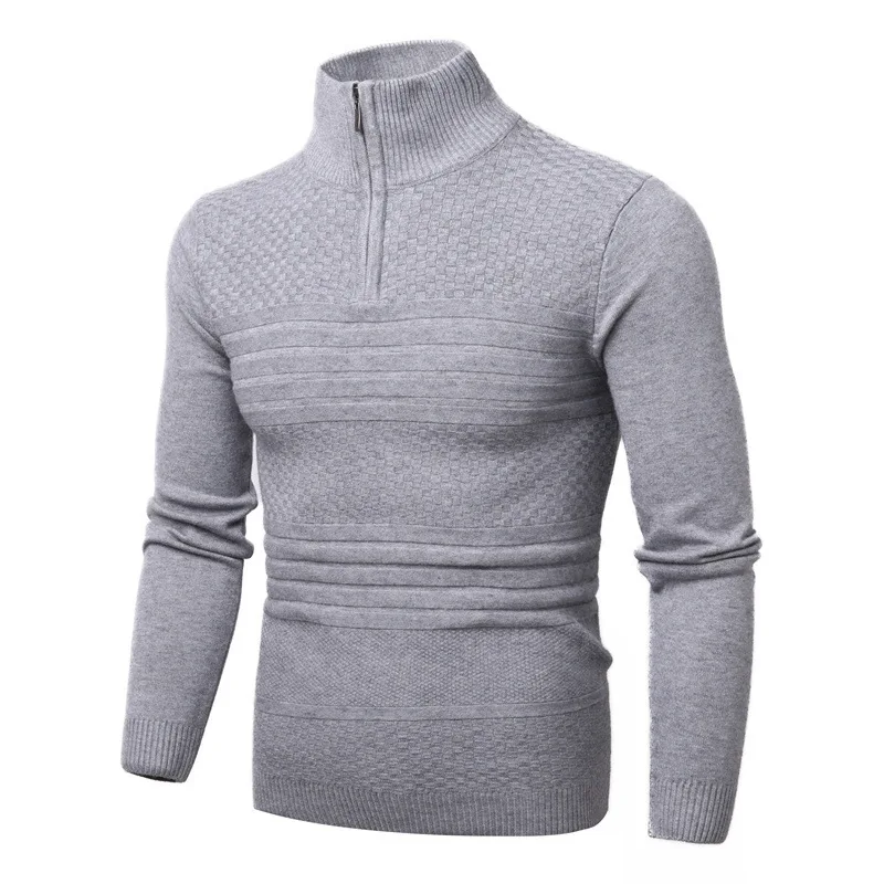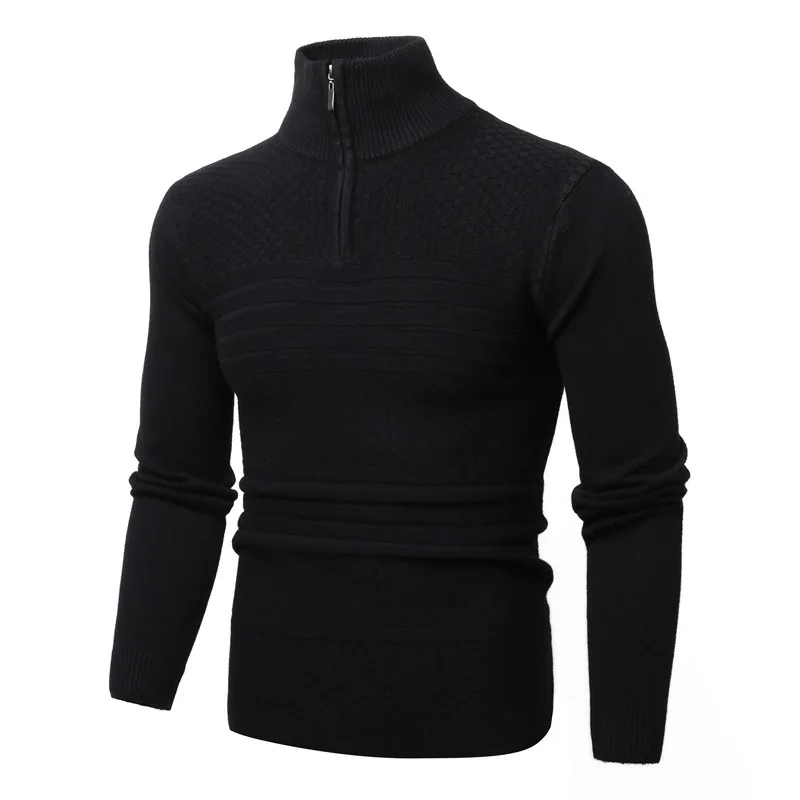 Basic Knitted Pullovers Sweater Men Casual Cotton Mock Neck Warm Sweaters Mens Fashion Solid Color Quality Stripe Sweaters Male