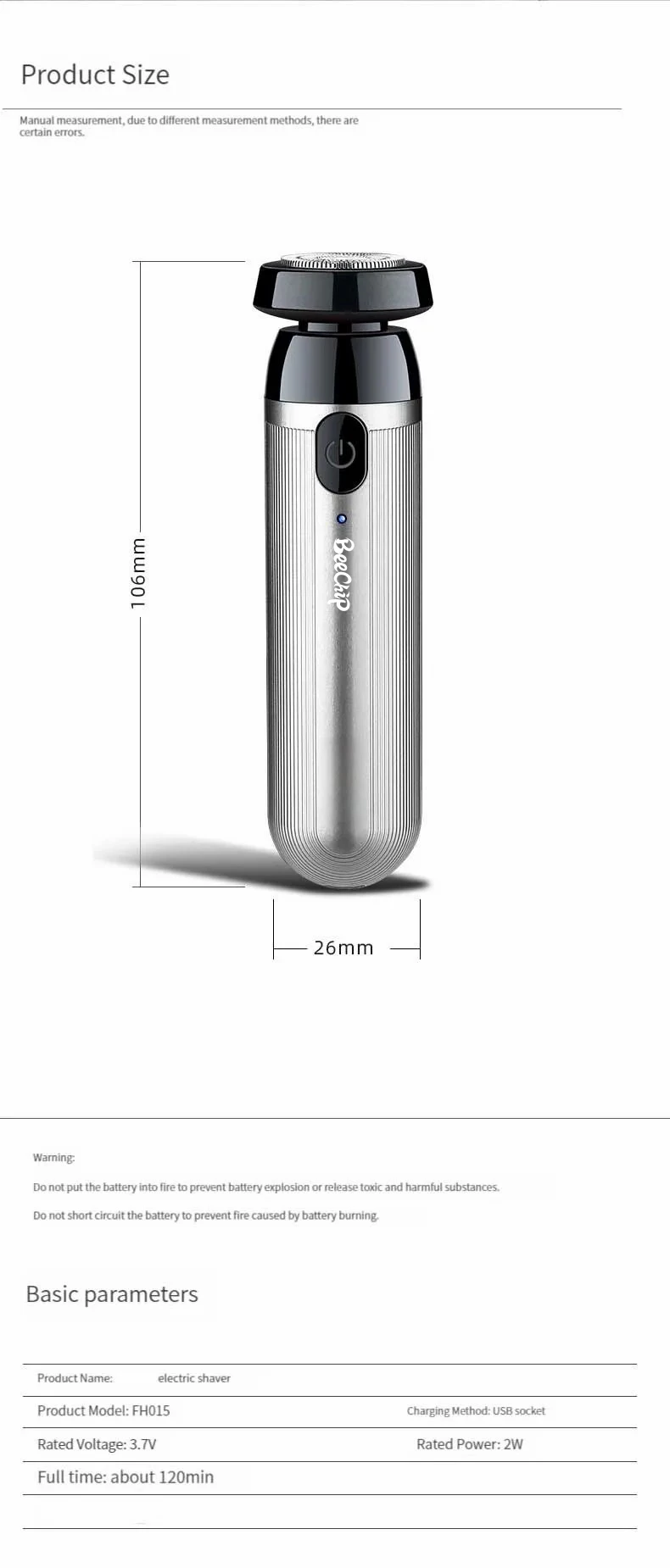 Bass High-Speed Fast Charging Portable Electric Shaver For Men And Women Mini Rechargeable Shaver Easy To Dismantle In One Step