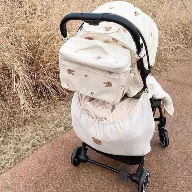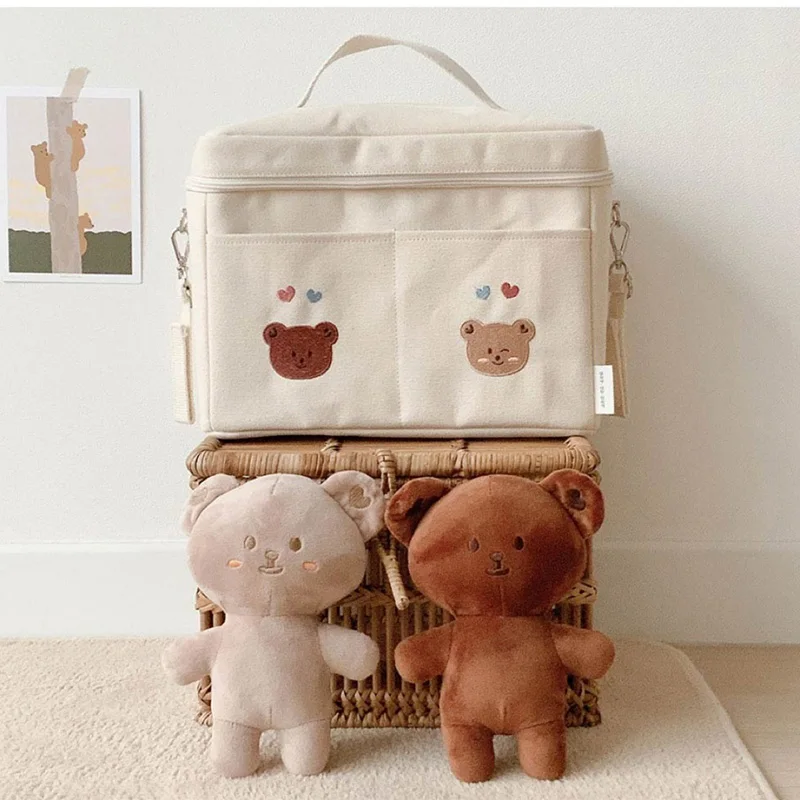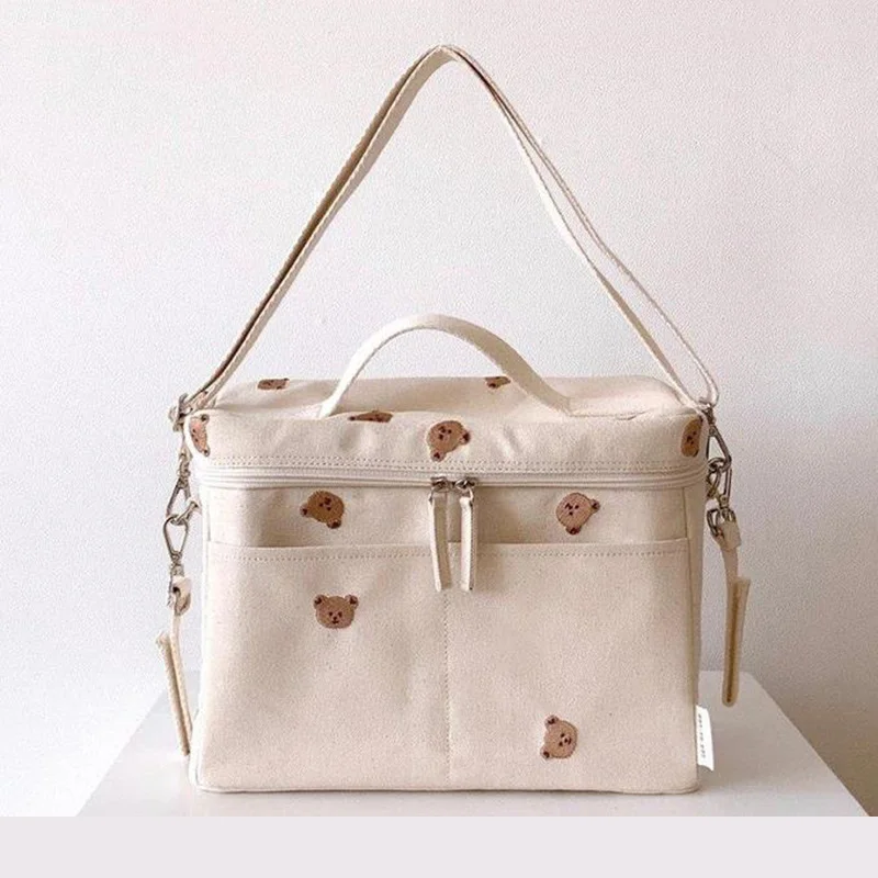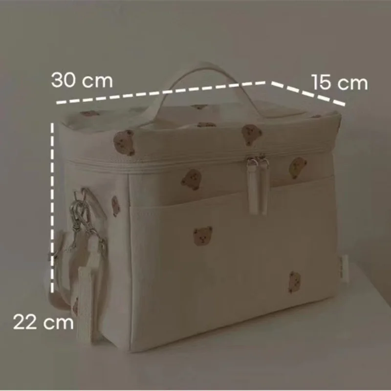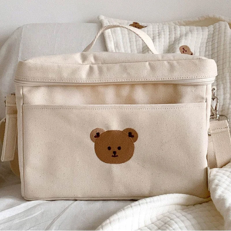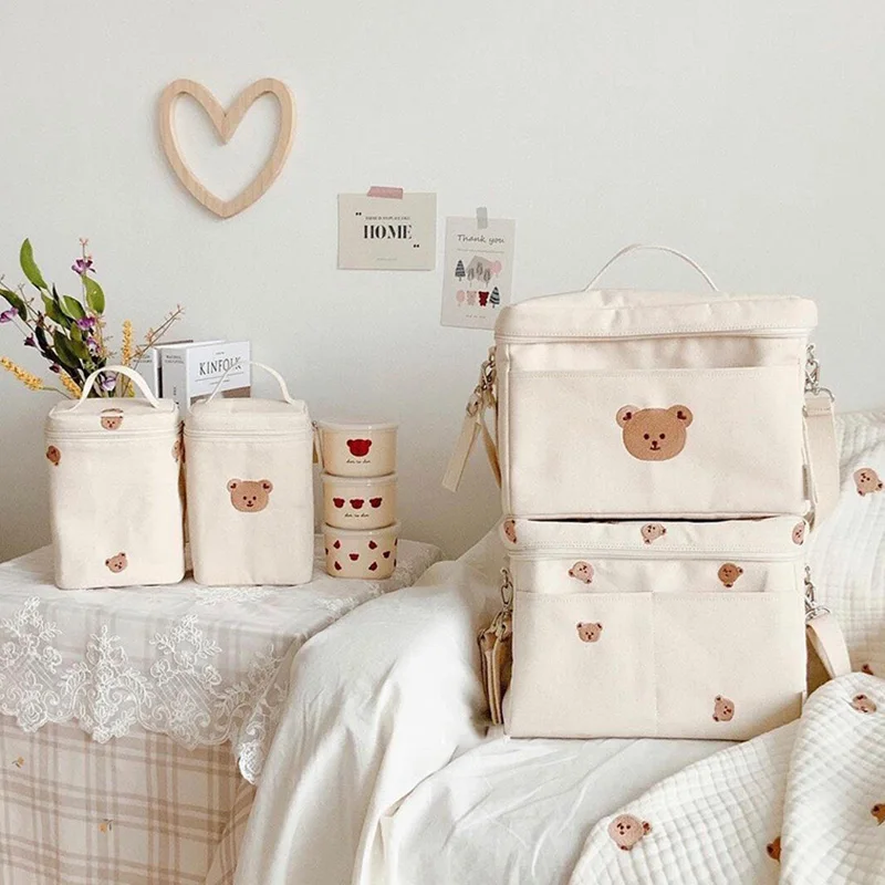 Bear Embroidery Insulated Lunch Bag Kids Portable Food Storage Canvas Waterproof Thermal Lunch Box Mommy Diaper Bag for Stroller