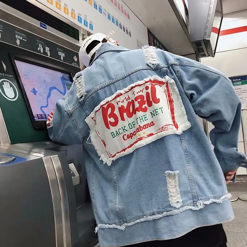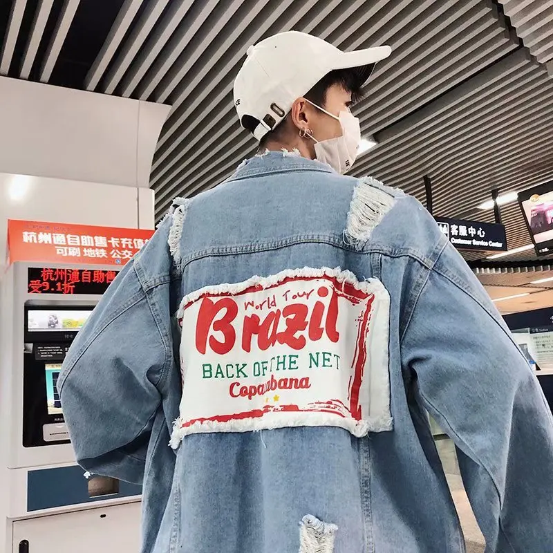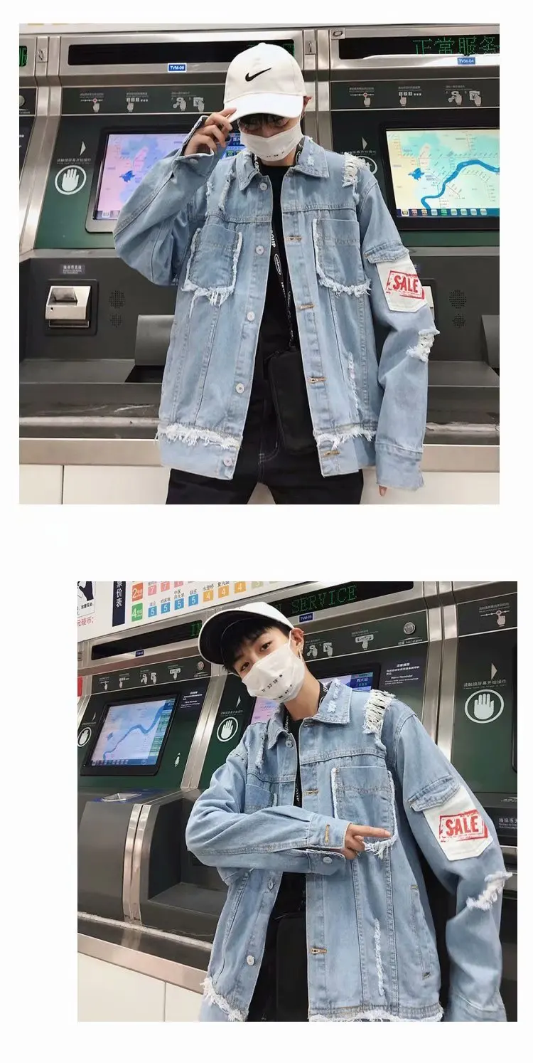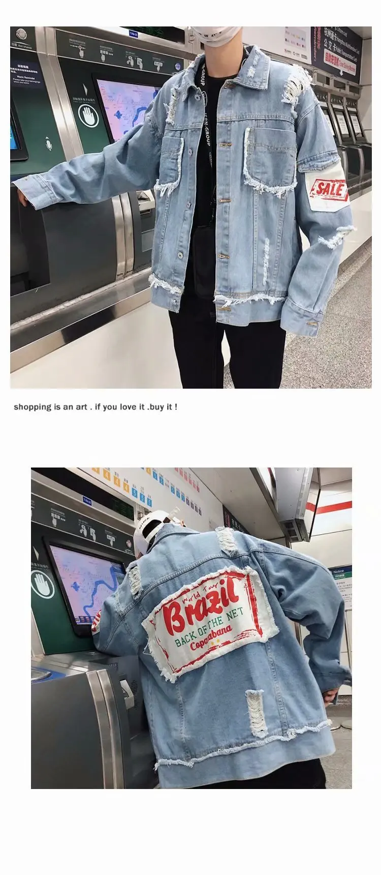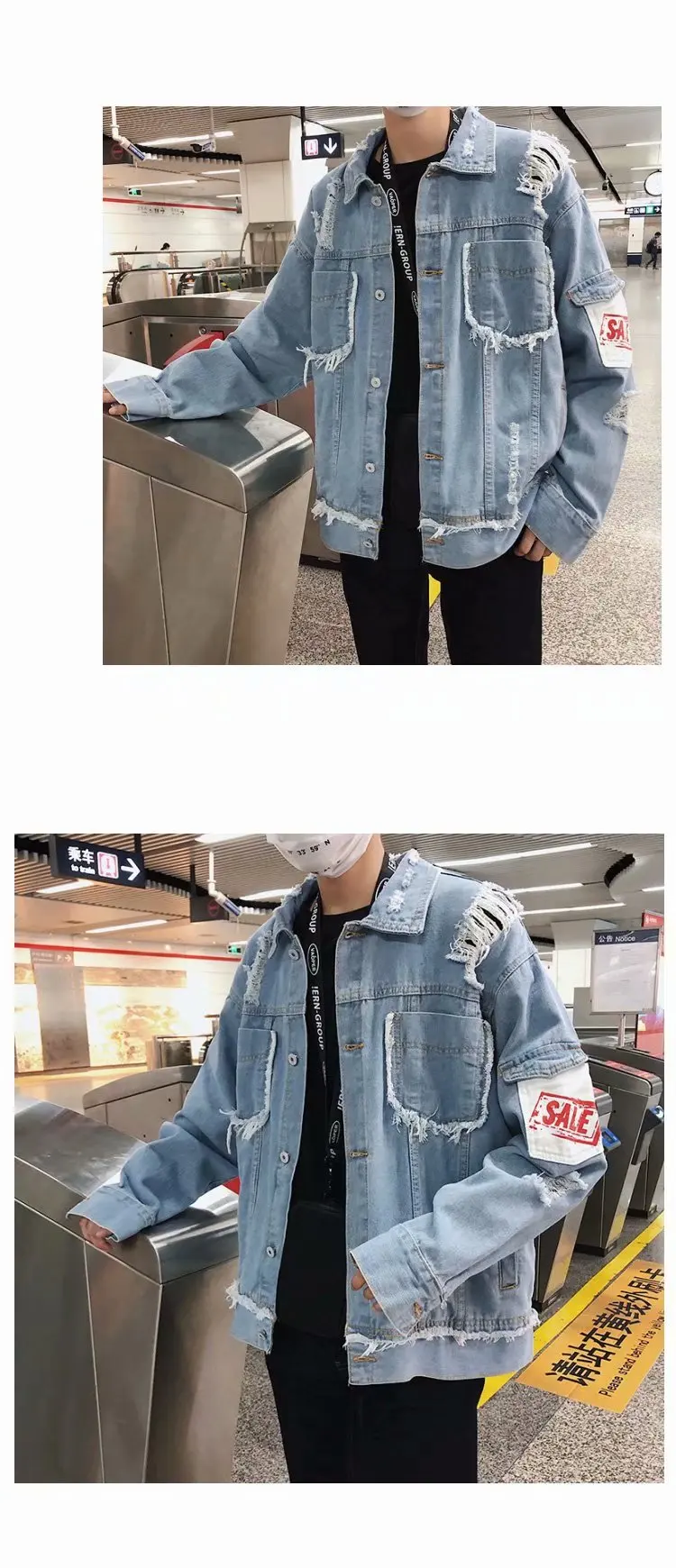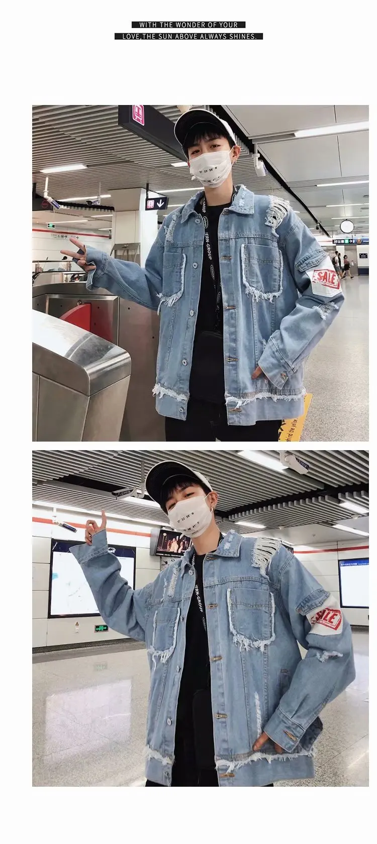 Beggar Ripped Denim Jacket Men Patch Spring And Autumn Harajuku BF Wind Korean Style Trendy Handsome Casual Jacket Men’s Coat