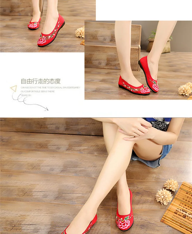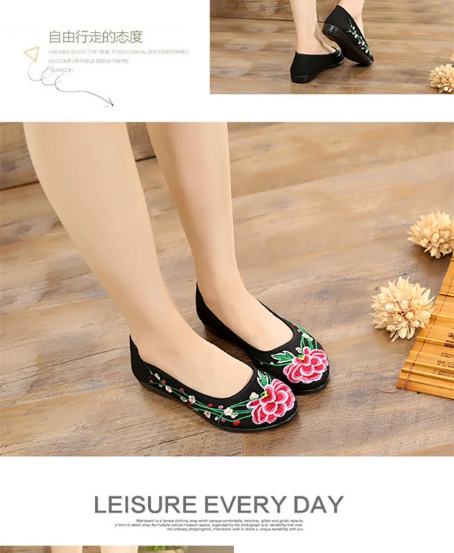 Beijing Cloth Shoe Spring Female Flat Bottom Mother Shoe, Fashionable Dance Shoe Ethical Wind Embroider Shoe