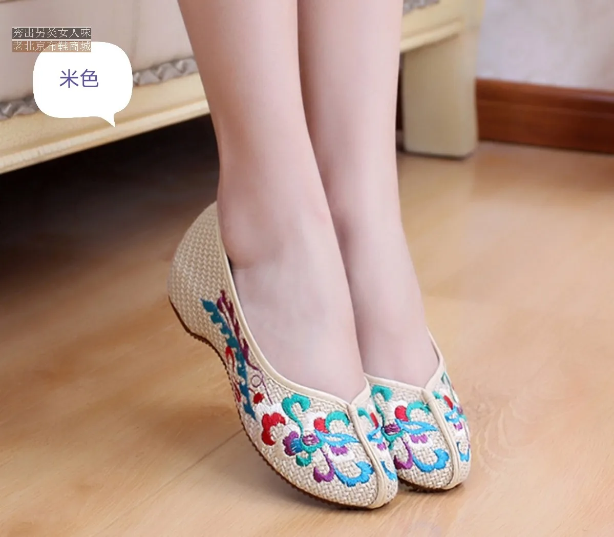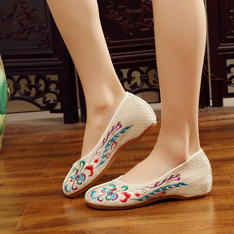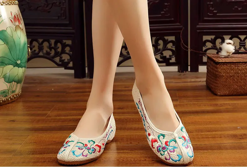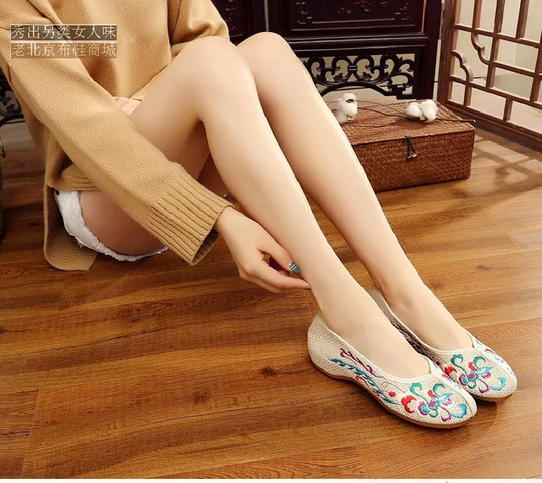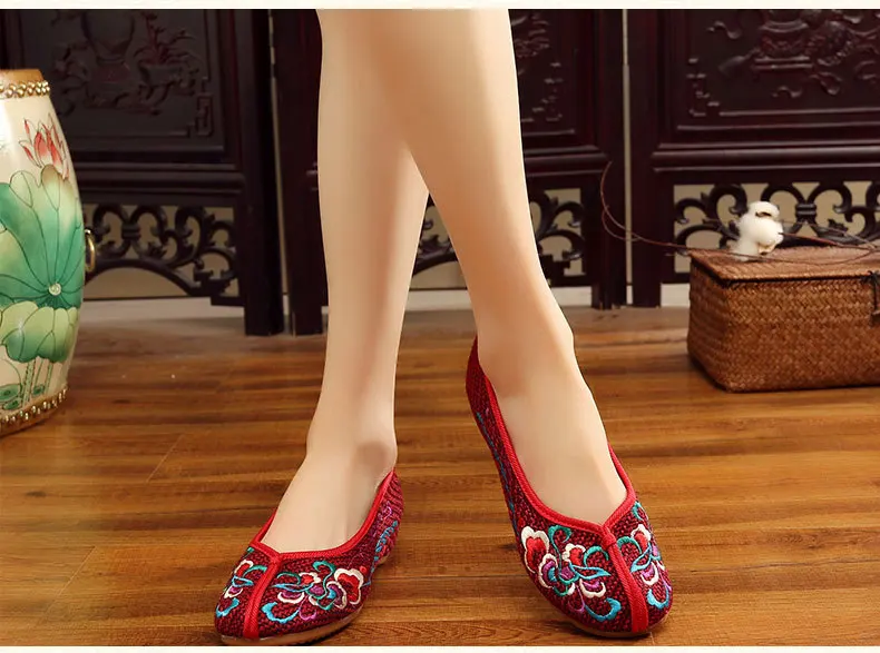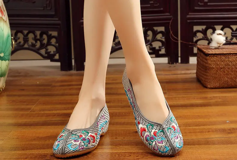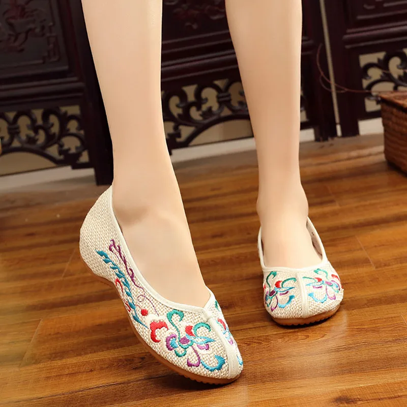 Beijing Cloth Shoes Women Embroidered Soft Soles Square Dance Ethnic Wind Foot Cover Mother Dancing Shoes Comfortable And Light