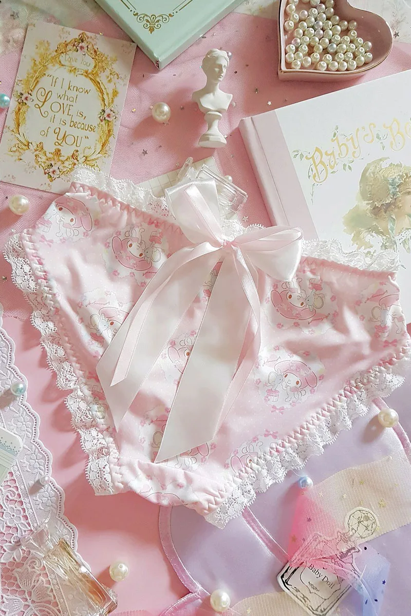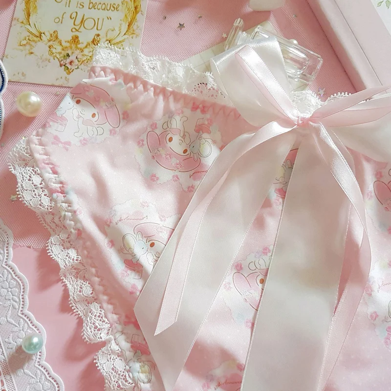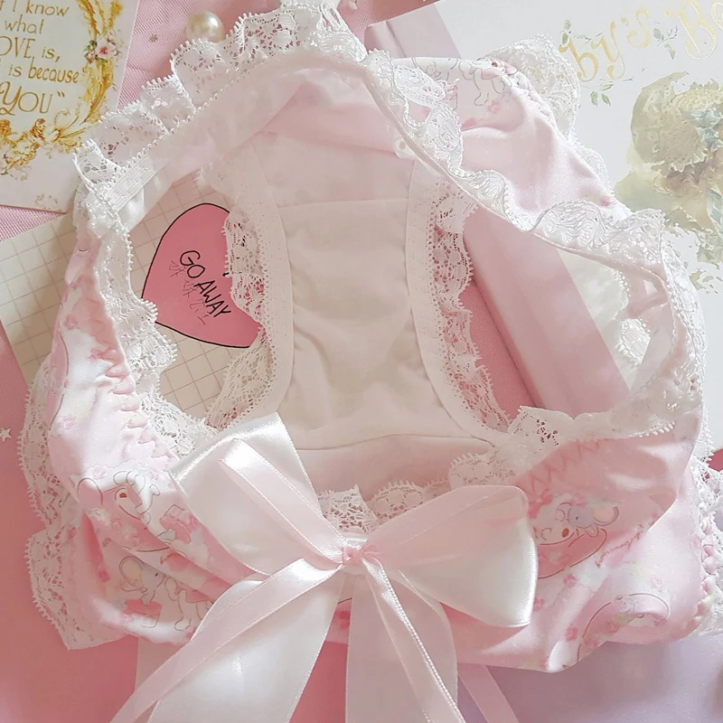 Big Bow Sexy Cute Girls Panties Milk Silk Briefs Women’s Underwear Daily Wear Lace Trim Pantsu Fairy Kei