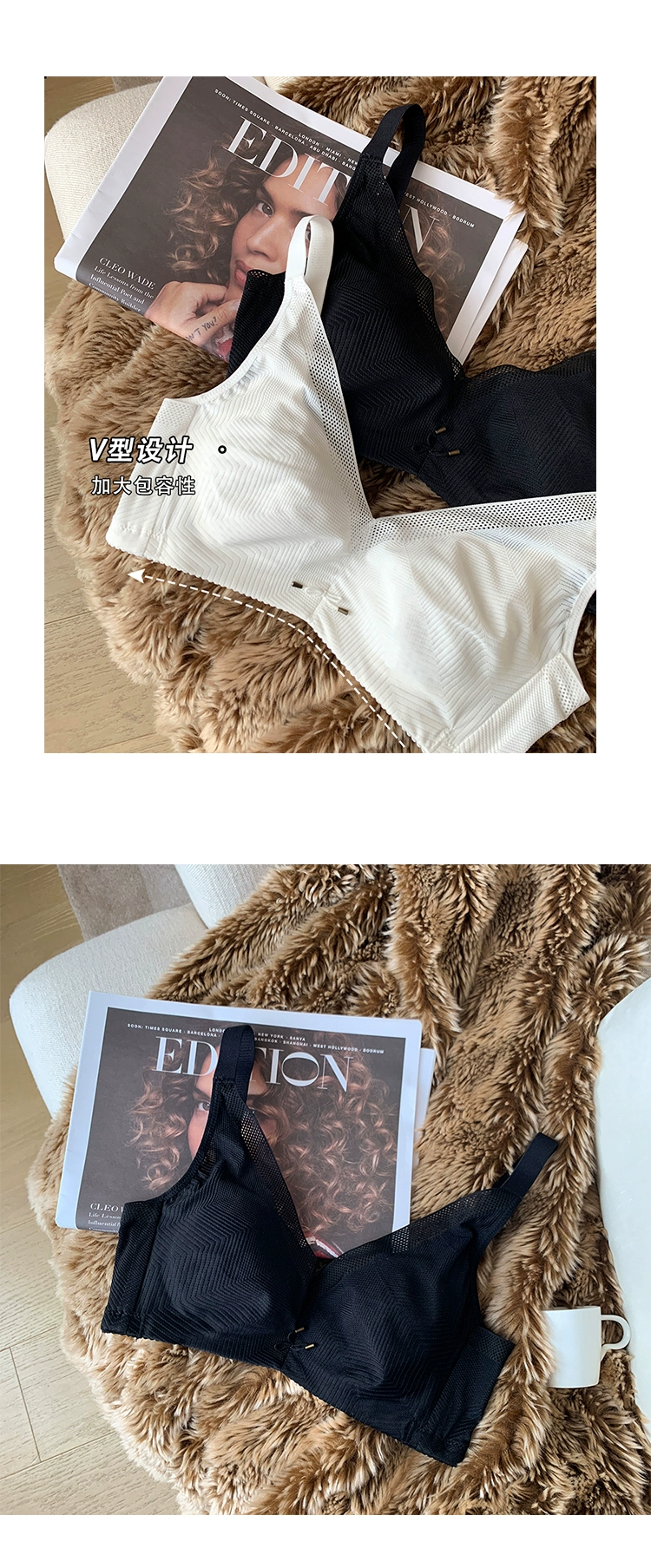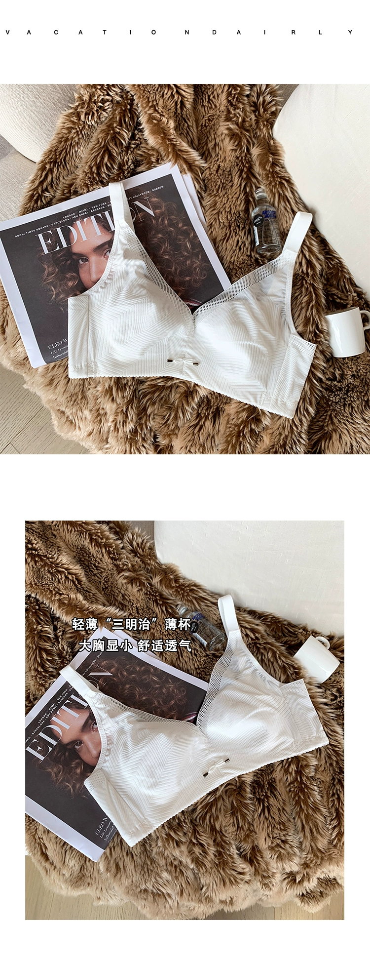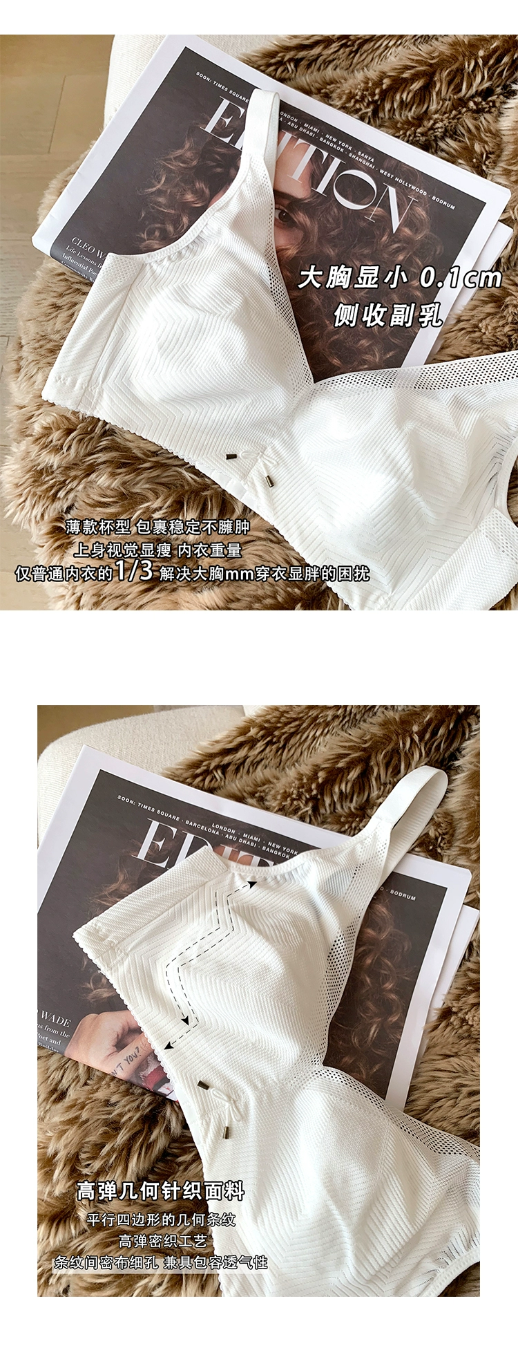 Big breasts show small underwear women’s breathable ultra-thin sports upper support wirefree to adjust the auxiliary breast bra