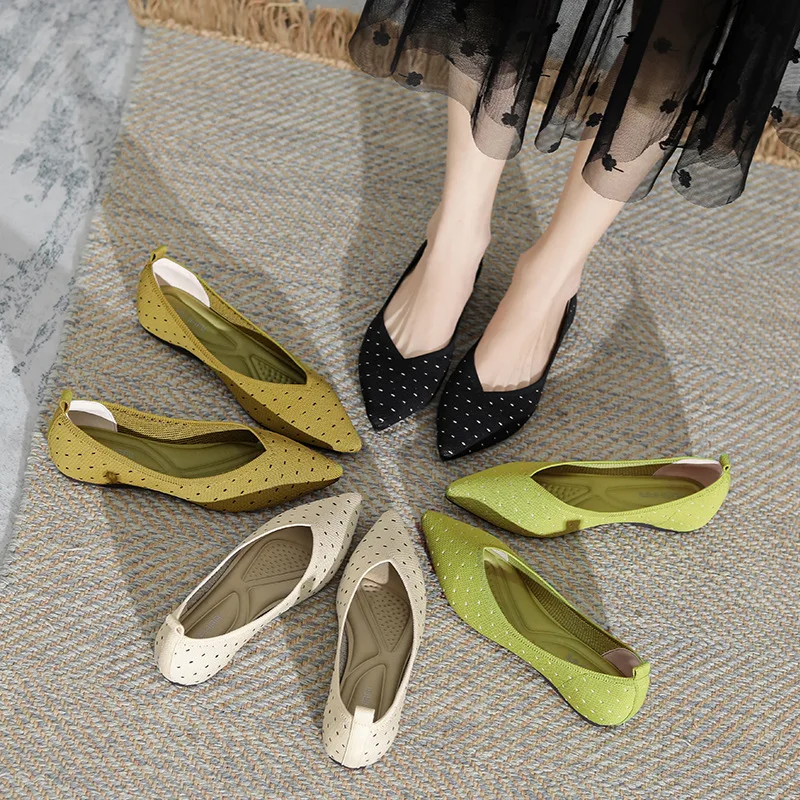 Soft Bottomed Flats Shoes Women Pearl Beaded Shoes Casual Slip On Ballerinas