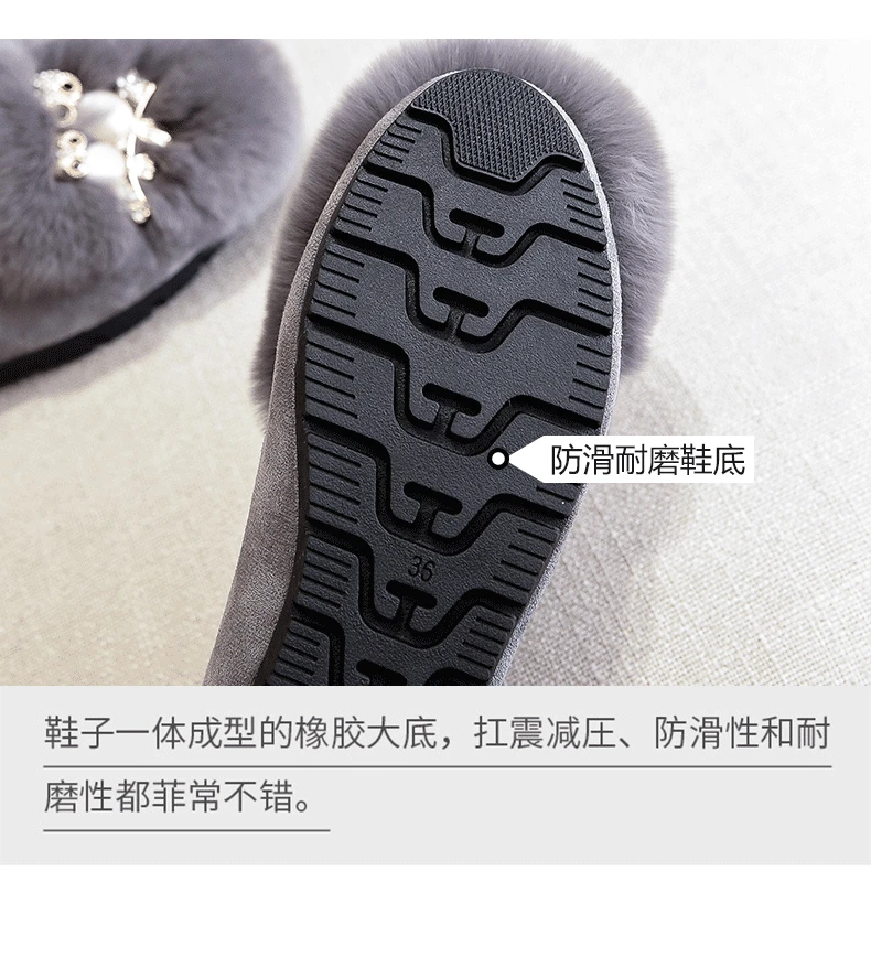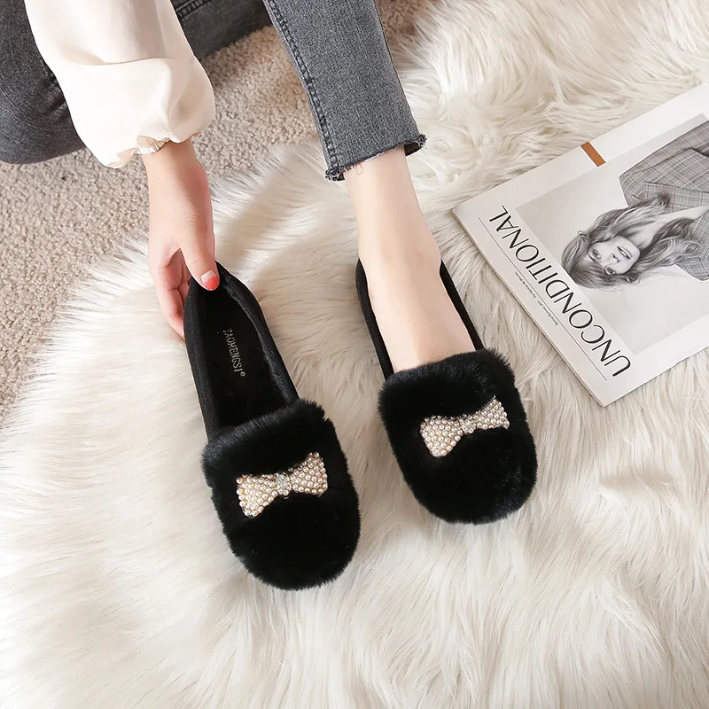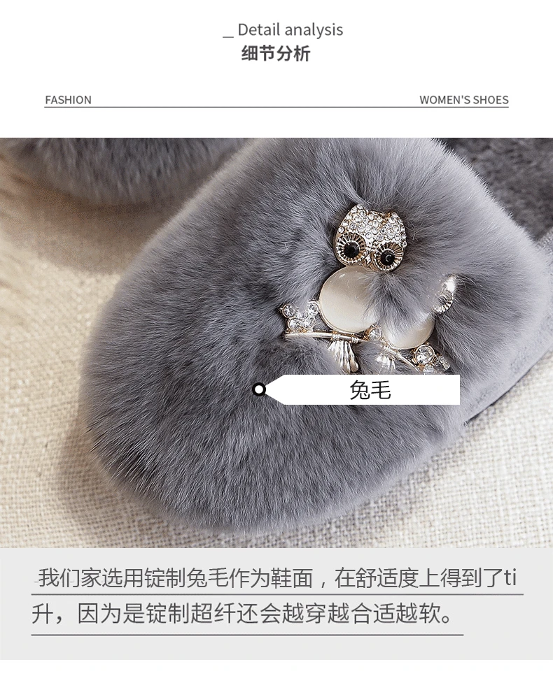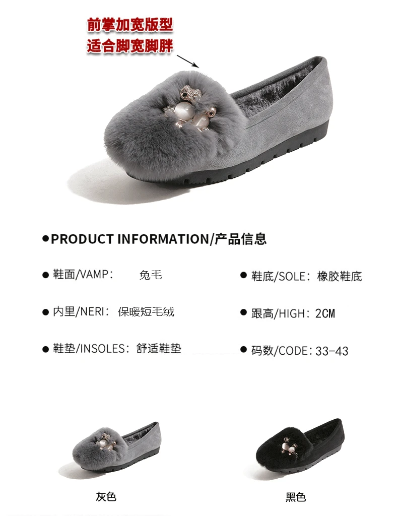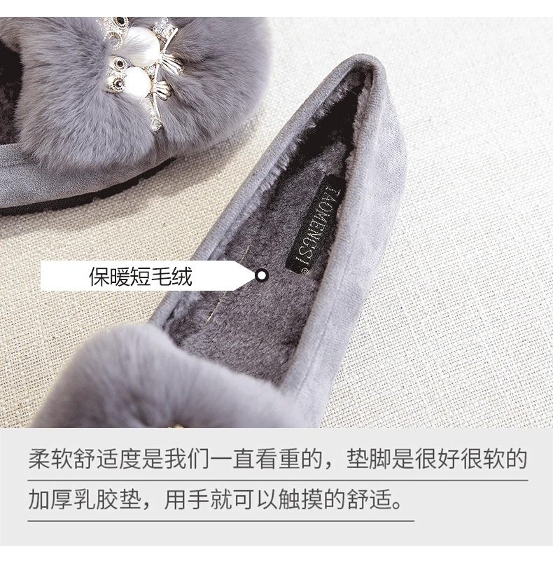 Big Size 34-43 Pom-Pom Rabbit Fur Shoes Women Owl Stone Moccasins Winter Plush Warm Boots Ladies Wool Flats Femme Cotton Loafers