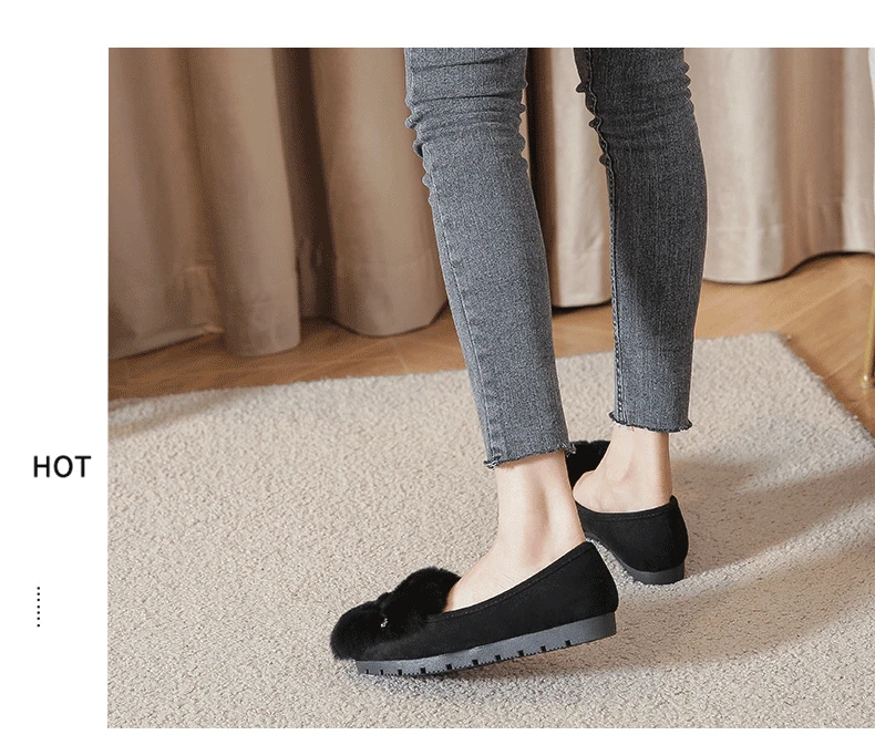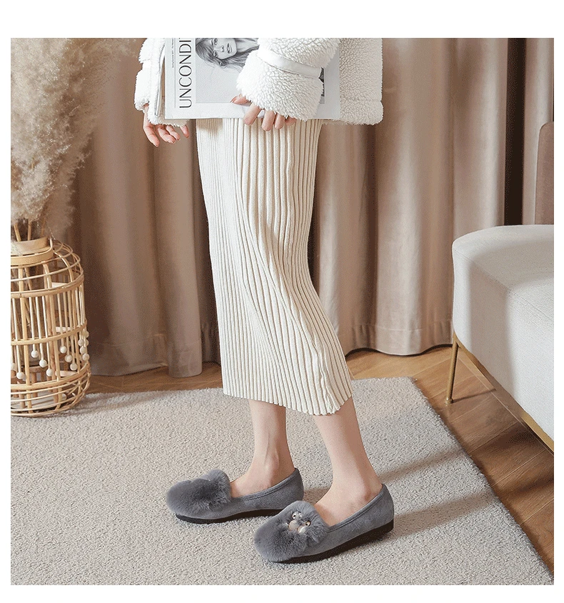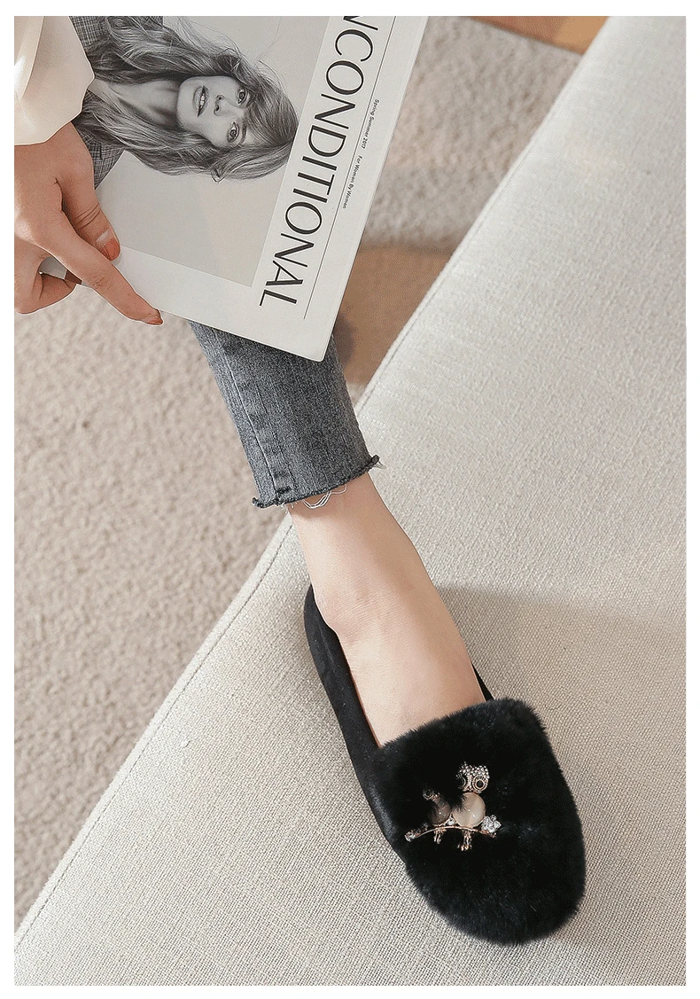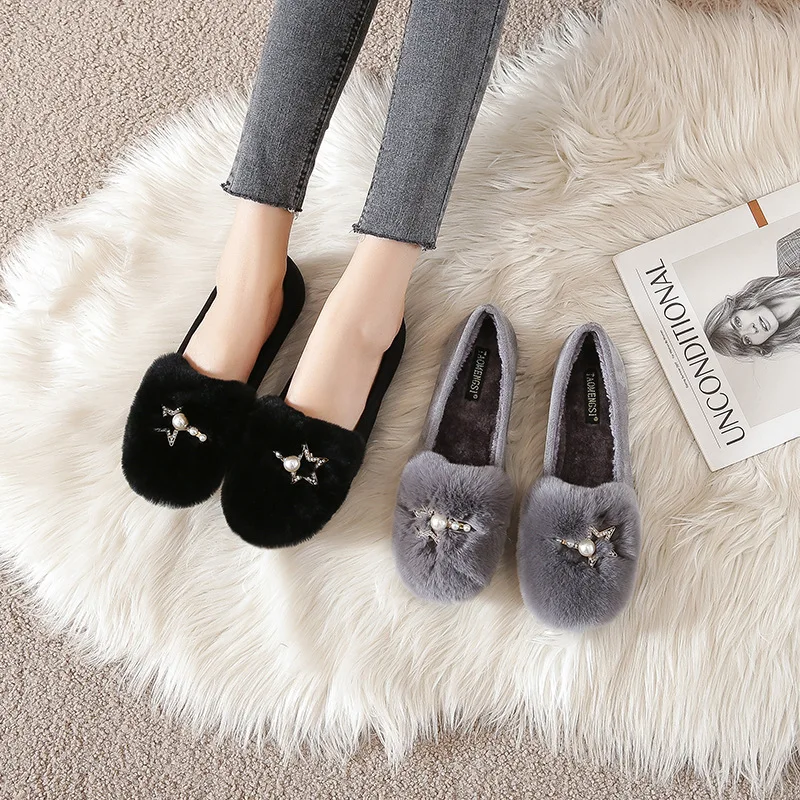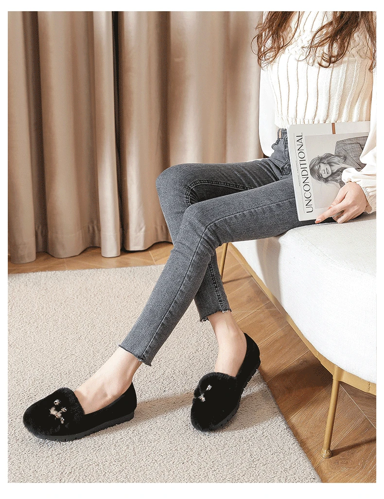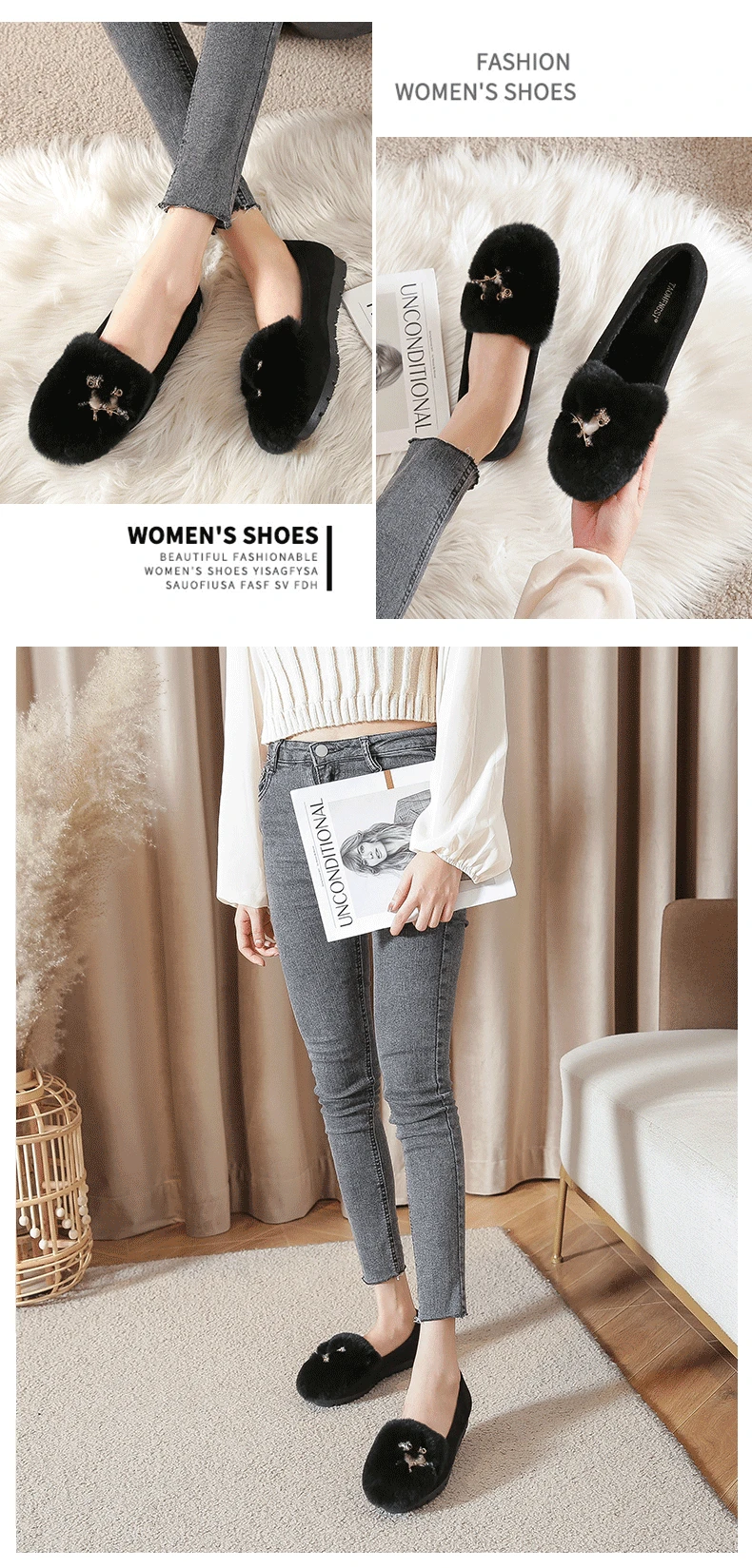 Brand 2022 Rabbit Fur Shoes Woman Comfy Flats Loafers