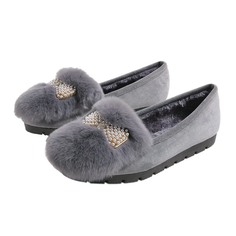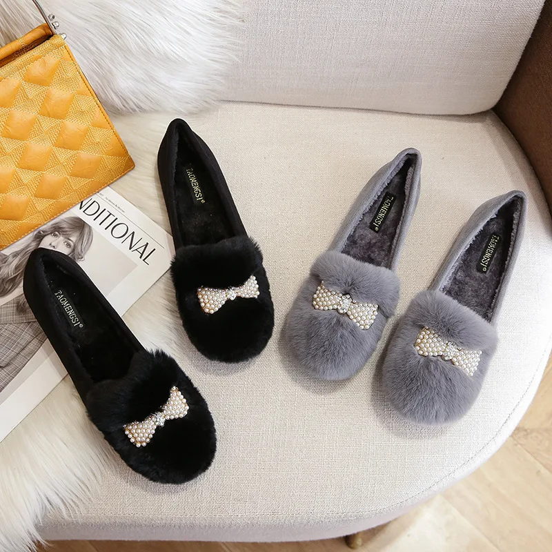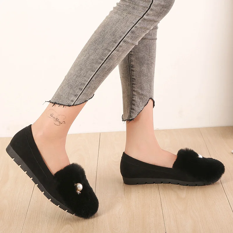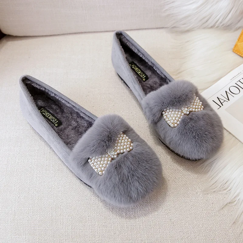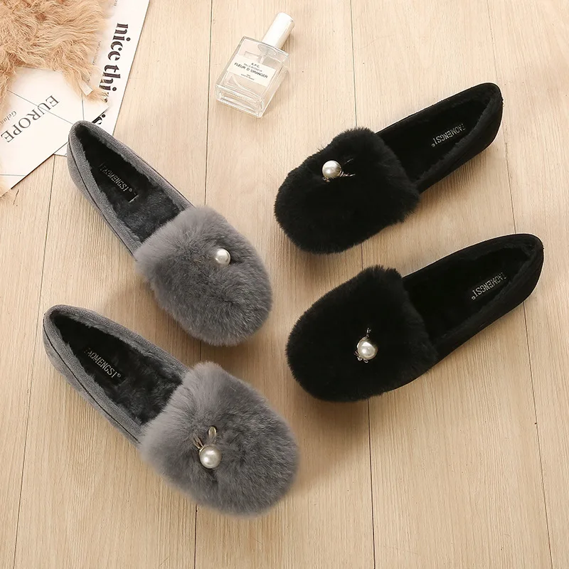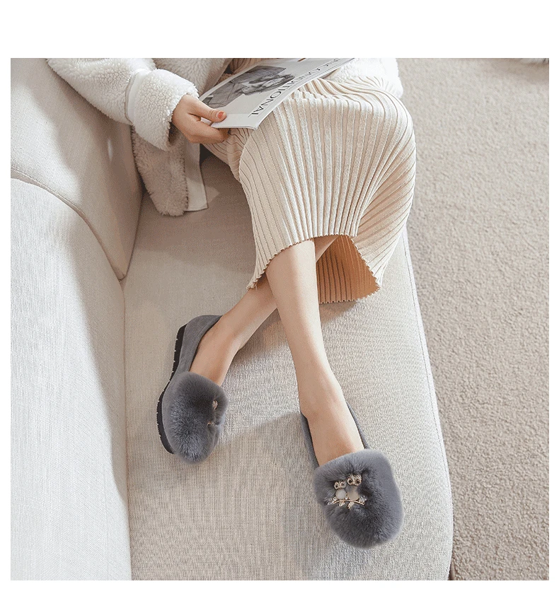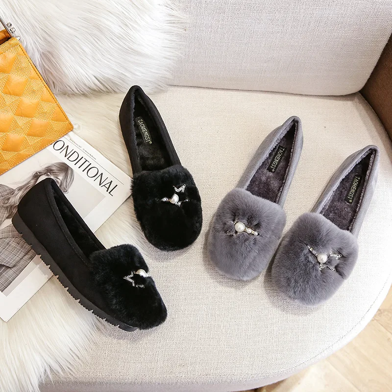 Brand 2022 Rabbit Fur Shoes Woman Comfy Flats Loafers