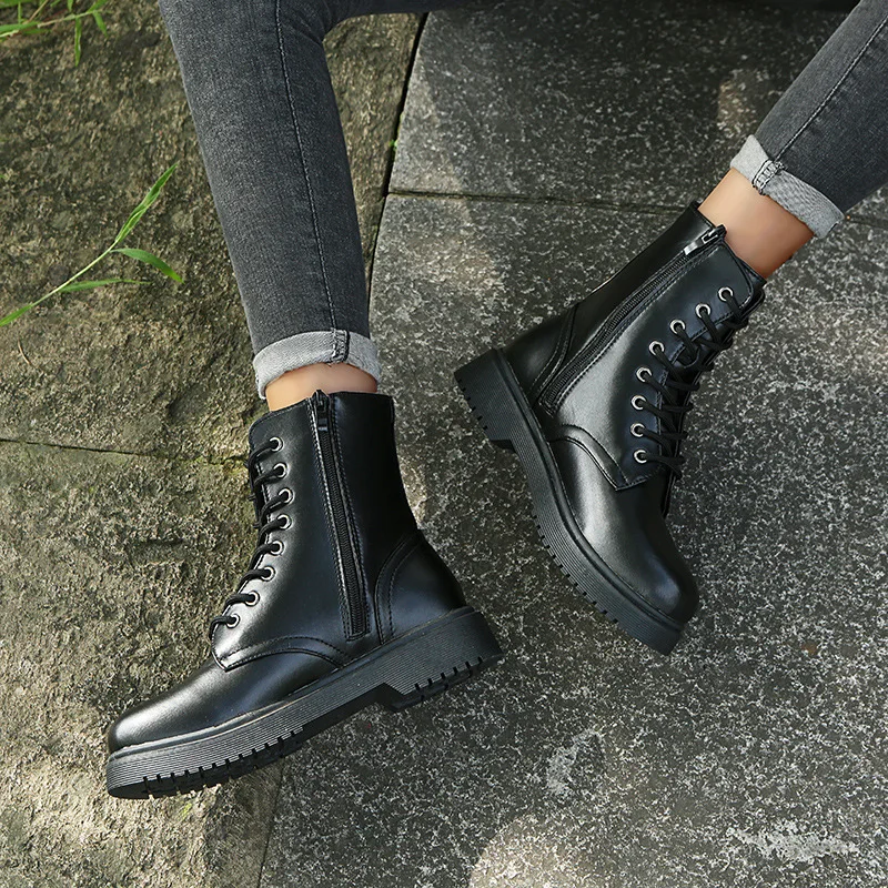 Big Size 35-43 Chunky Heel Platform Motorcycle Boots Women Round Toe Creeper Boots Designer Women Ankle Boots Botas De Mujer