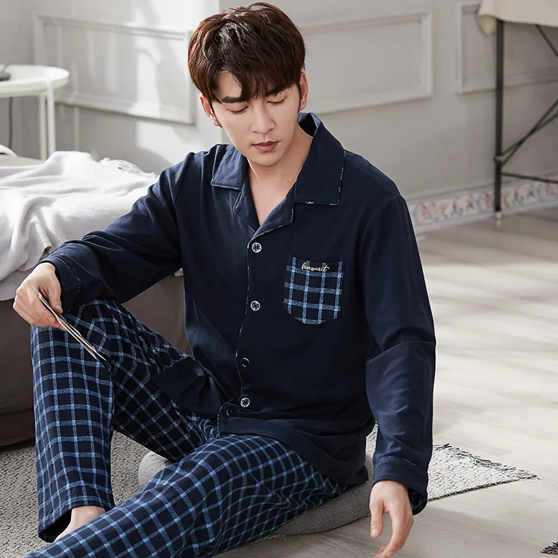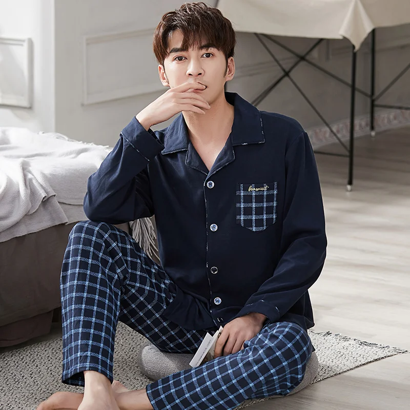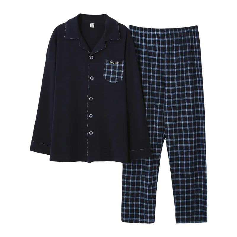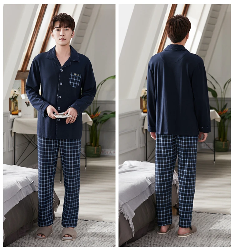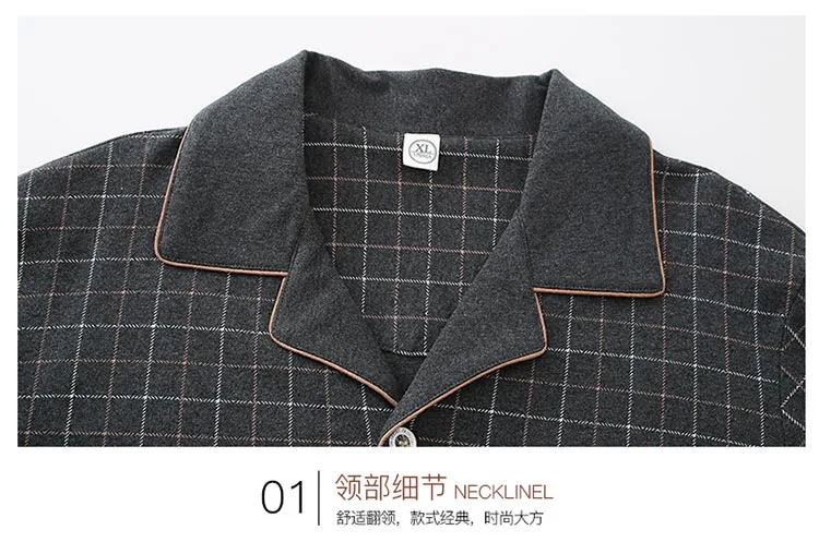Big Size M-4XL Spring and Autumn Men Pajamas Set 100% Cotton Long Sleeve Sleepwear Male Turn-down Collar Plaid Pijama