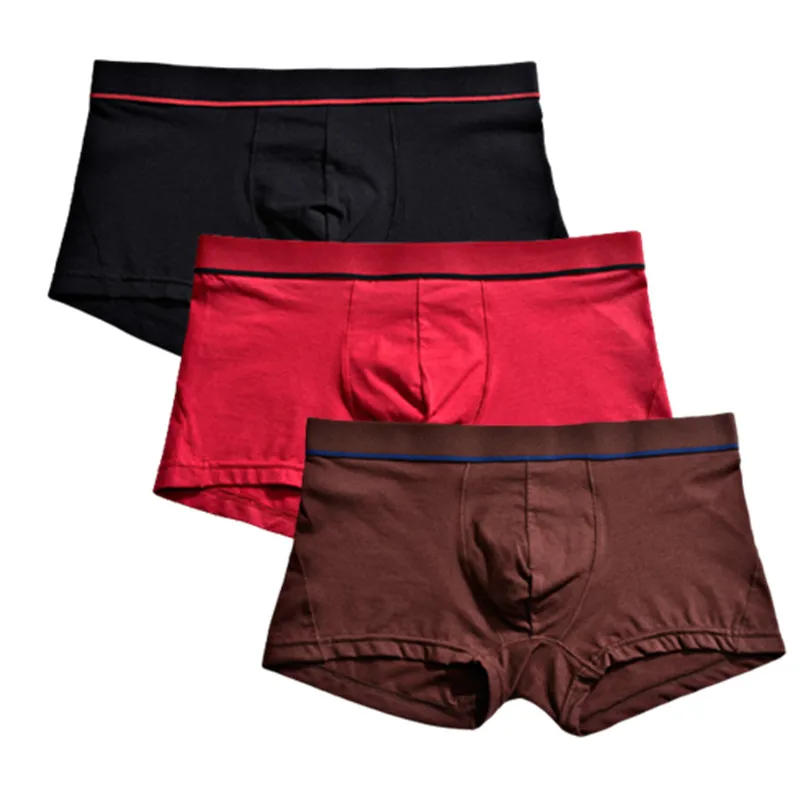 Big Size Underwear Of Men Boxers Briefs Boy Undies Knickers Sexy Homme Panties U Convex Underpants Shorts 3 Pcs Solid Colors