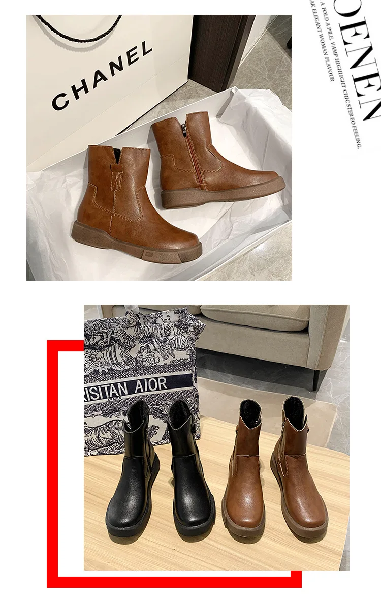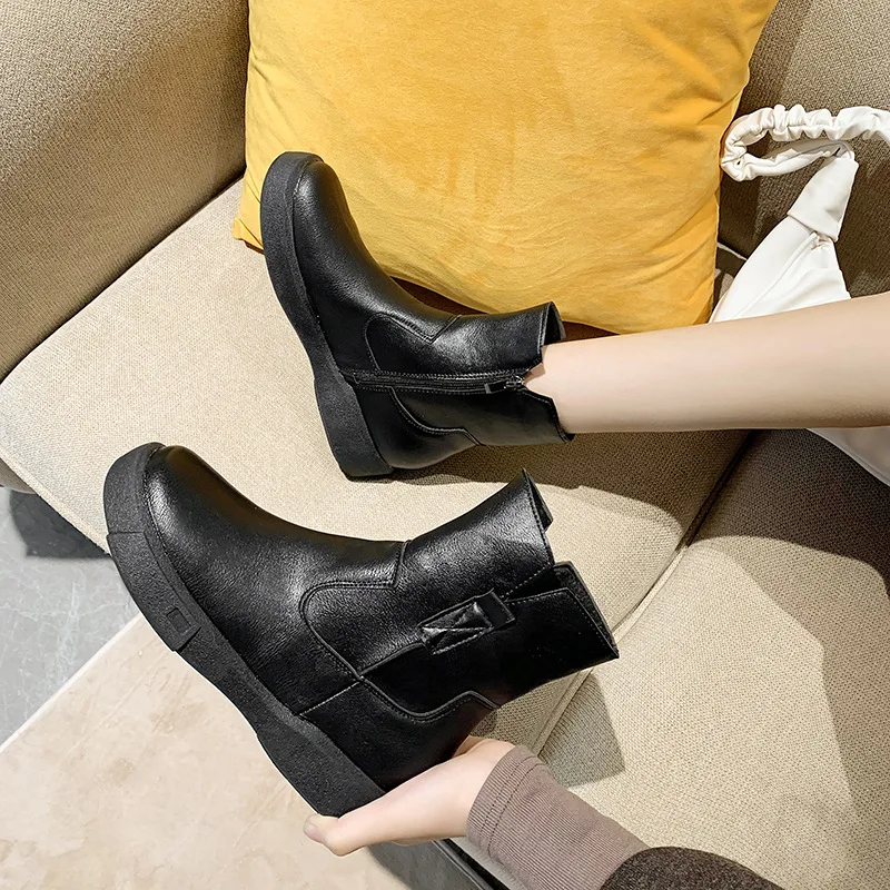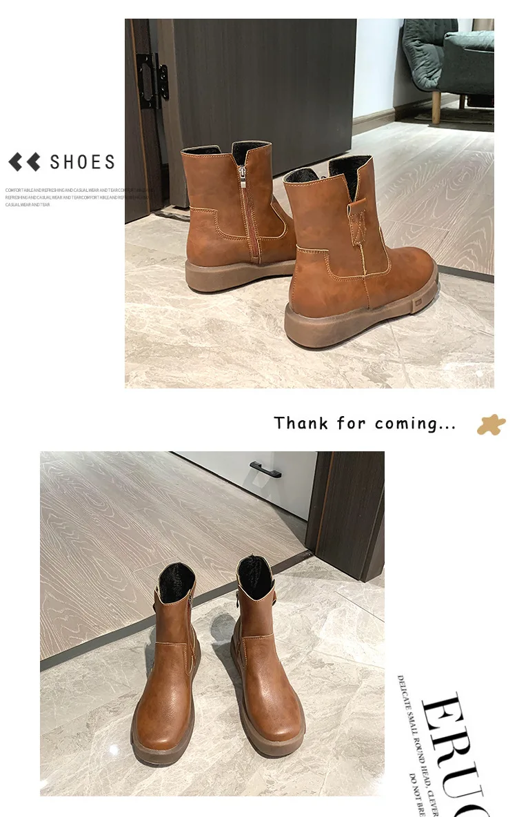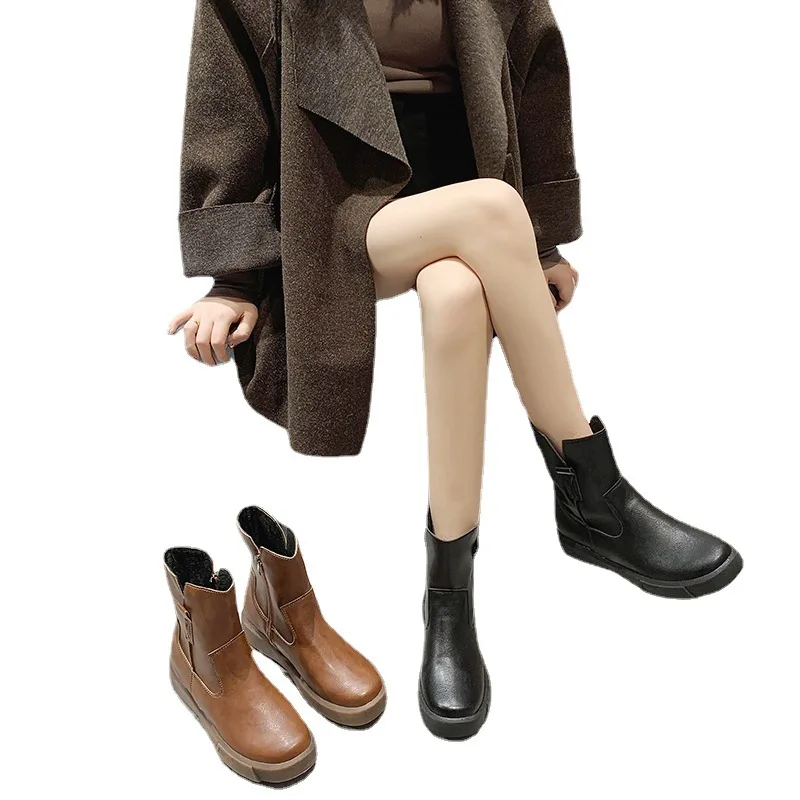 Big Size35-42 Chunky Motorcycle Boots for Women Fashion Round Toe Lace-up Combat Boots Ladies Shoes Combat Boots for Women