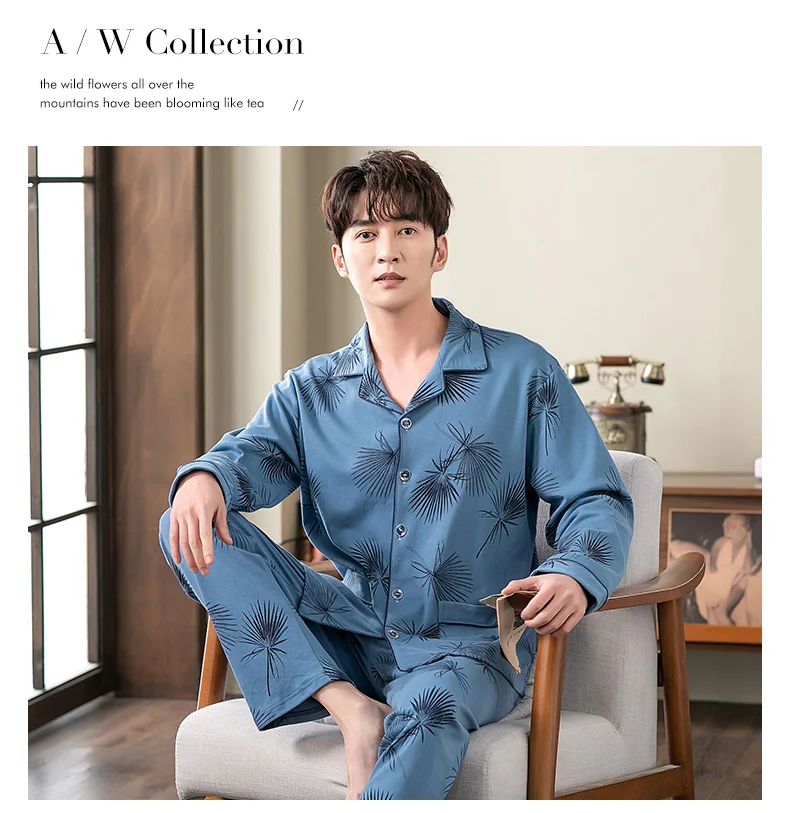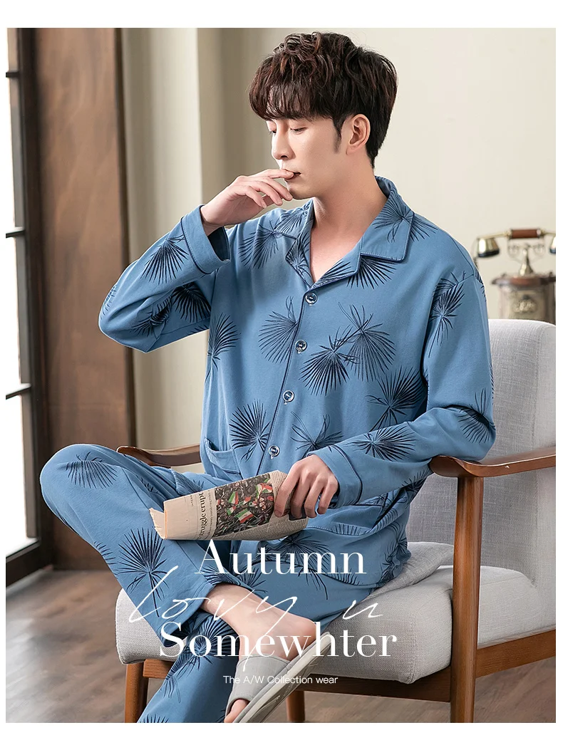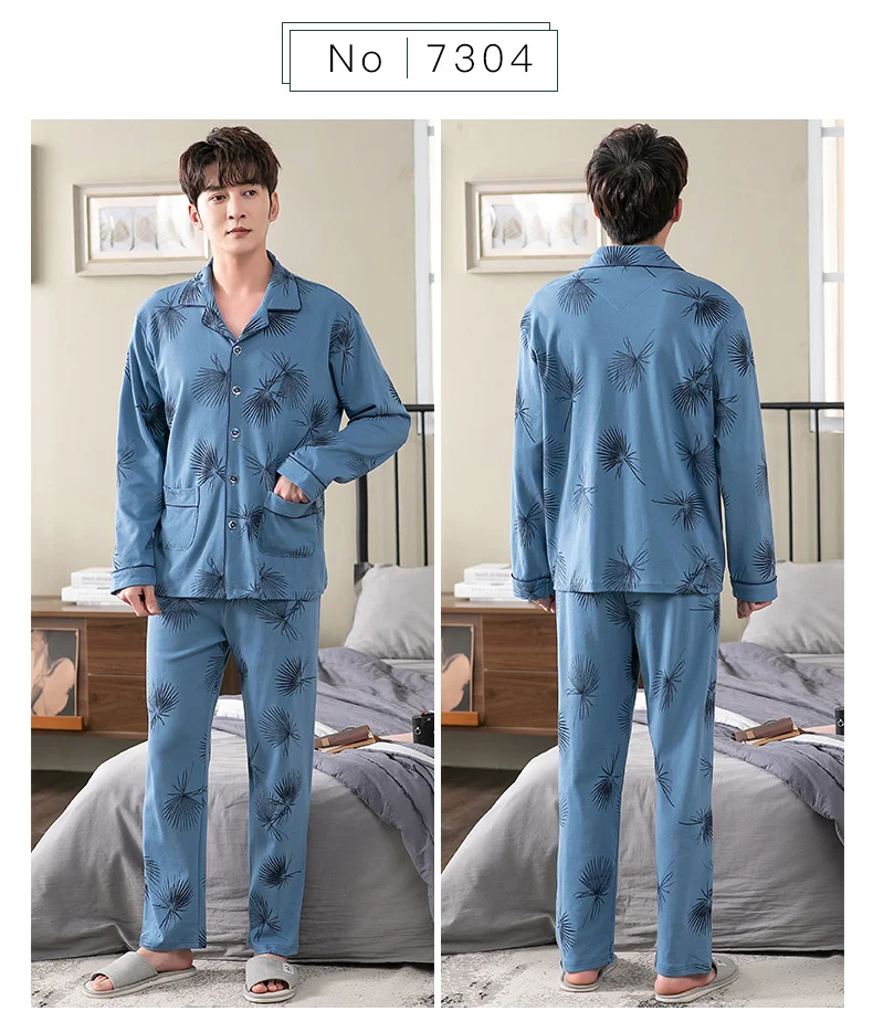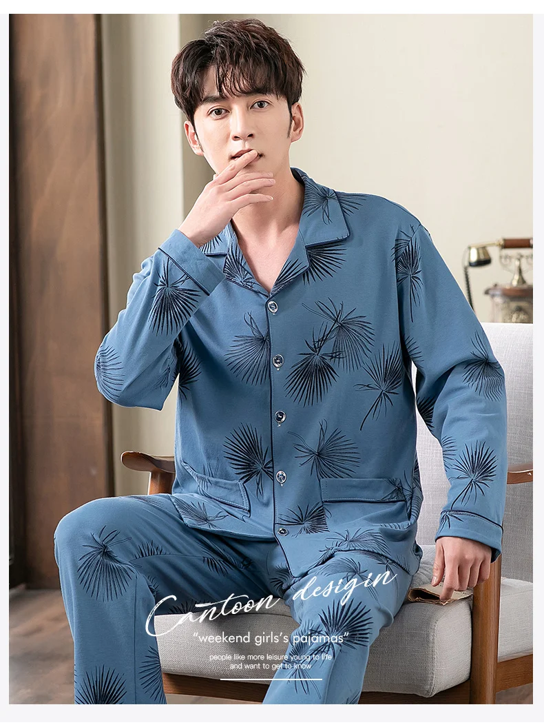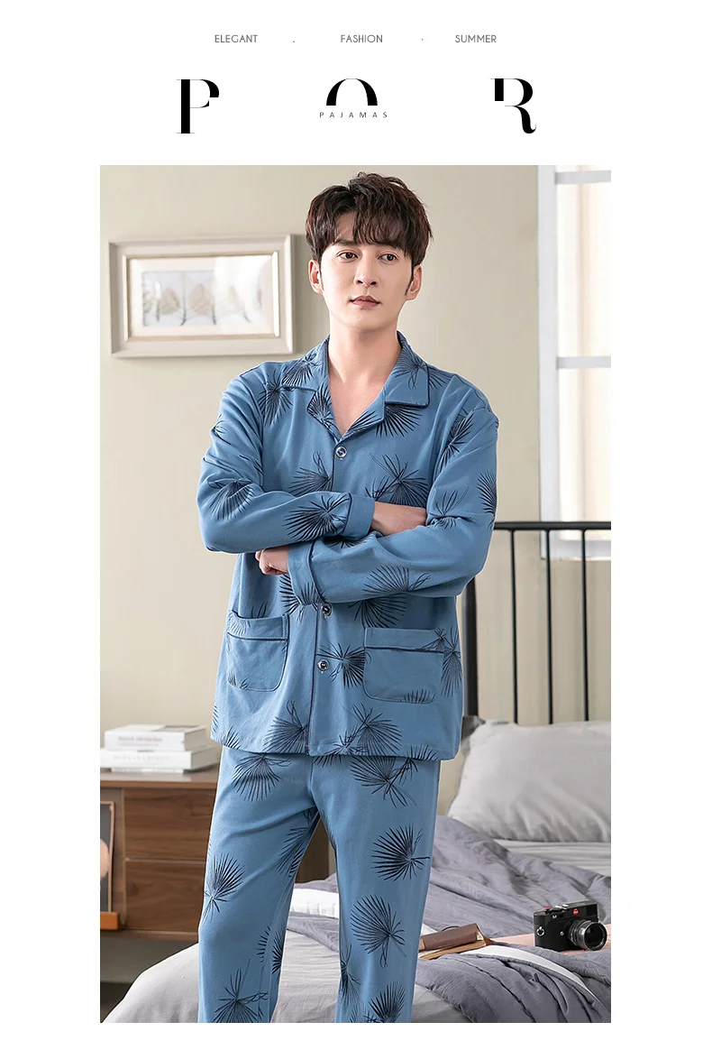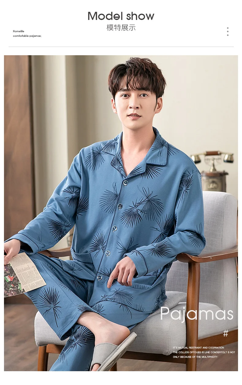 Big Yards Men’s Pajama Sets Spring Autumn Man Pajamas Set Print Sleepwear Full Cotton Pajamas For Men Tops Pants Leisure Outwear
