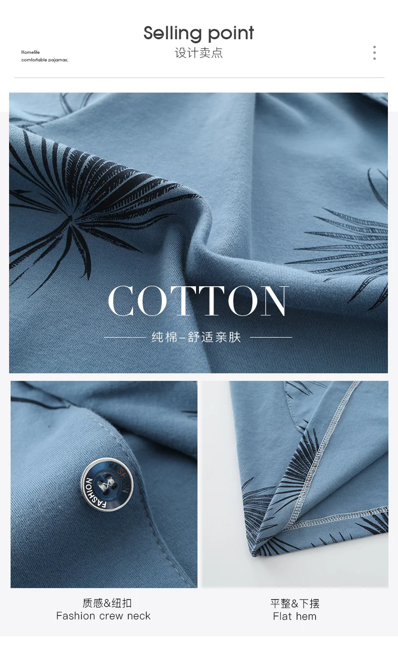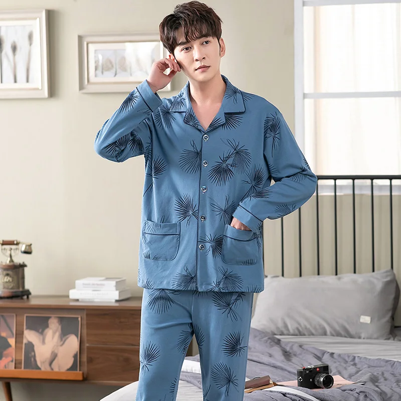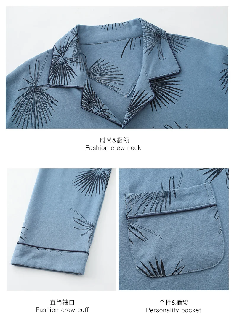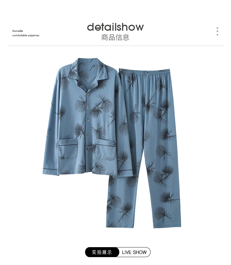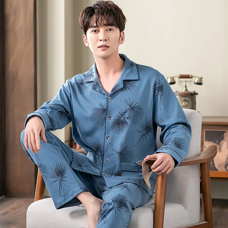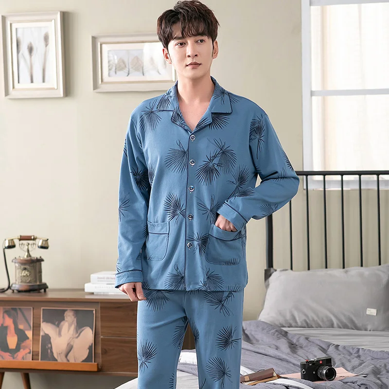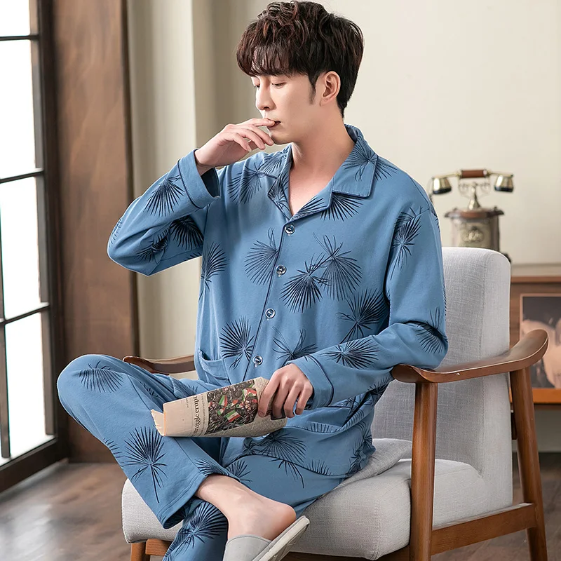 Big Yards Men’s Pajama Sets Spring Autumn Man Pajamas Set Print Sleepwear Full Cotton Pajamas For Men Tops Pants Leisure Outwear