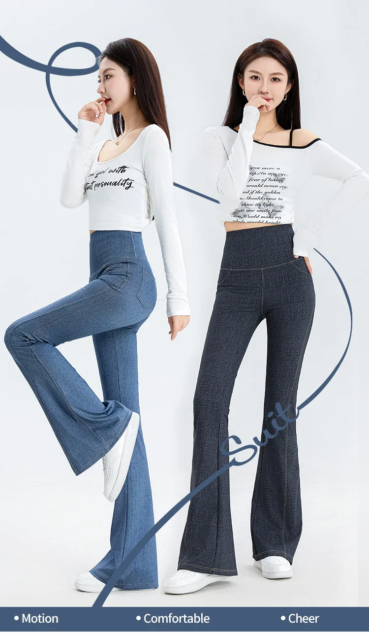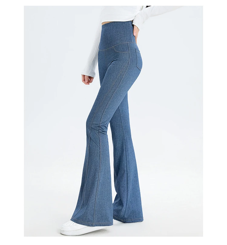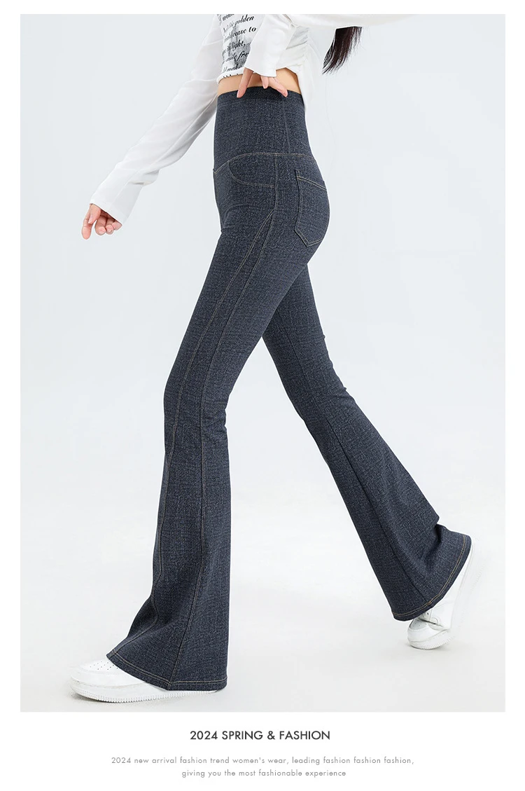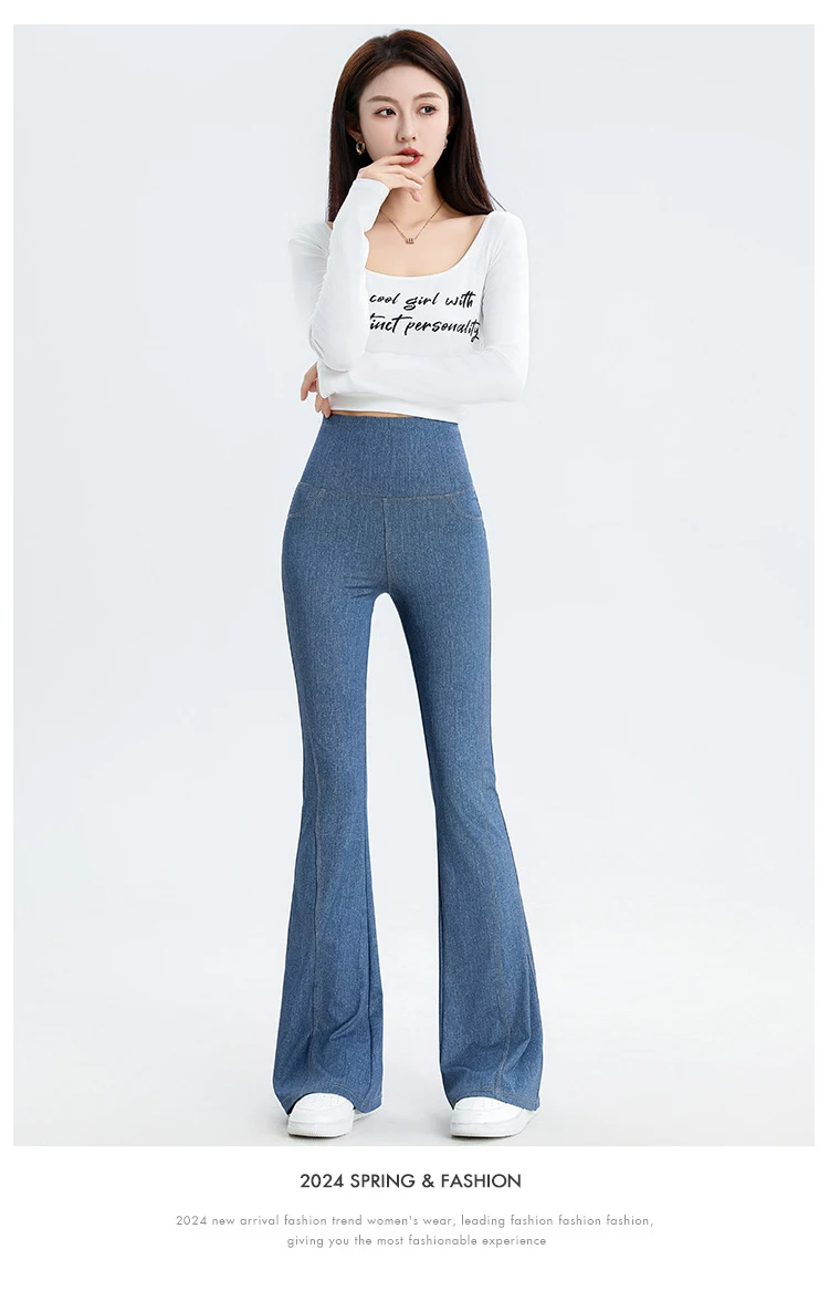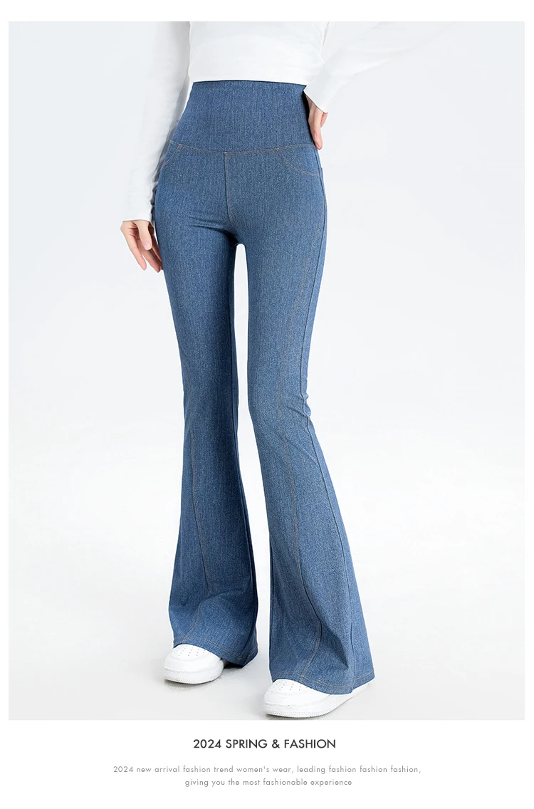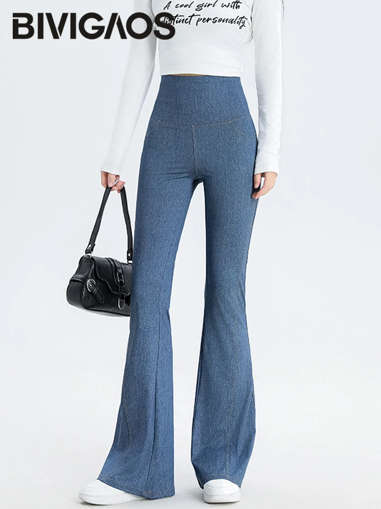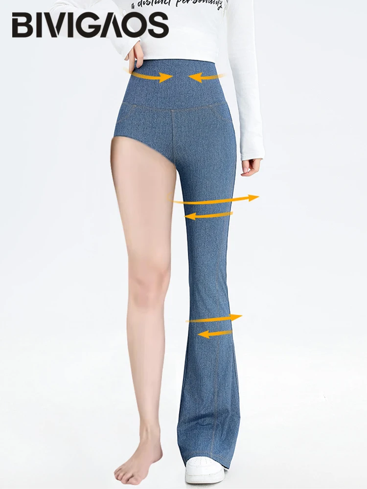BIVIGAOS 2024 Spring New Jeans Flared Leggings Pants Women High Waist Pocket Stretch Fitness Leggings Slim Tight Sexy Jeggings