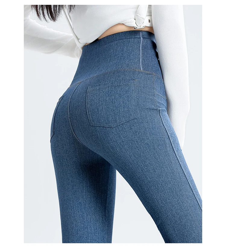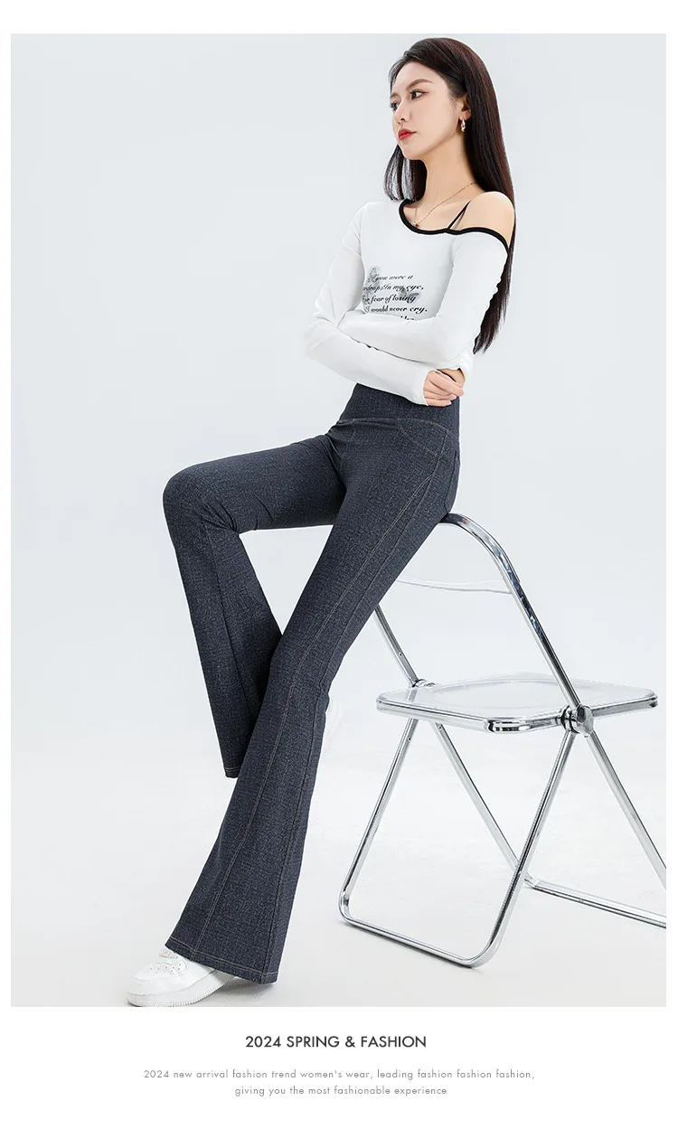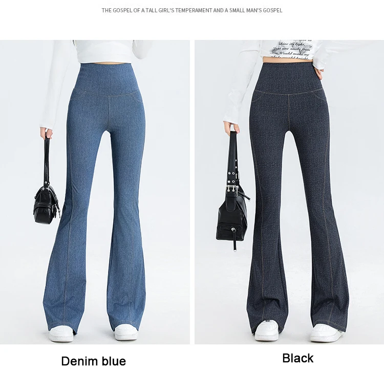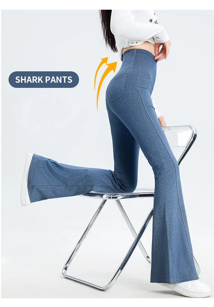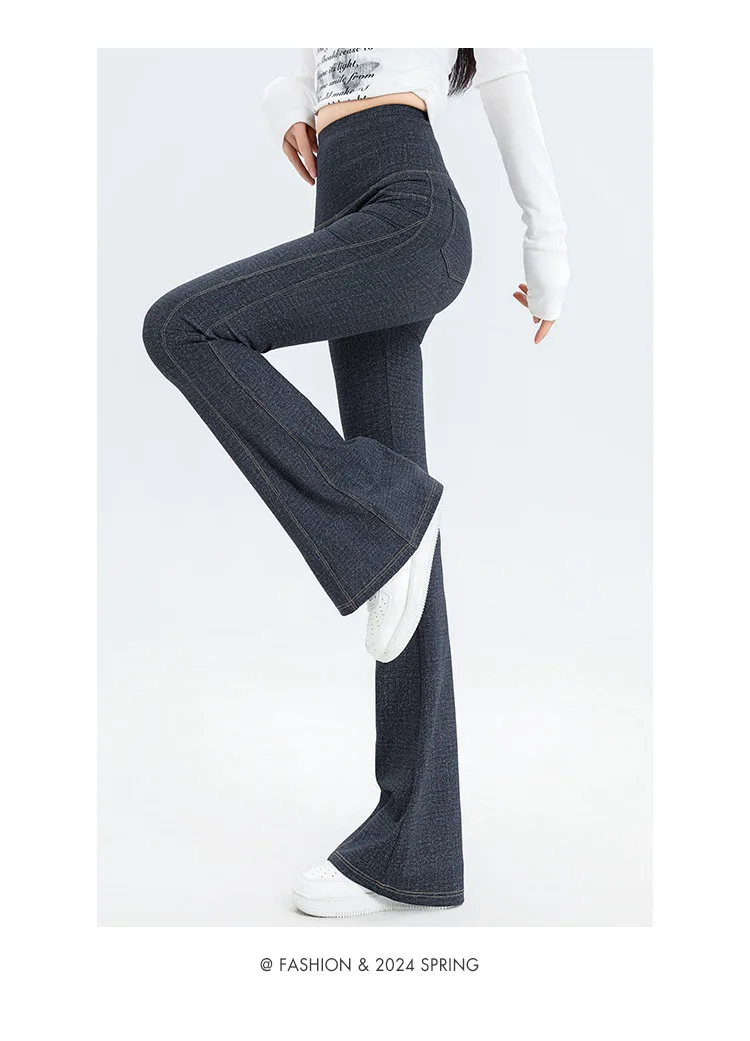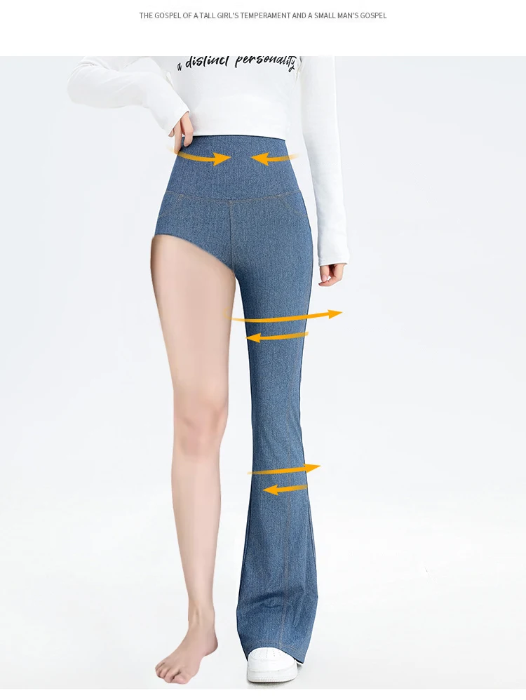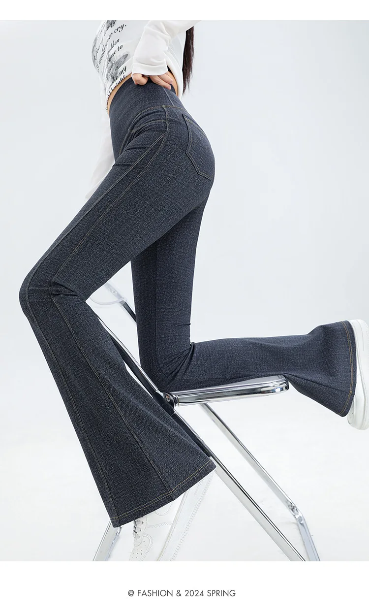 BIVIGAOS 2024 Spring New Jeans Flared Leggings Pants Women High Waist Pocket Stretch Fitness Leggings Slim Tight Sexy Jeggings