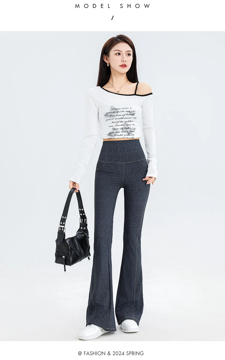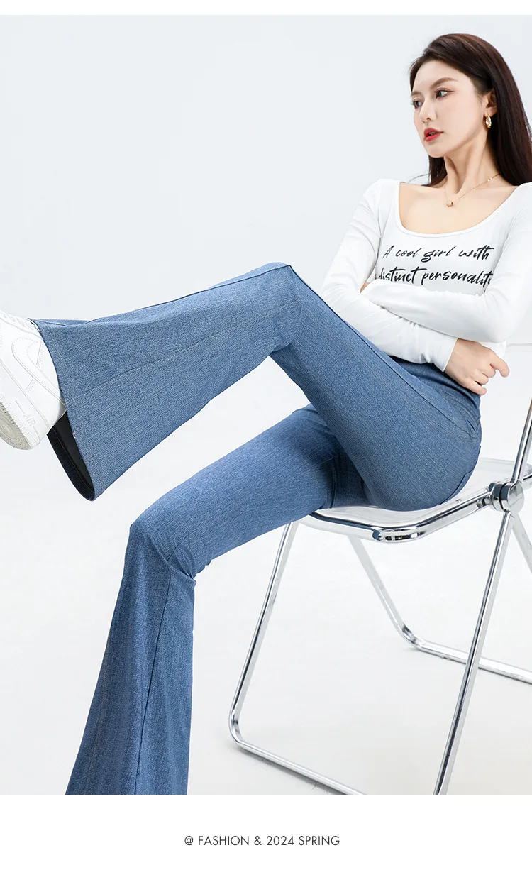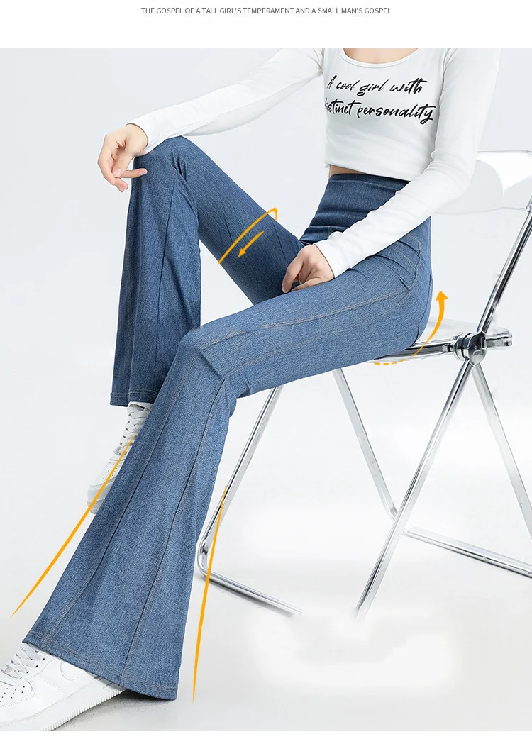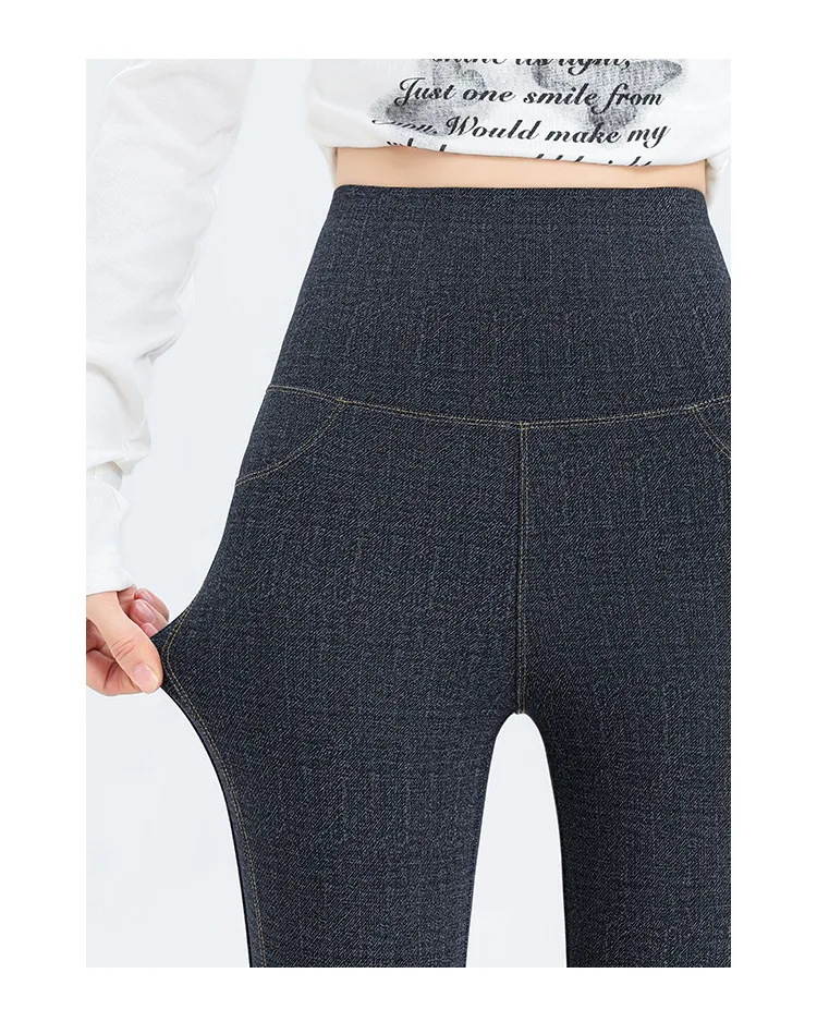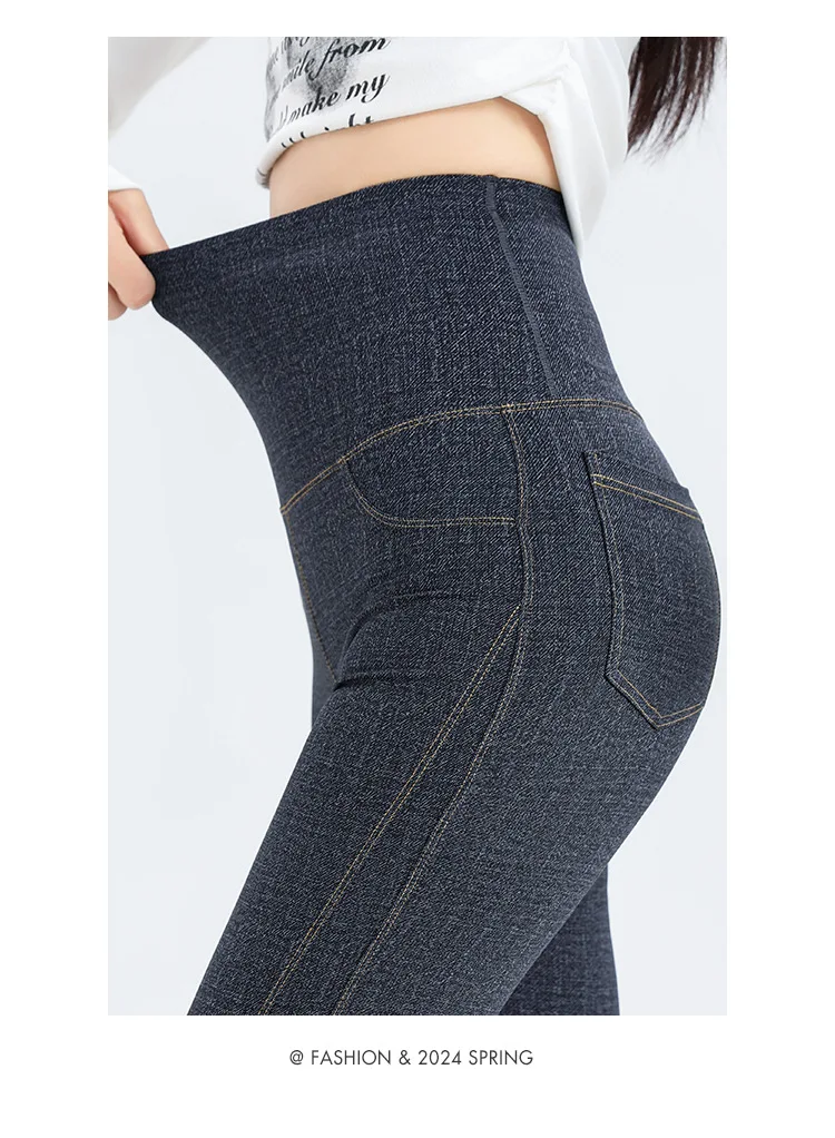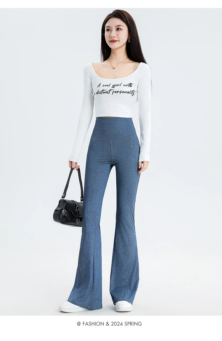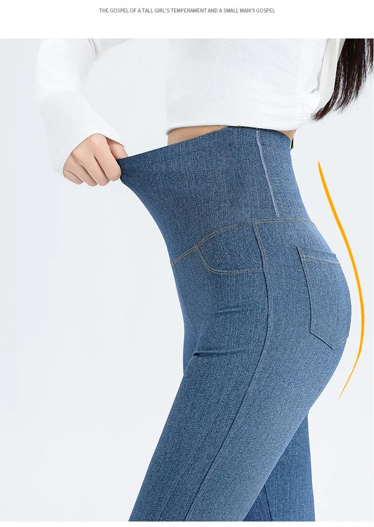 BIVIGAOS 2024 Spring New Jeans Flared Leggings Pants Women High Waist Pocket Stretch Fitness Leggings Slim Tight Sexy Jeggings