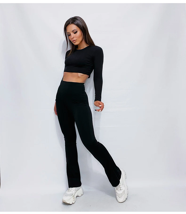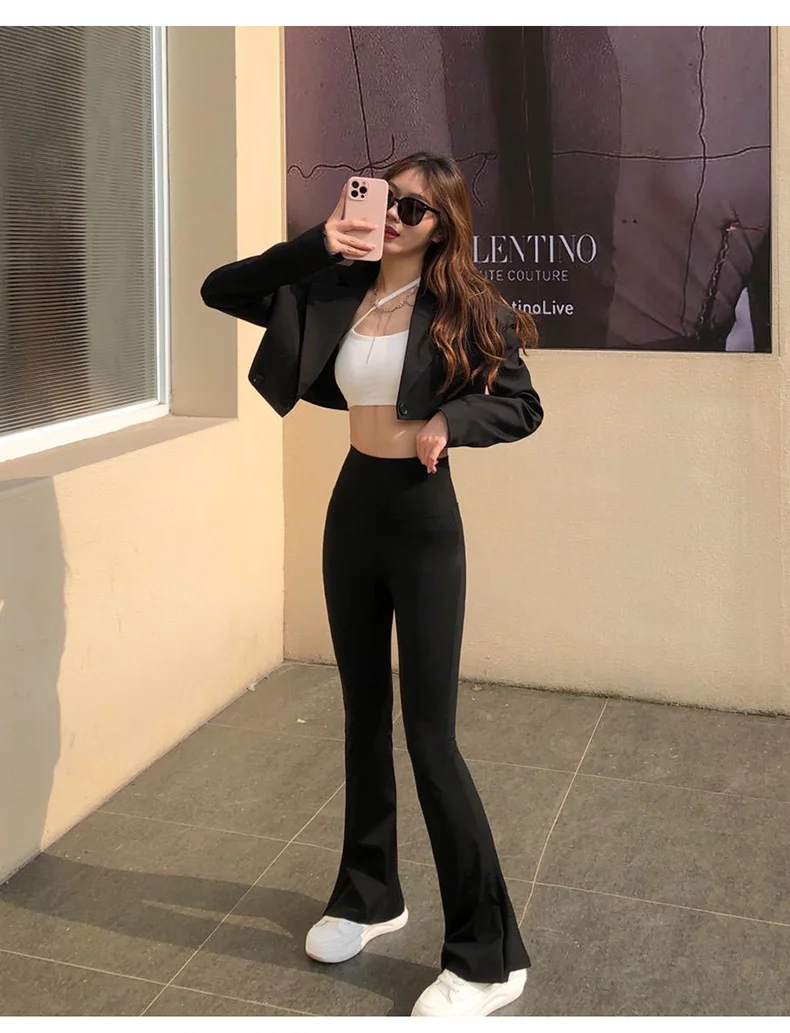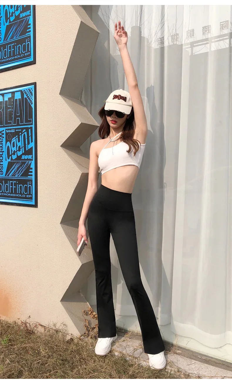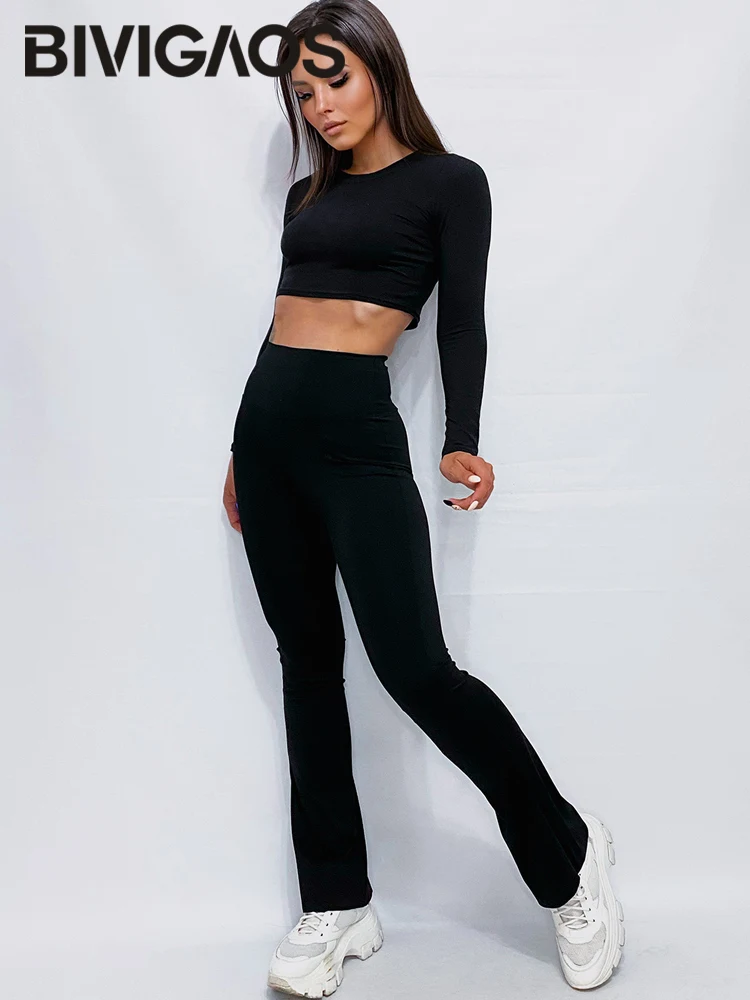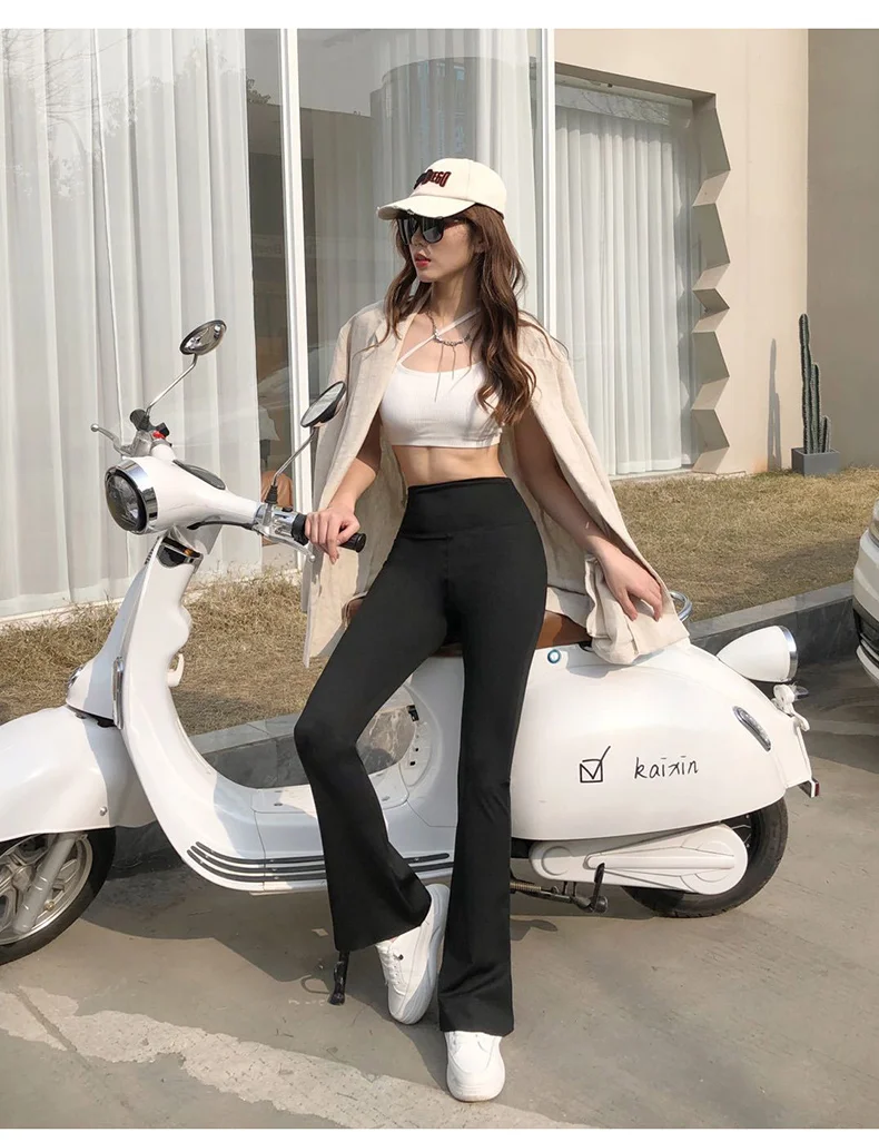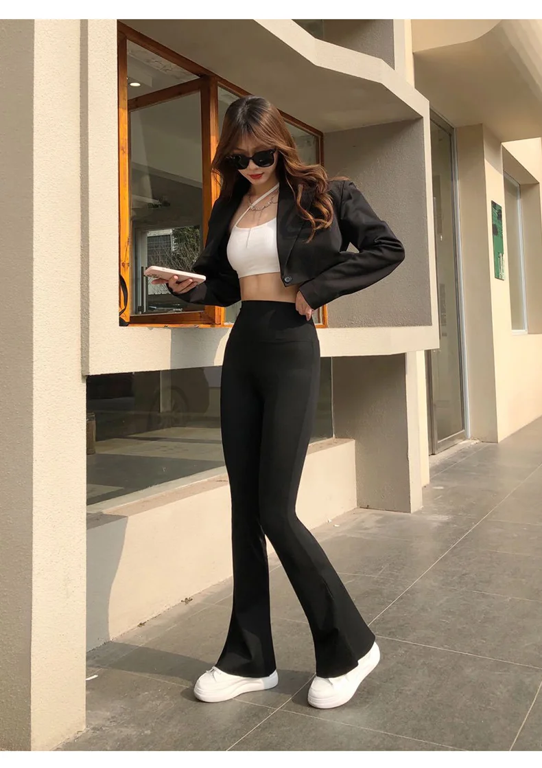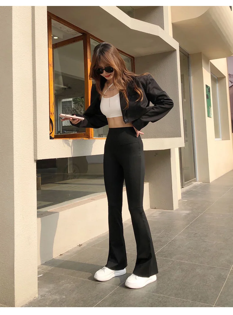 BIVIGAOS Women Shark Flared Pants Black Elastic Slim High Waist Sexy Horseshoe Pants Micro Casual Fashion Flared leggings