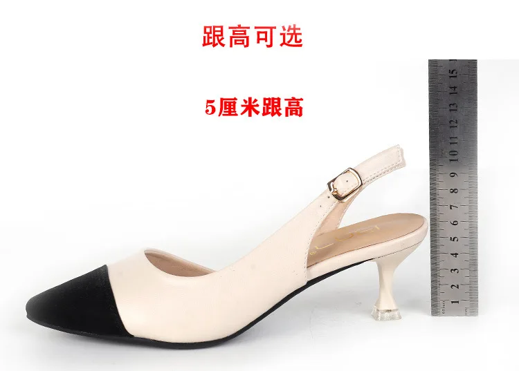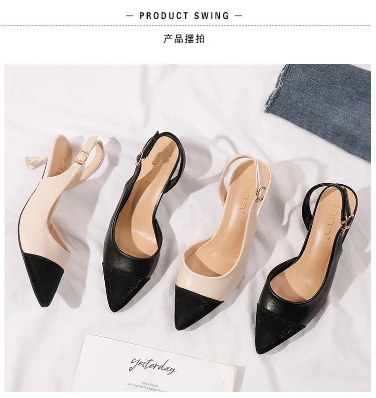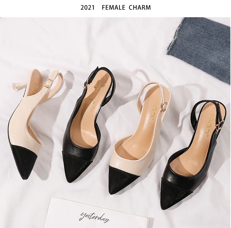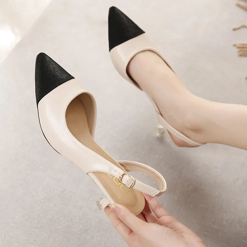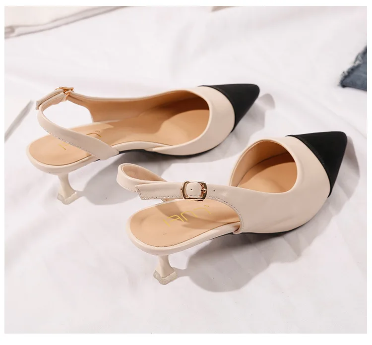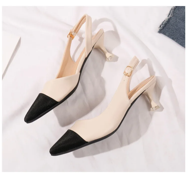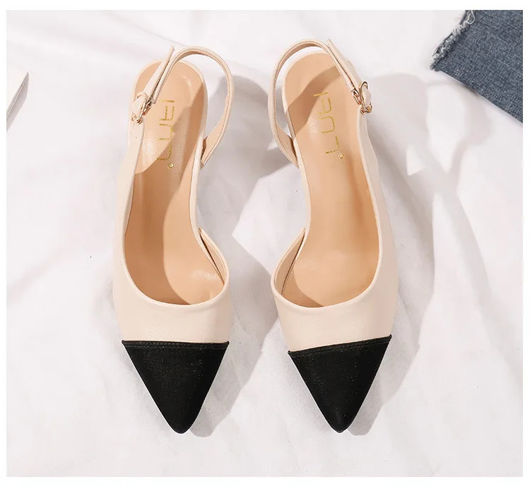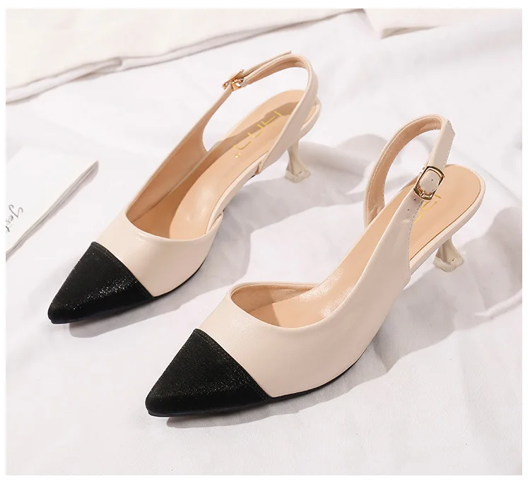 black/beige patchwork high heels sandals women pointed toe leather back strap sandalias mujer ladies slingback summer shoes 43