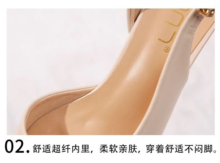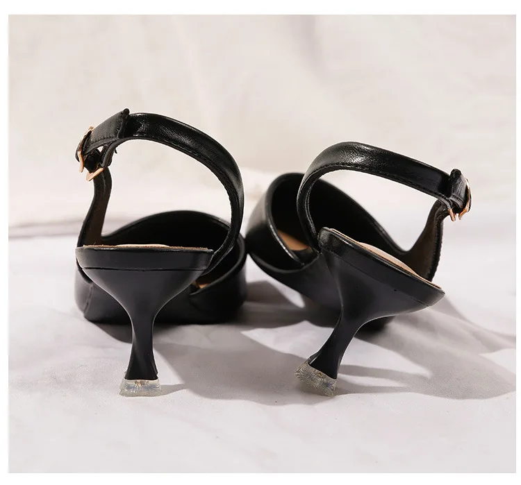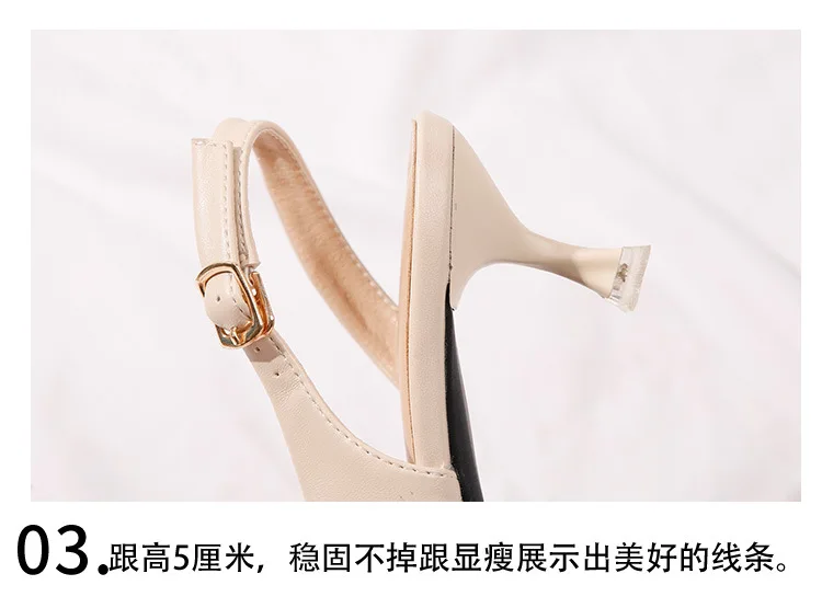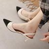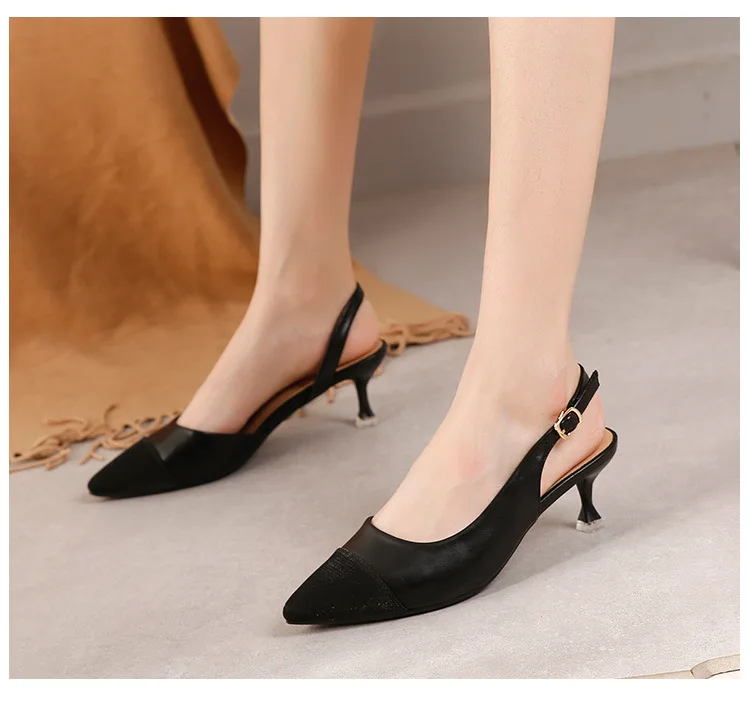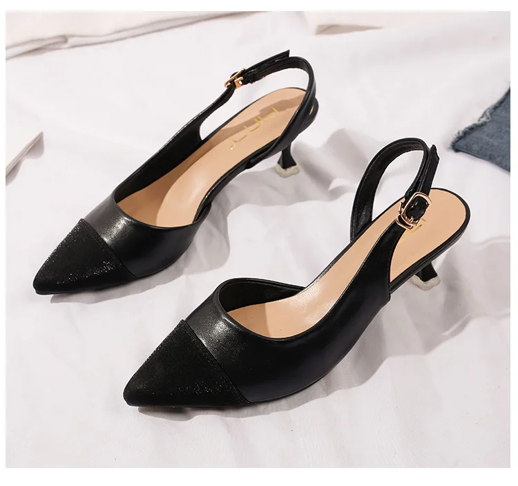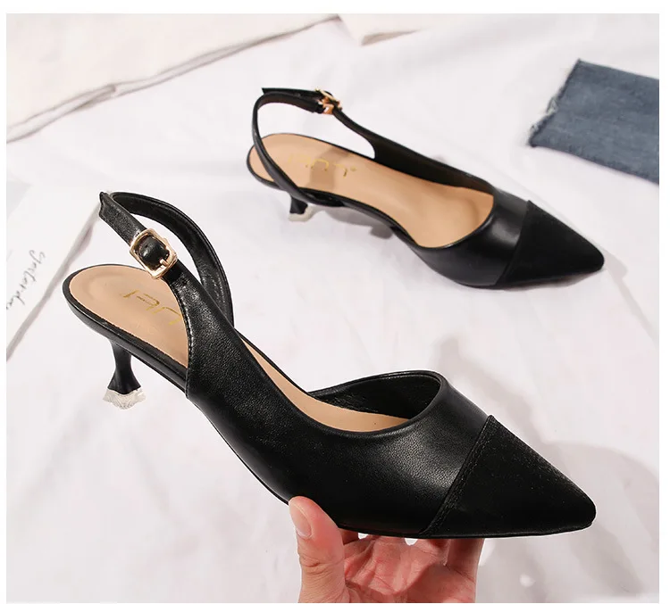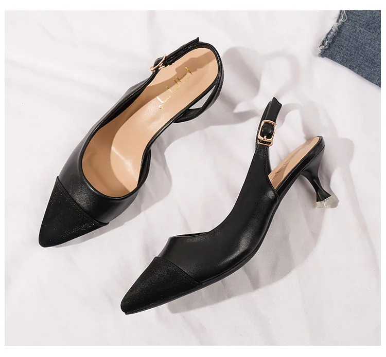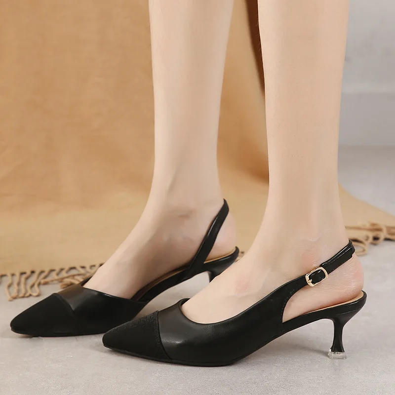 black/beige patchwork high heels sandals women pointed toe leather back strap sandalias mujer ladies slingback summer shoes 43