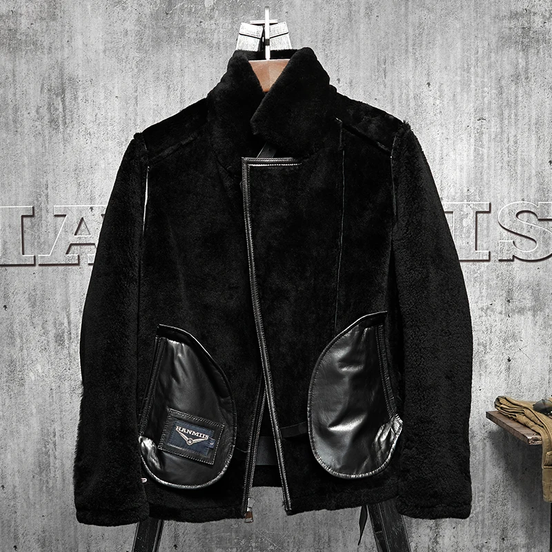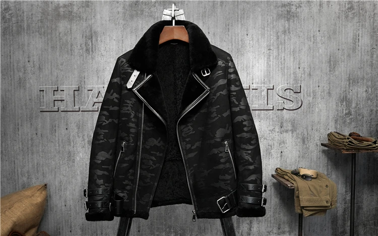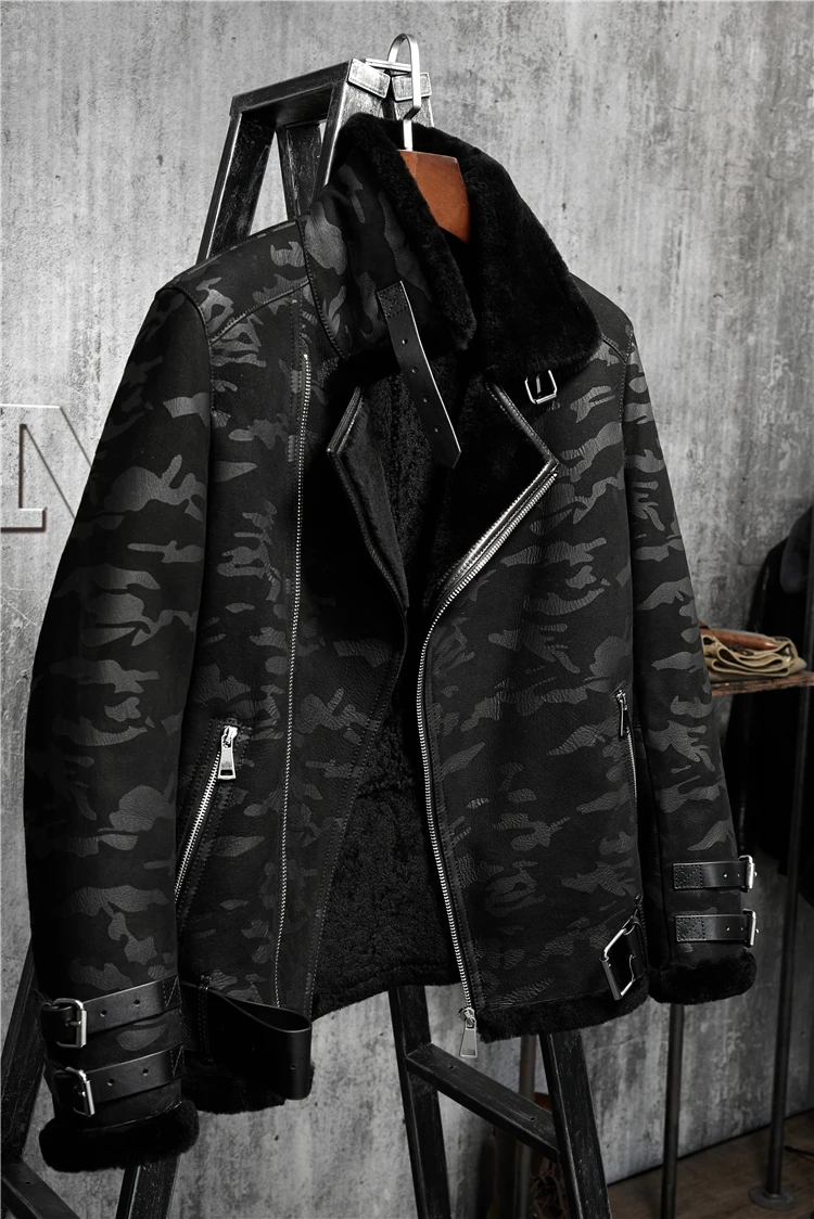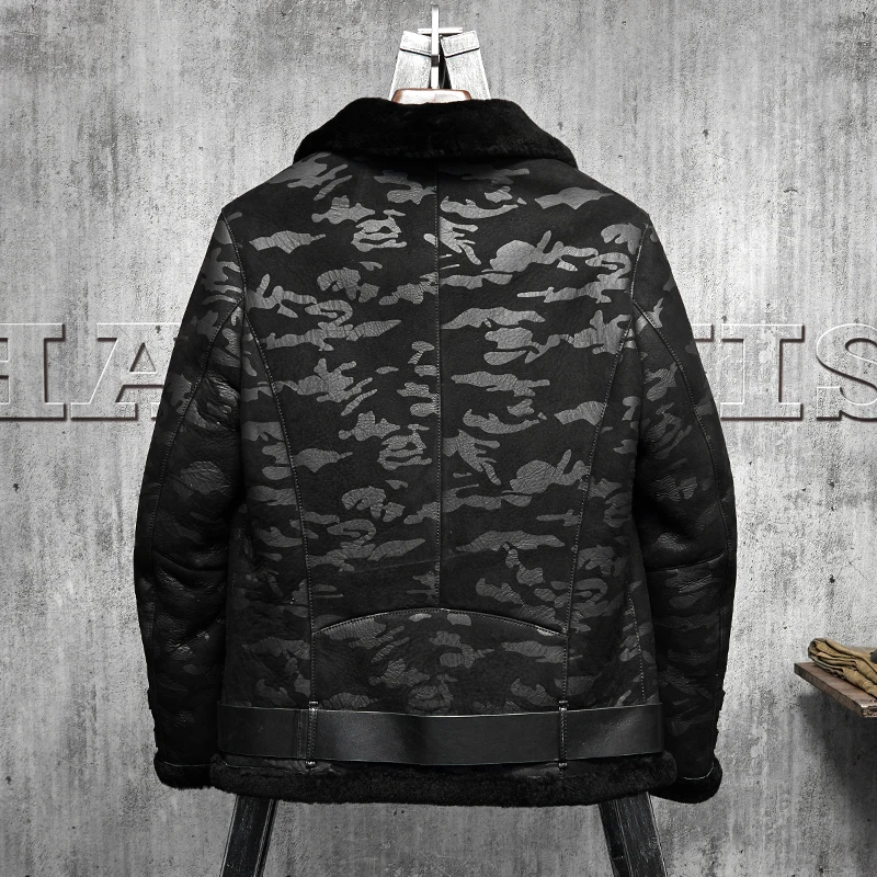 Black Camouflage B3 Jacket Men’s Shearling Leather Jacket Original Flying Jacket Men’s Fur Coat Aviation Leathercraft Pilots